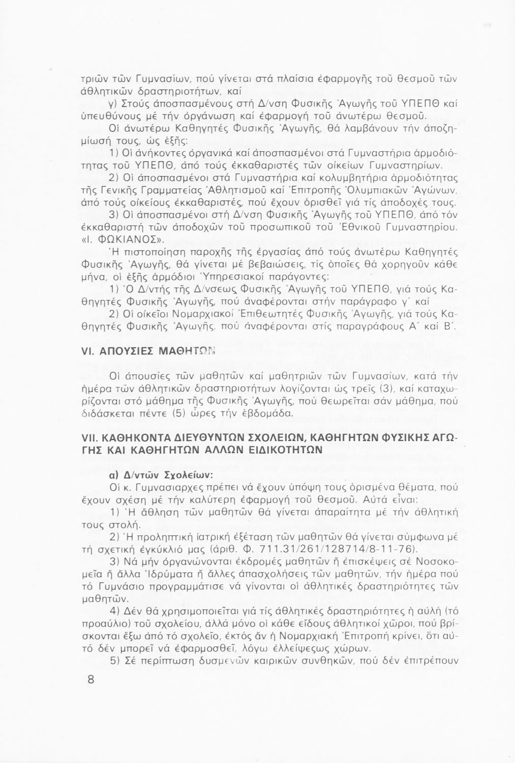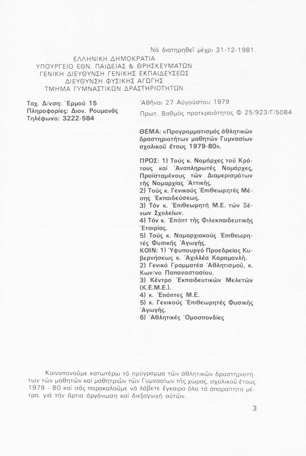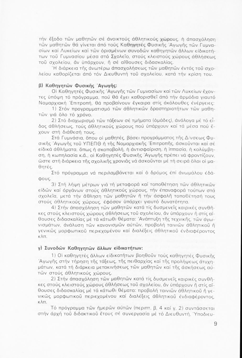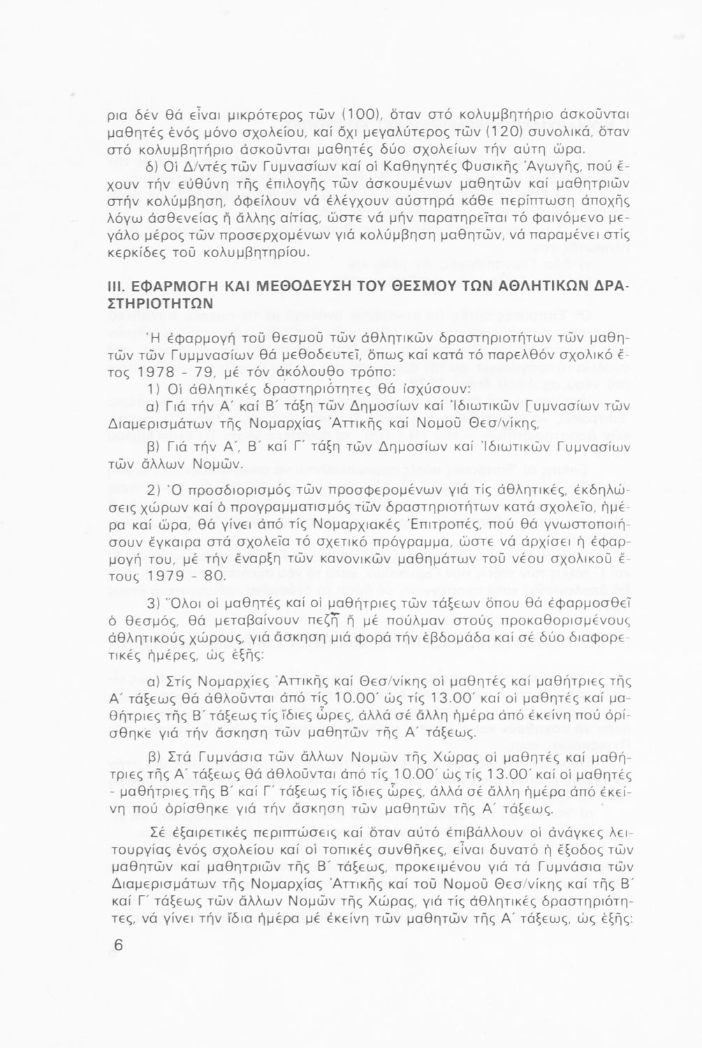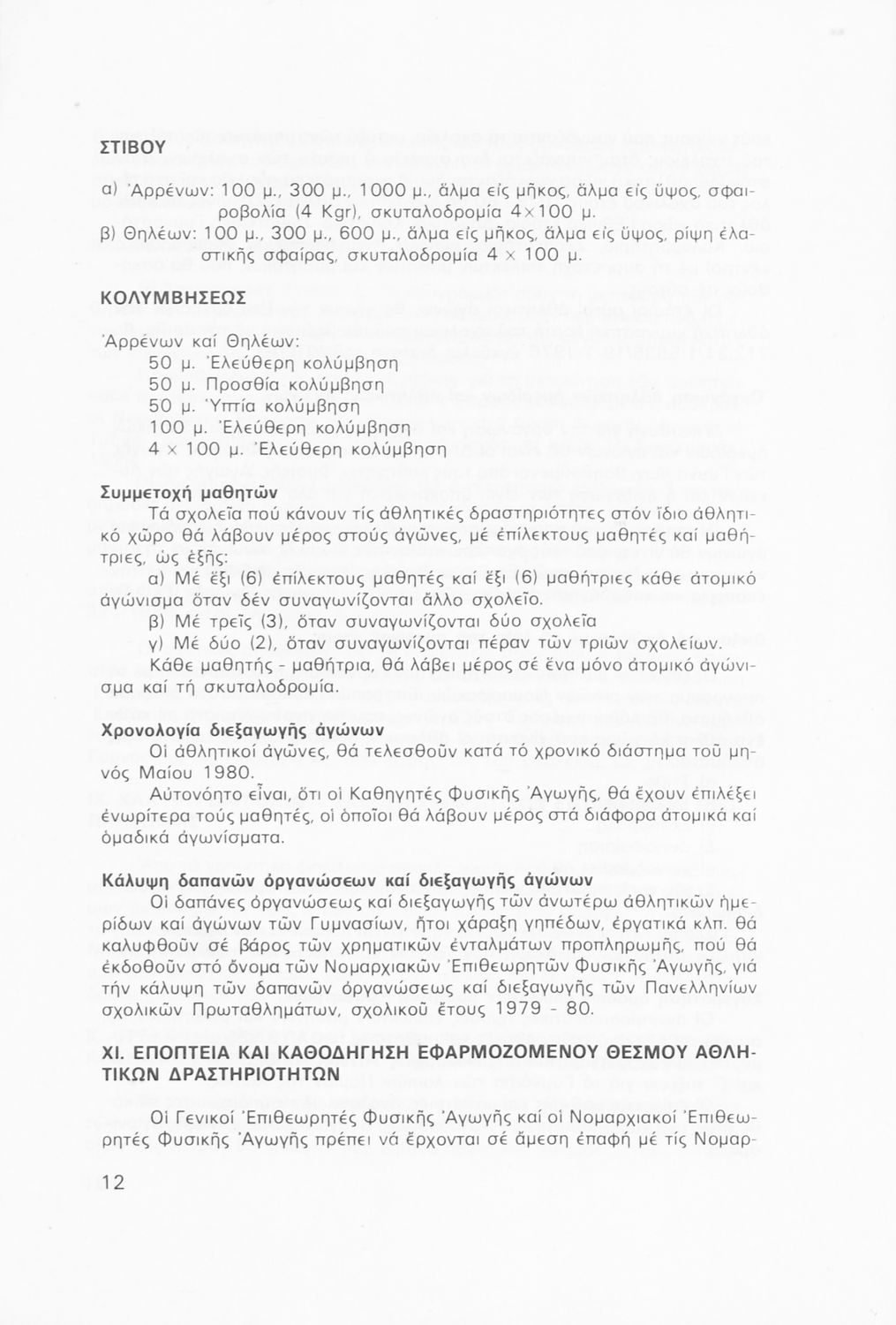 Παιδαγωγικό βοήθημα που περιλαμβάνει γενικές οδηγίες και κανόνες για τον προγραμματισμό των αθλητικών δραστηριοτήτων στις τάξεις του Γυμνασίου για το σχολικό έτος 1979-1980.