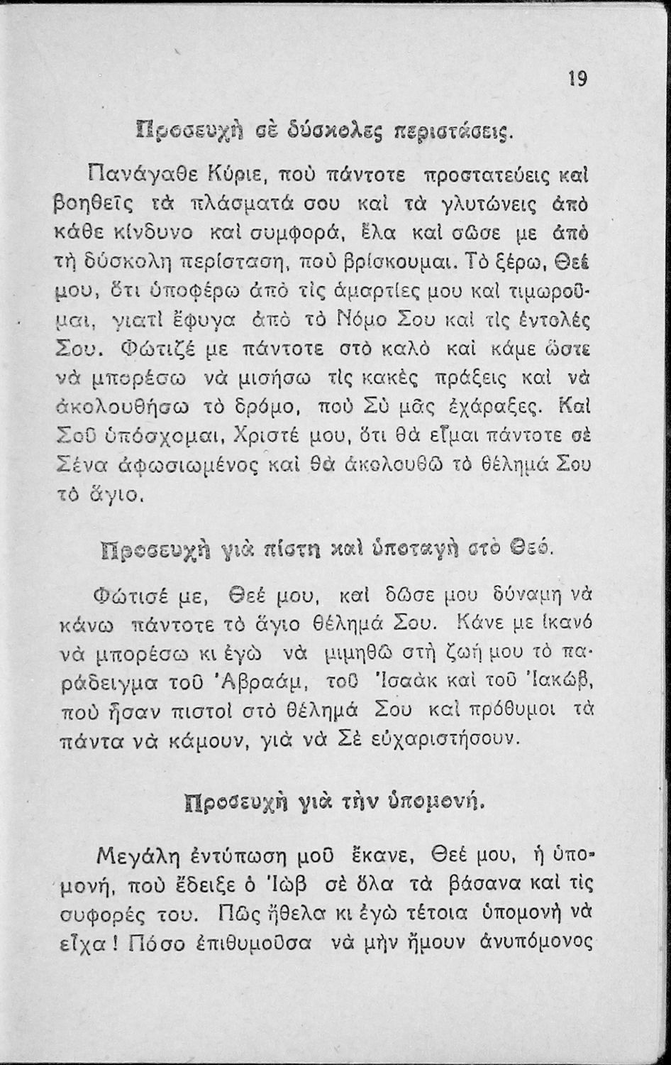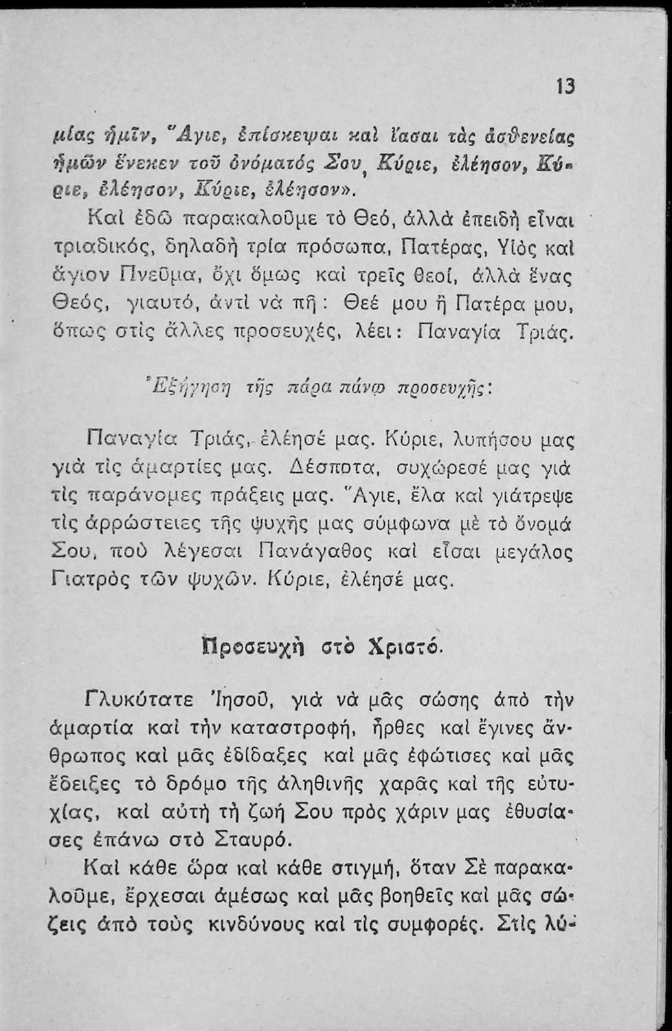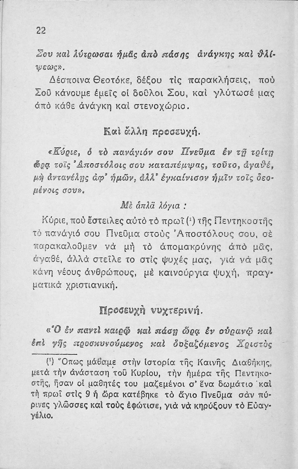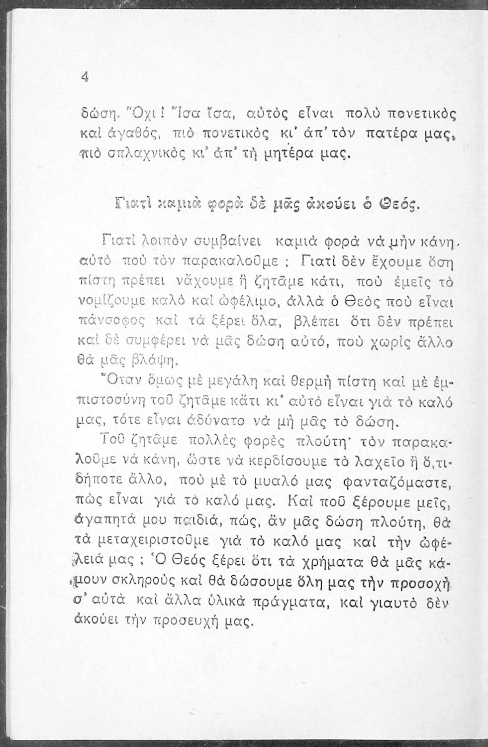 Μαθητικό βοήθημα που εστιάζει στην παιδαγωγική και θρησκευτική σπουδαιότητα της προσευχής και των διαφόρων ειδών προσευχής στην Ορθόδοξη Χριστιανική Εκκλησία. Εγκρίθηκε από την Αρχιεπισκοπή Αθηνών (Αρ. Πρωτ. 334/8-3-1949).