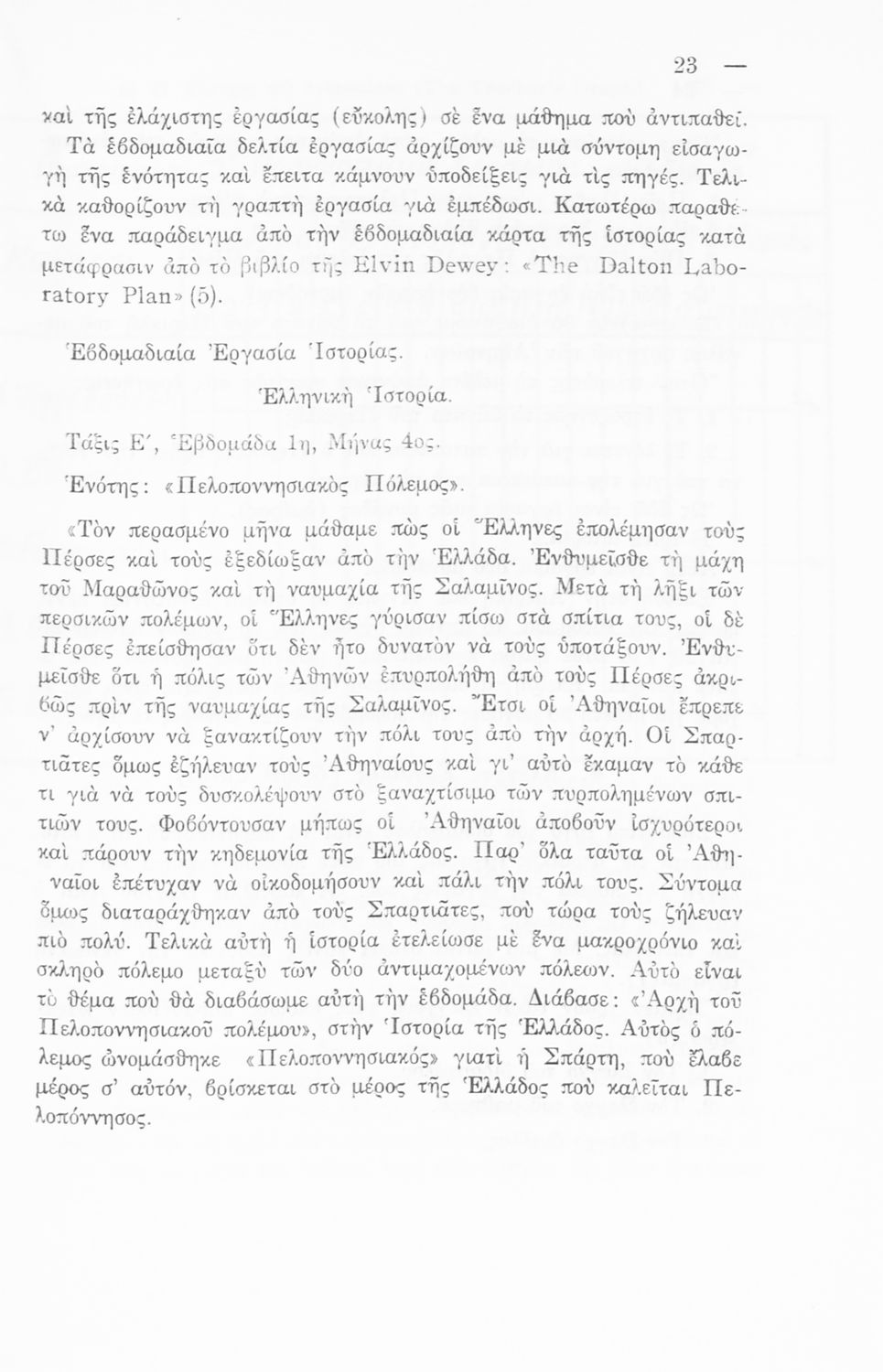 Παρουσίαση περιεχομένου: Παιδαγωγικό βοήθημα που περιλαμβάνει σύγχρονες μορφές διδασκαλίας και διαχείρισης της σχολικής τάξης και ιδιαίτερα το σχέδιο Dalton και την τεχνική Winnetka.
