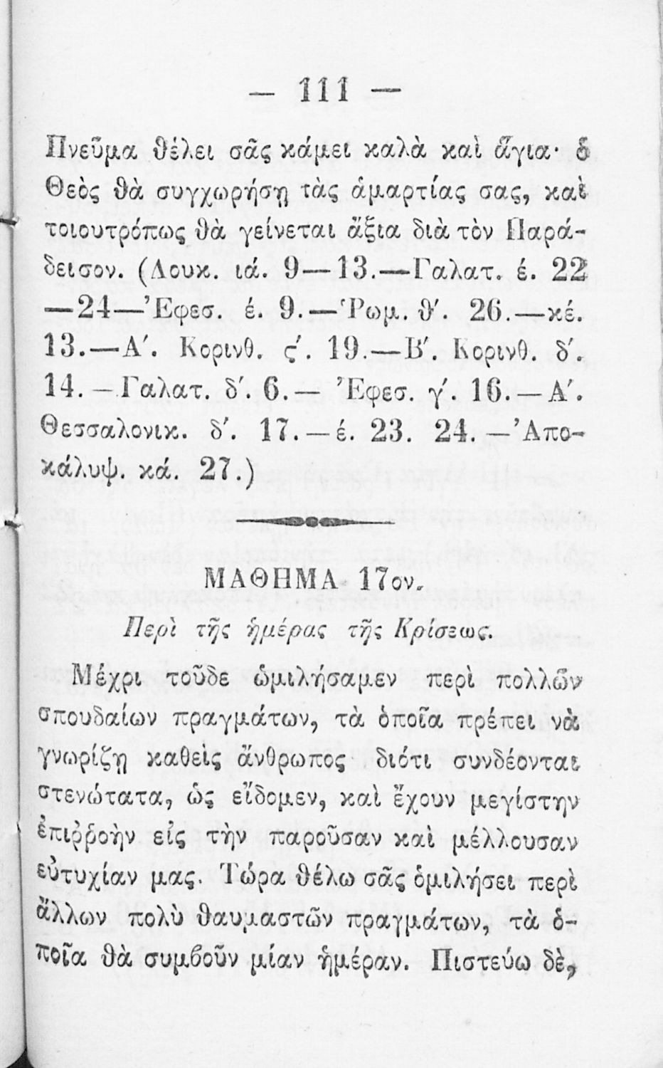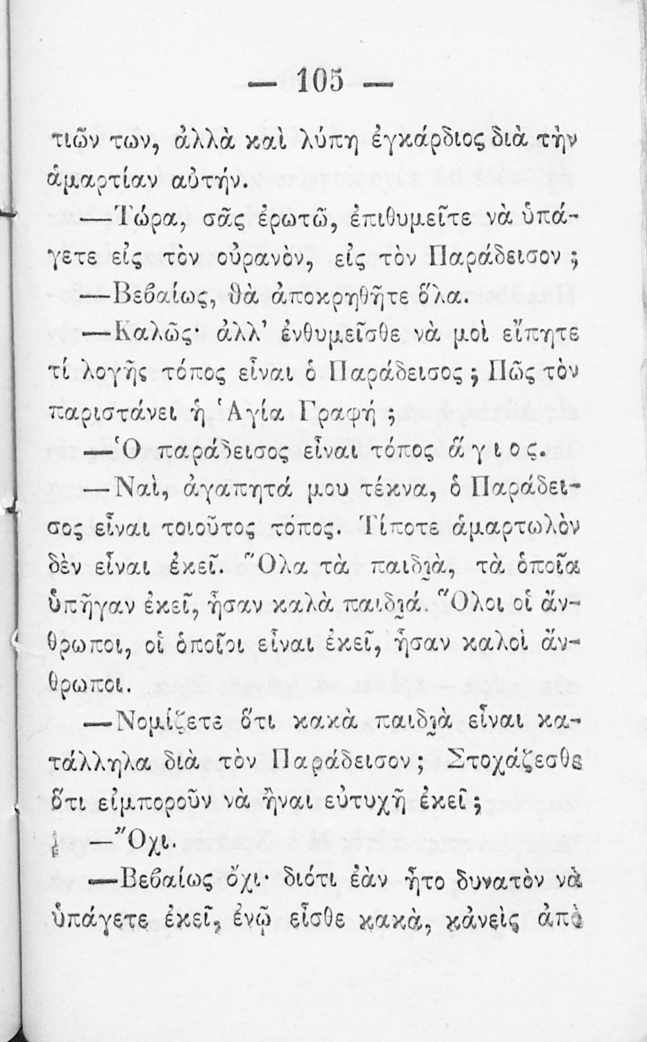 Παιδαγωγικό βοήθημα με έντονο θρησκευτικό προσανατολισμό που απευθύνεται σε δασκάλους και γονείς και αποσκοπεί στην ηθική διαπαιδαγώγηση των παιδιών. Είναι γραμμένο με τη μορφή ερωταποκρίσεων και περιλαμβάνει ερωτήσεις κατανόησης.
