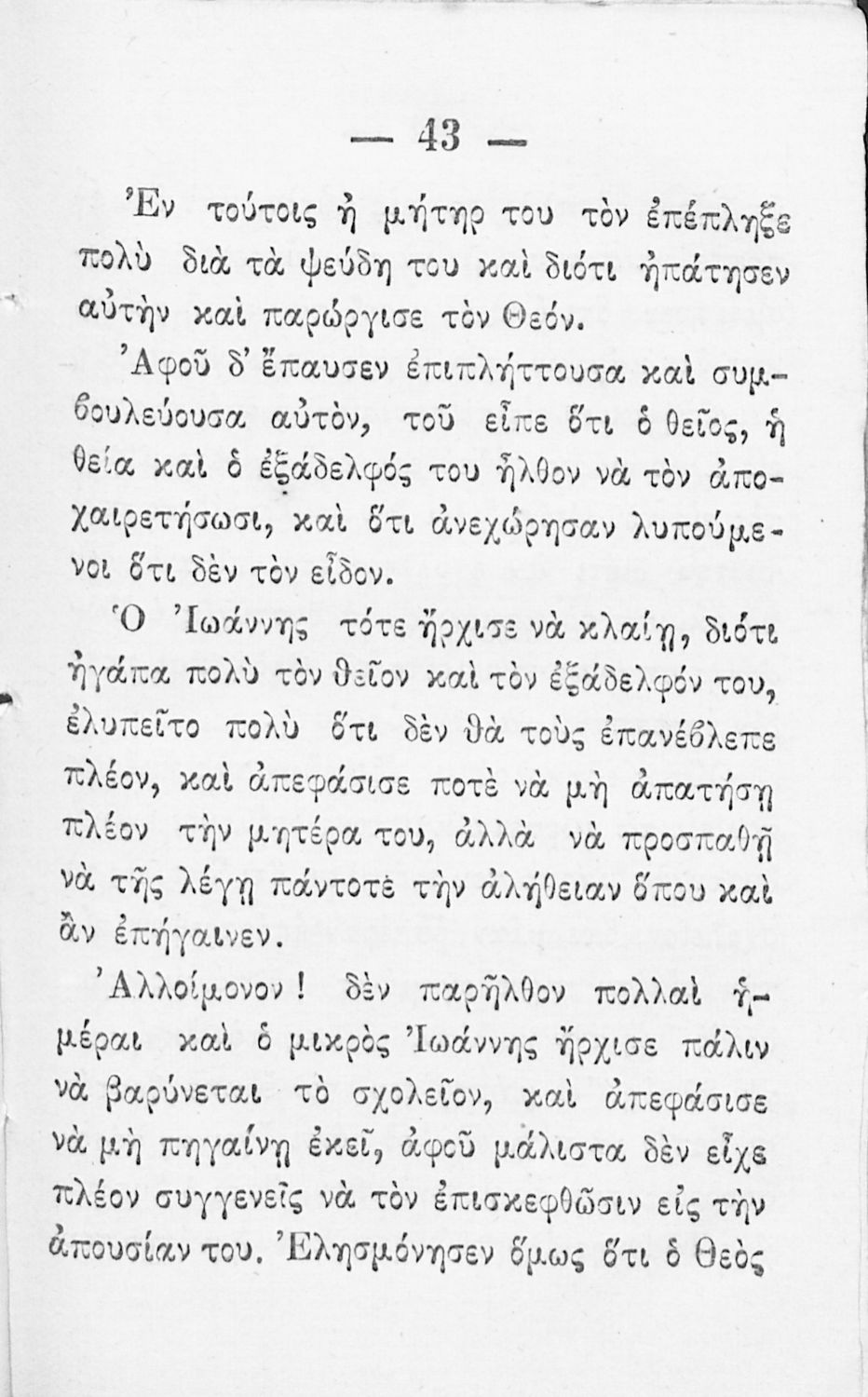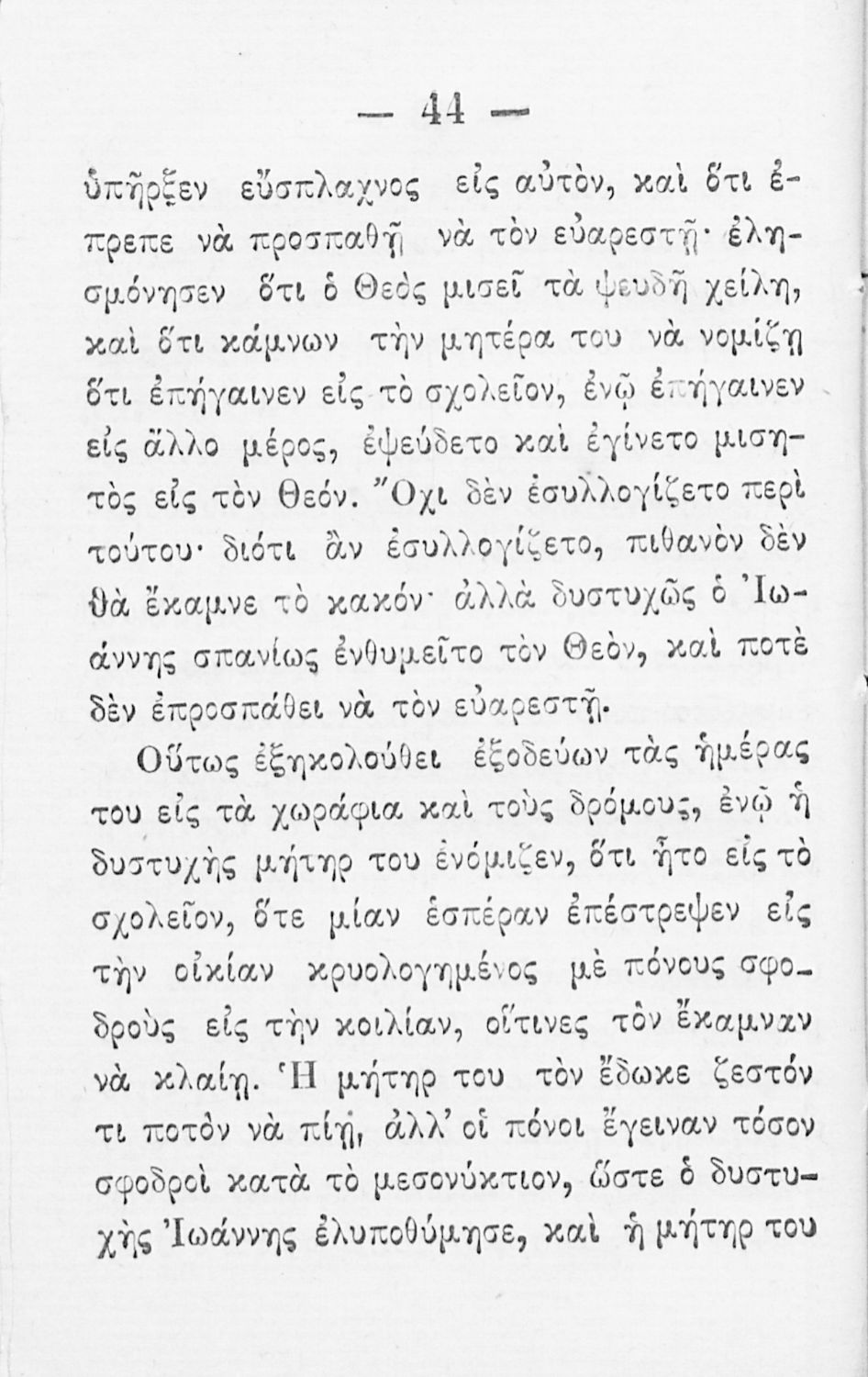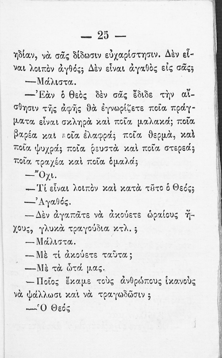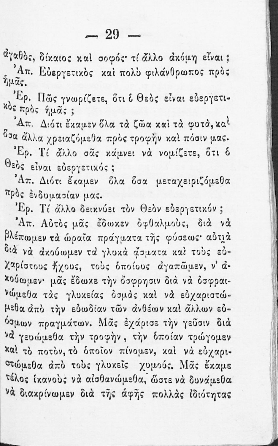 Παιδαγωγικό βοήθημα με έντονο θρησκευτικό προσανατολισμό που απευθύνεται σε δασκάλους και γονείς και αποσκοπεί στην ηθική διαπαιδαγώγηση των παιδιών. Είναι γραμμένο με τη μορφή ερωταποκρίσεων και περιλαμβάνει ερωτήσεις κατανόησης.