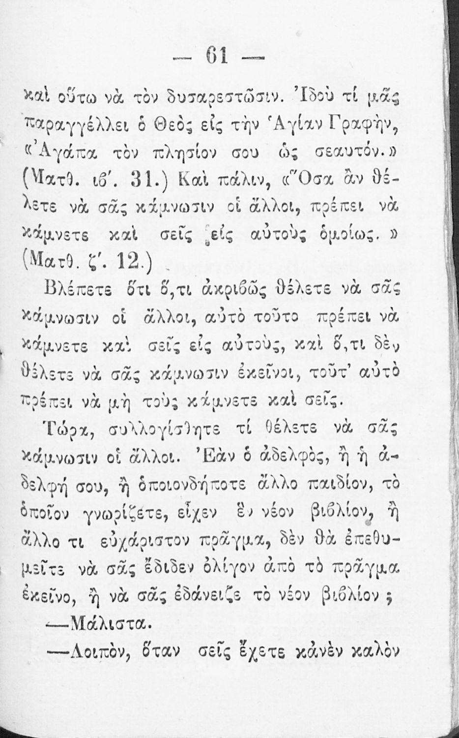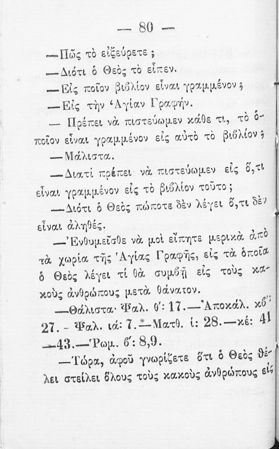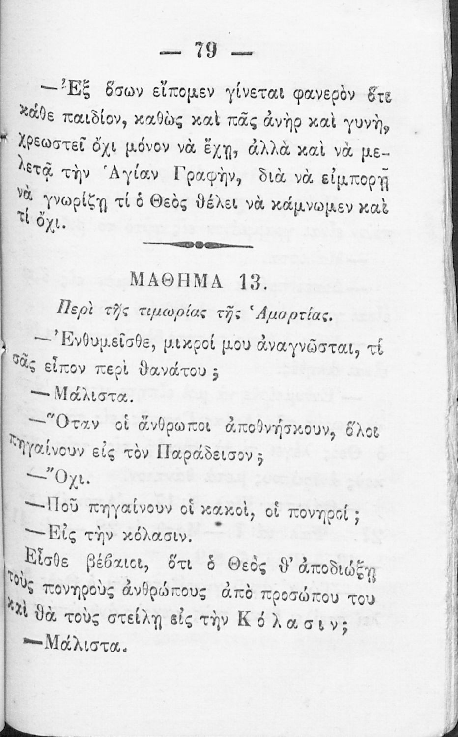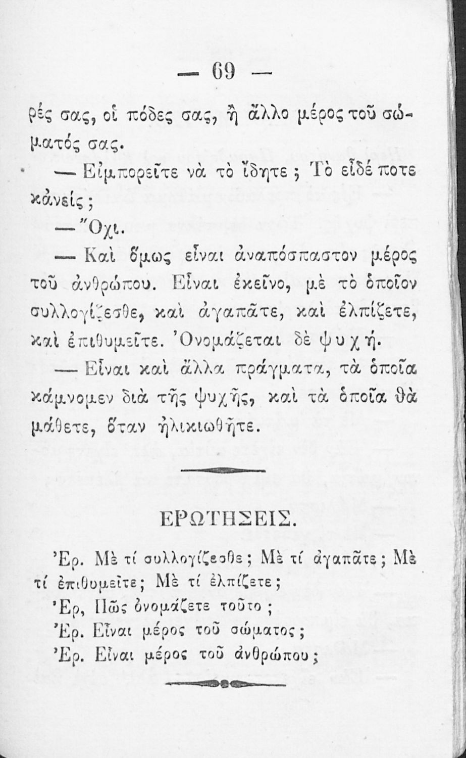 Παιδαγωγικό βοήθημα με έντονο θρησκευτικό προσανατολισμό που απευθύνεται σε δασκάλους και γονείς και αποσκοπεί στην ηθική διαπαιδαγώγηση των παιδιών. Είναι γραμμένο με τη μορφή ερωταποκρίσεων και περιλαμβάνει ερωτήσεις κατανόησης.
