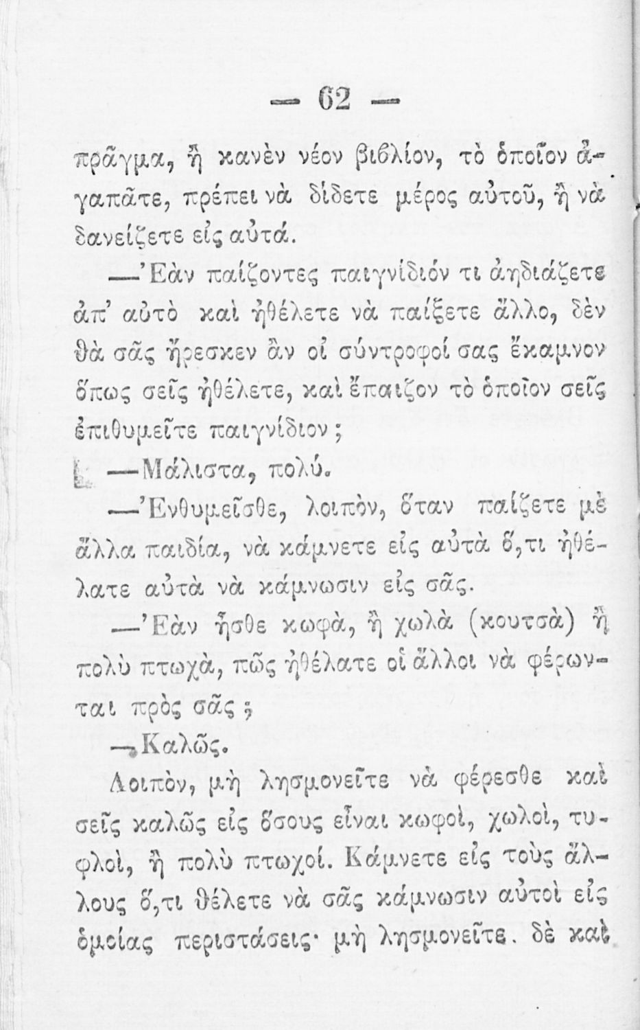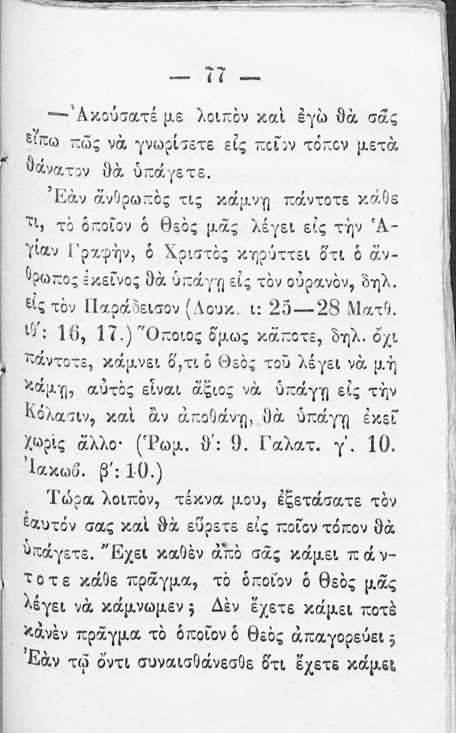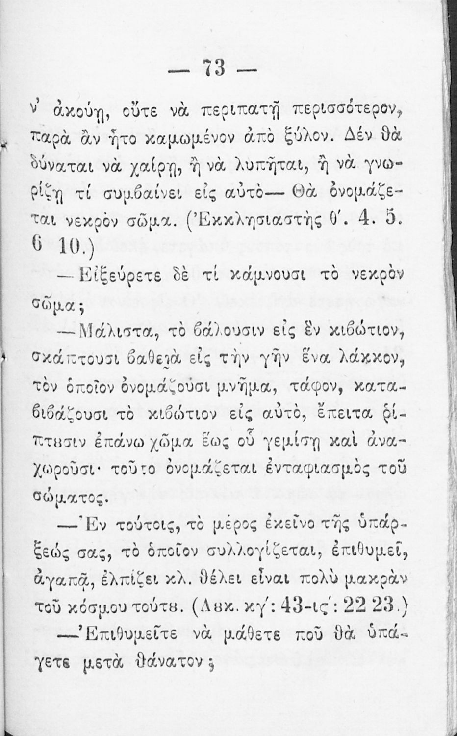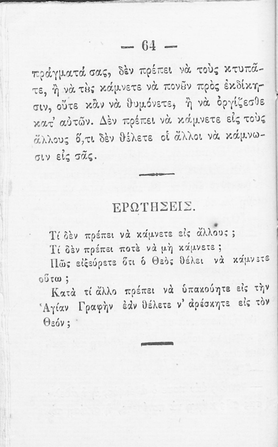 Παιδαγωγικό βοήθημα με έντονο θρησκευτικό προσανατολισμό που απευθύνεται σε δασκάλους και γονείς και αποσκοπεί στην ηθική διαπαιδαγώγηση των παιδιών. Είναι γραμμένο με τη μορφή ερωταποκρίσεων και περιλαμβάνει ερωτήσεις κατανόησης.