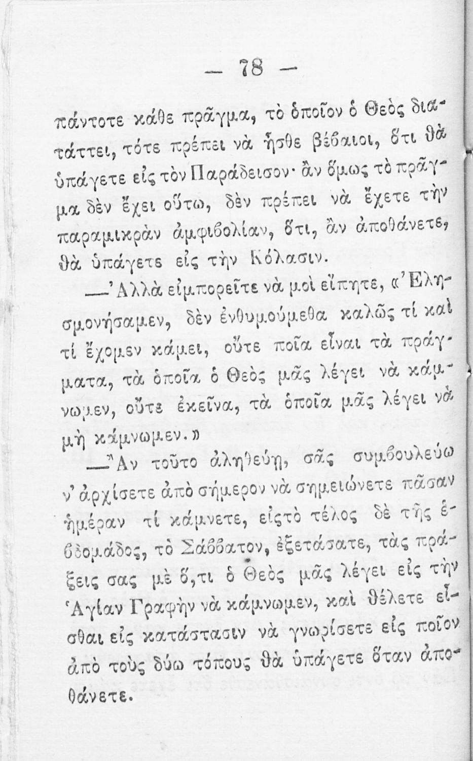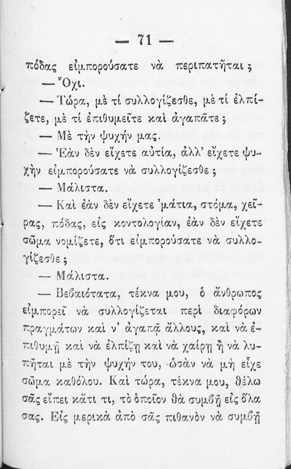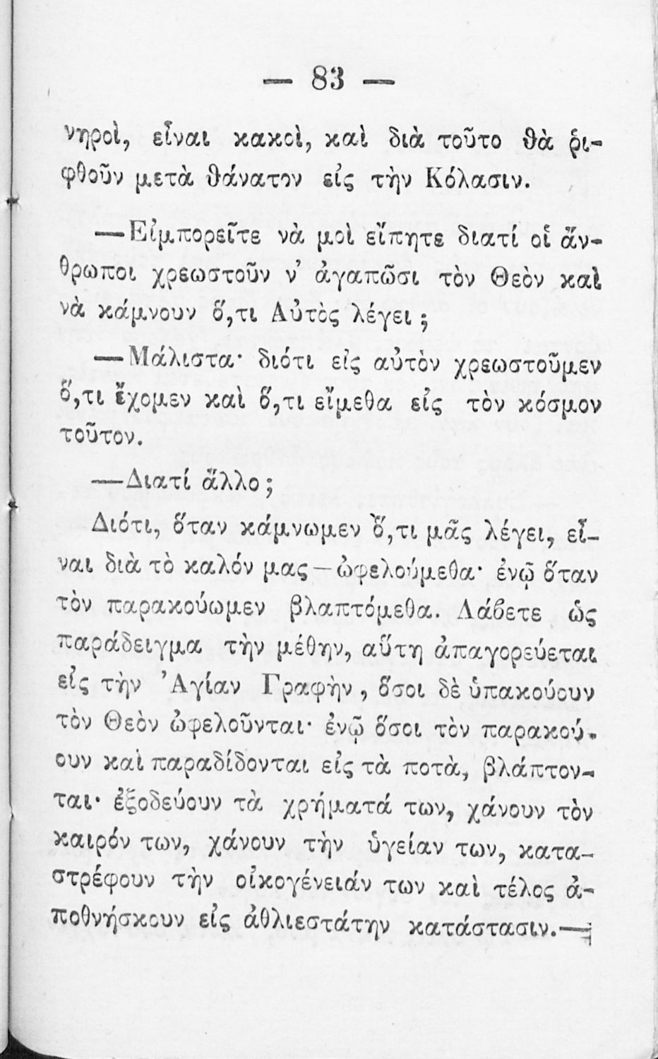 Παρουσίαση περιεχομένου: Παιδαγωγικό βοήθημα με έντονο θρησκευτικό προσανατολισμό που απευθύνεται σε δασκάλους και γονείς και αποσκοπεί στην ηθική διαπαιδαγώγηση των παιδιών. Είναι γραμμένο με τη μορφή ερωταποκρίσεων και περιλαμβάνει ερωτήσεις κατανόησης.