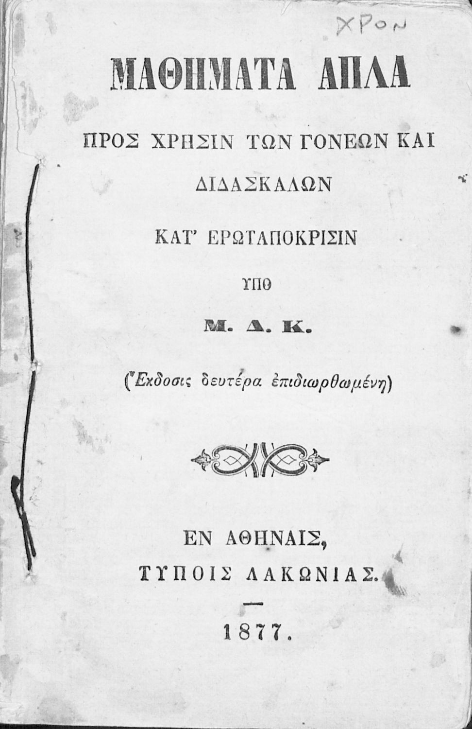 Εκδότης: Τύποις Λακωνίας Έτος έκδοσης: 1877 Τόπος έκδοσης: Αθήνα Έκδοση: 2η |