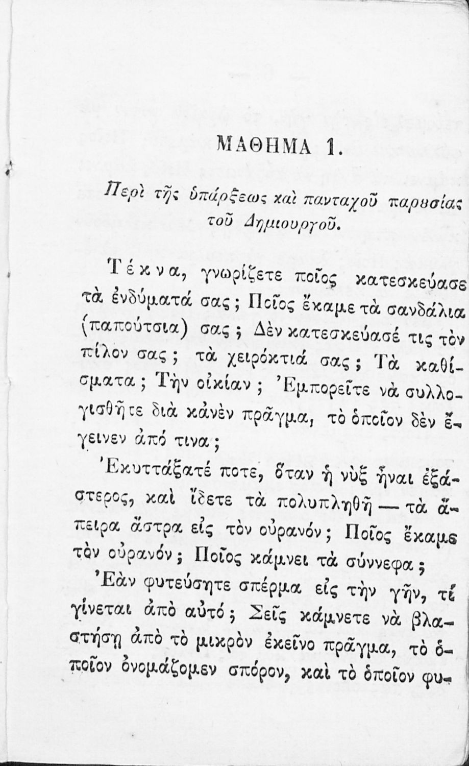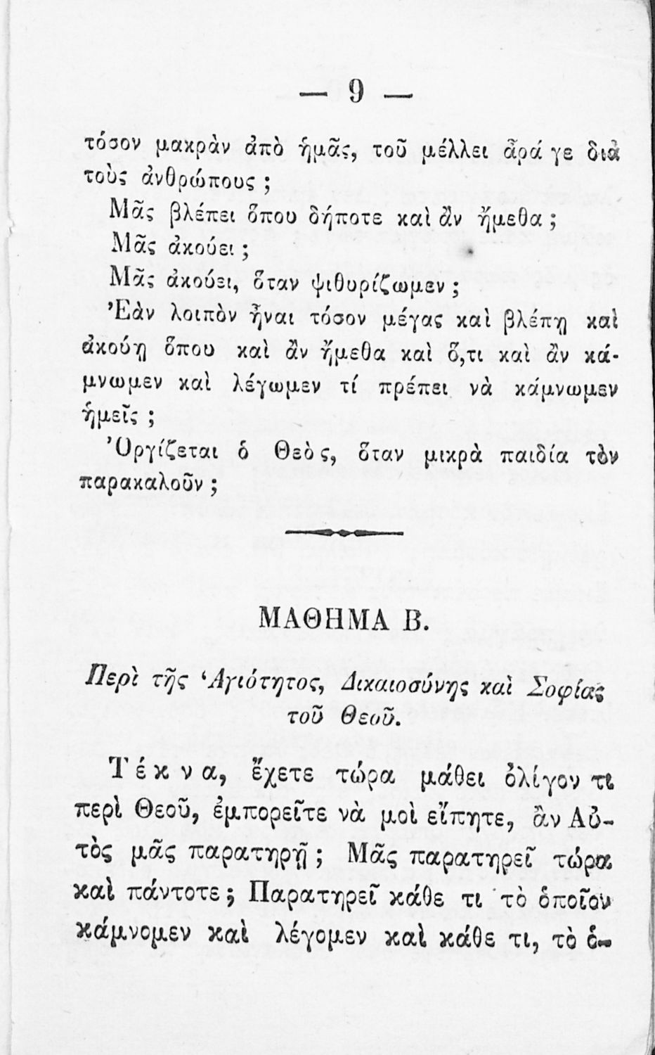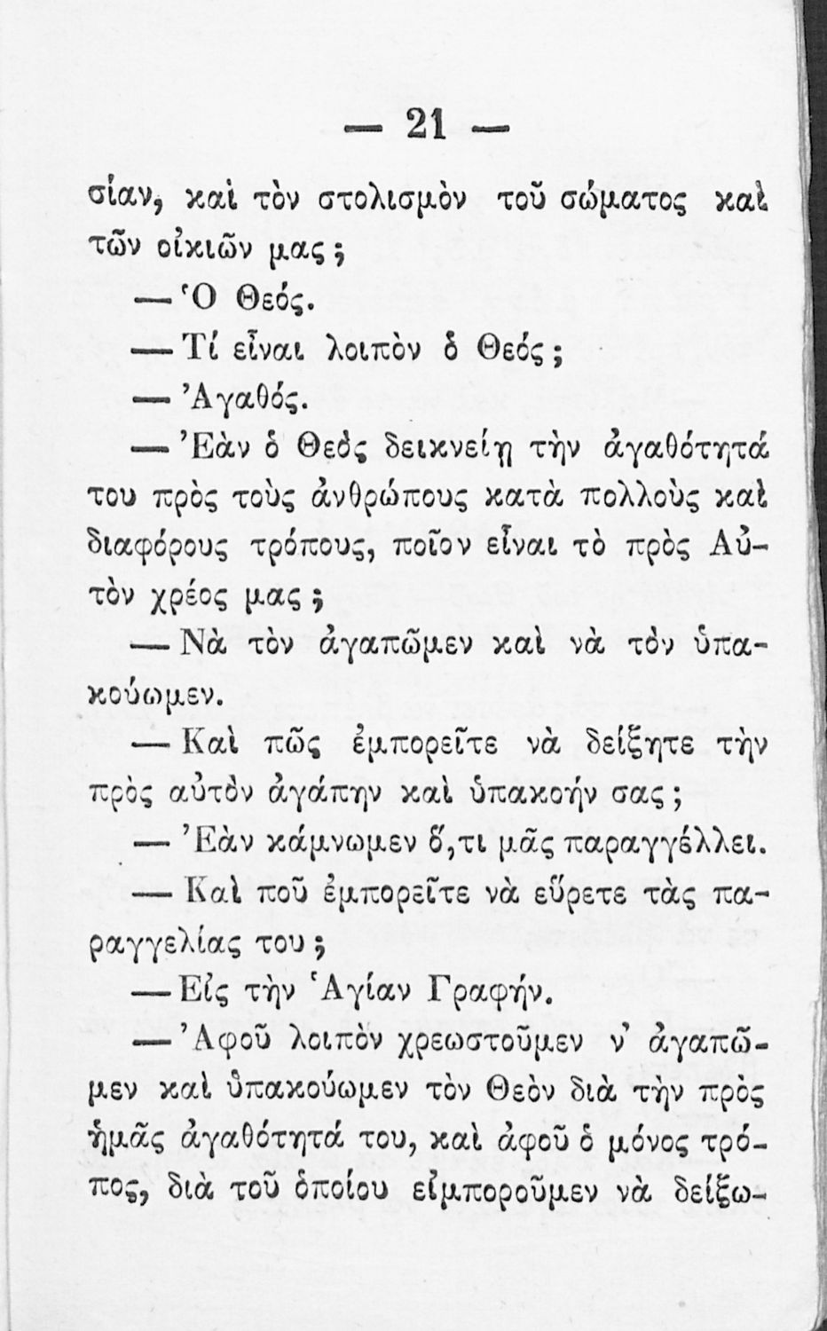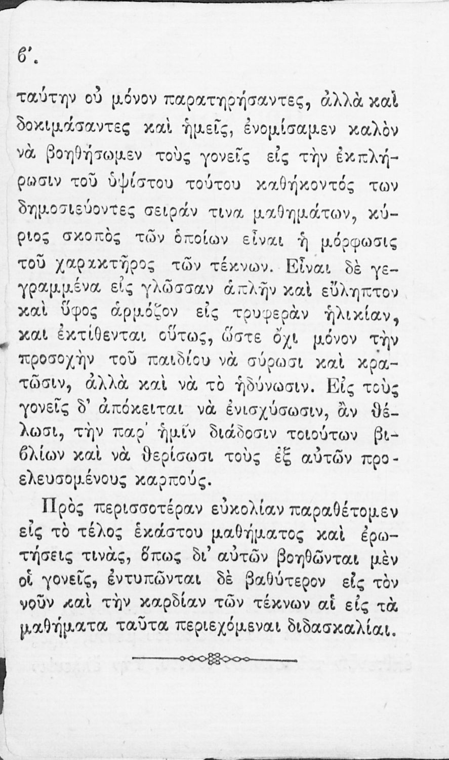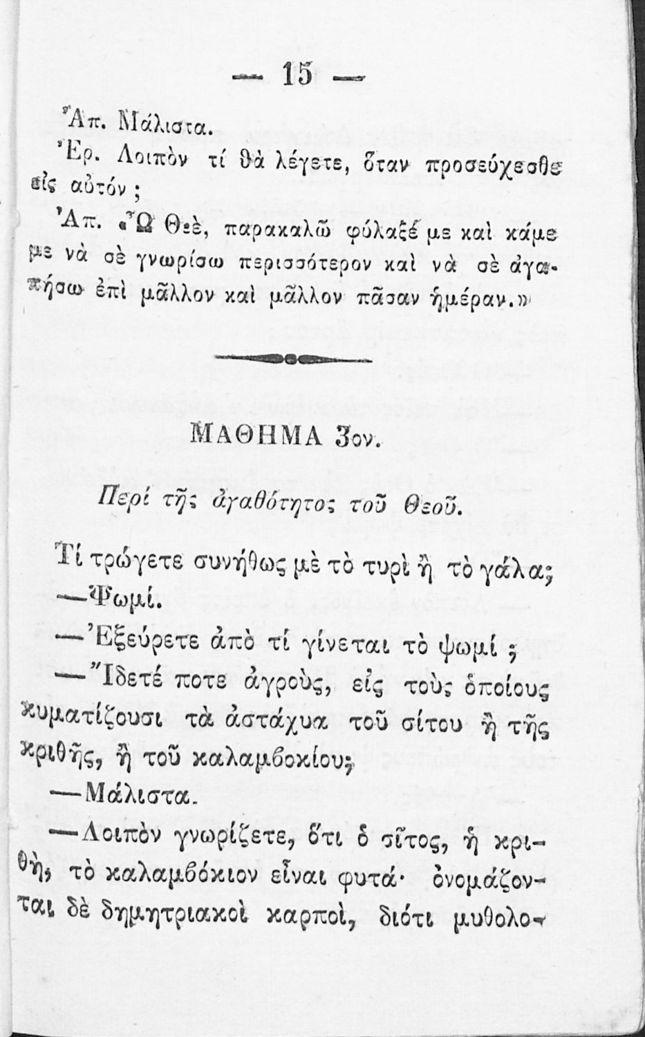 Παιδαγωγικό βοήθημα με έντονο θρησκευτικό προσανατολισμό που απευθύνεται σε δασκάλους και γονείς και αποσκοπεί στην ηθική διαπαιδαγώγηση των παιδιών. Είναι γραμμένο με τη μορφή ερωταποκρίσεων και περιλαμβάνει ερωτήσεις κατανόησης.