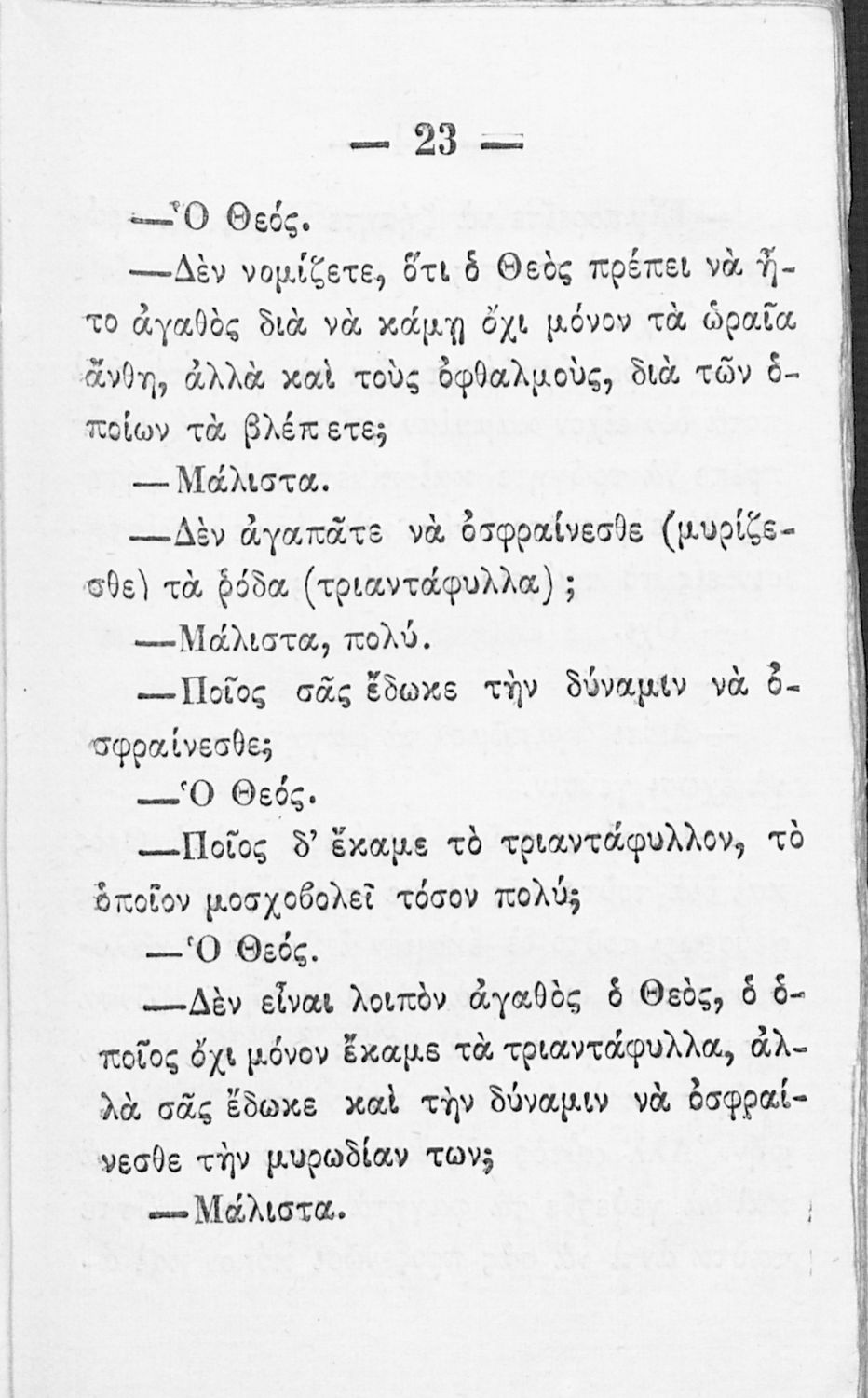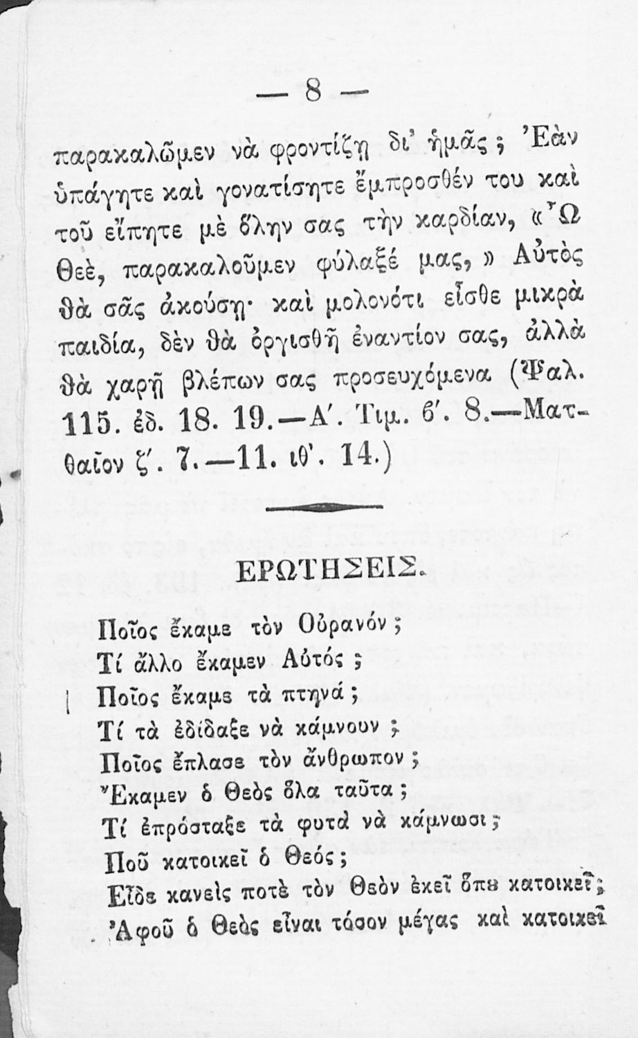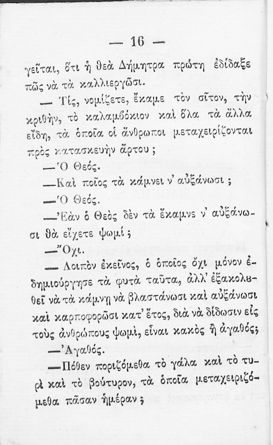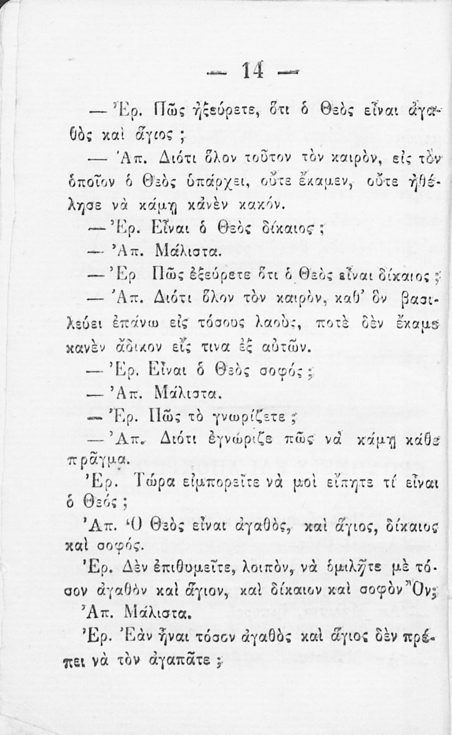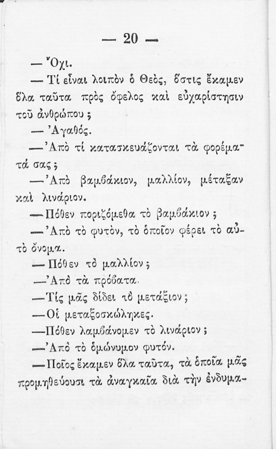 Παιδαγωγικό βοήθημα με έντονο θρησκευτικό προσανατολισμό που απευθύνεται σε δασκάλους και γονείς και αποσκοπεί στην ηθική διαπαιδαγώγηση των παιδιών. Είναι γραμμένο με τη μορφή ερωταποκρίσεων και περιλαμβάνει ερωτήσεις κατανόησης.