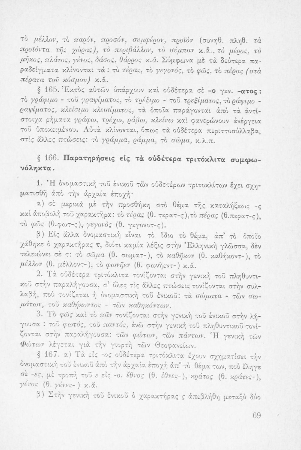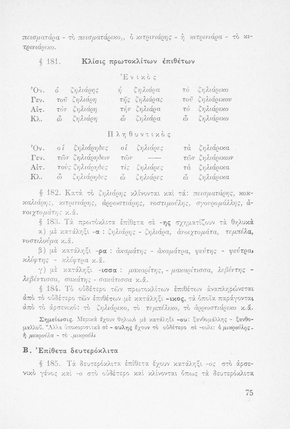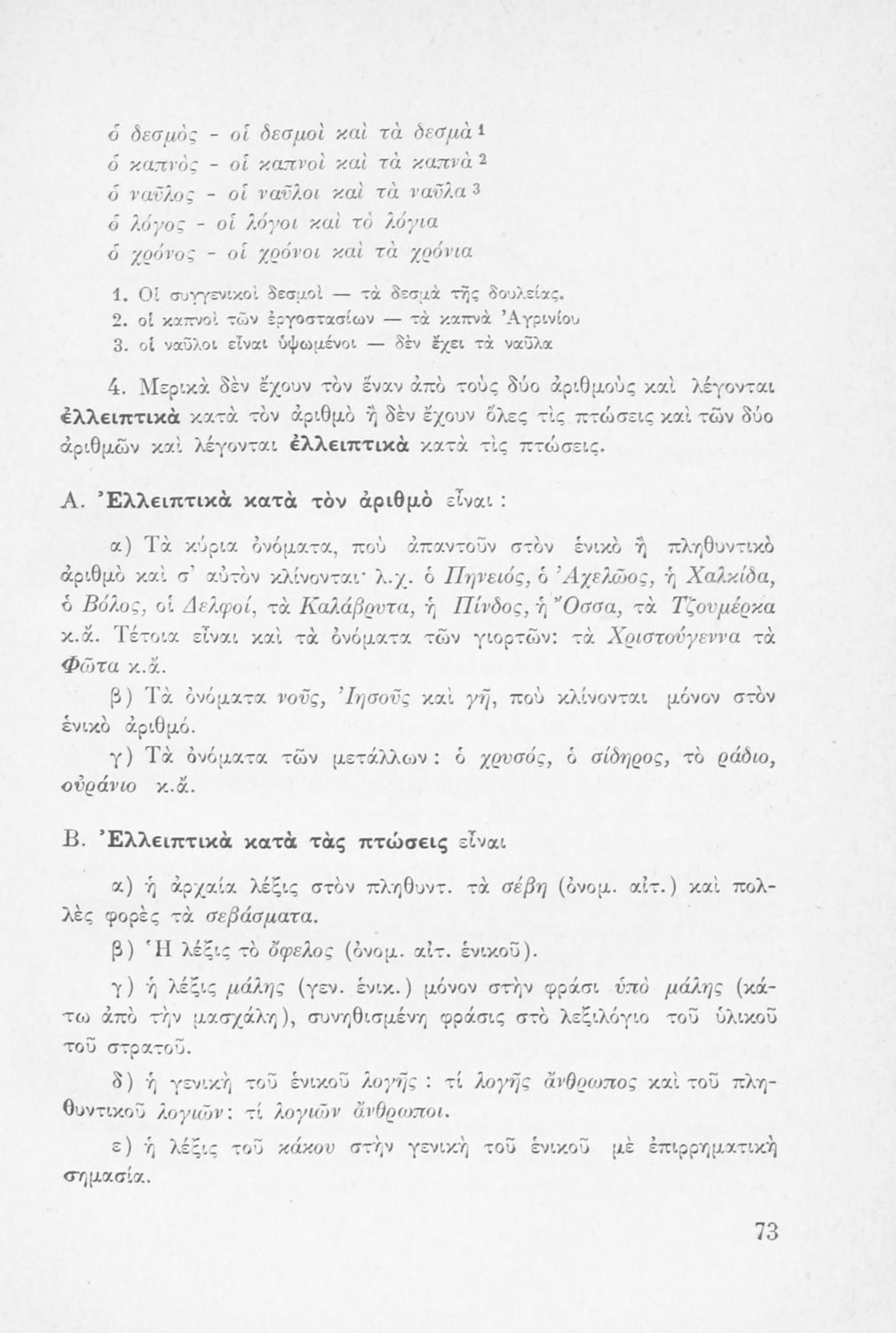 Σχολικό εγχειρίδιο Αρχαίων Ελληνικών Γυμνασίου που περιέχει τους κανόνες γραμματικής και είναι χωρισμένο σε φθογγολογικό, τυπολογικό και ετυμολογικό μέρος. Περιέχει και κατάλογο ανωμάλων ρημάτων.