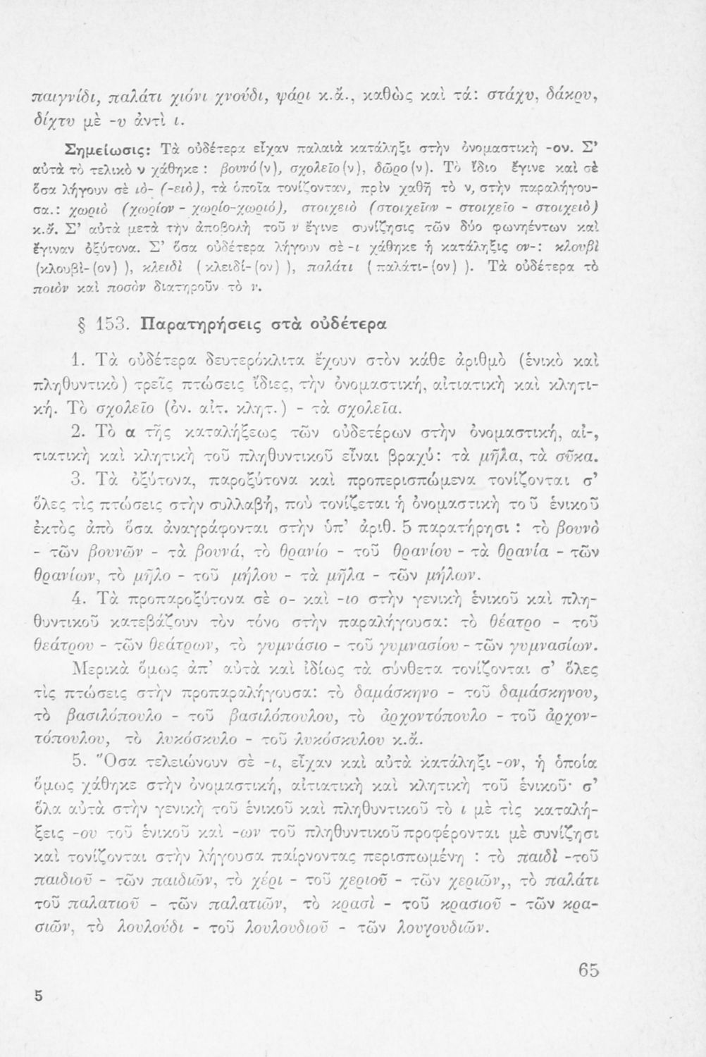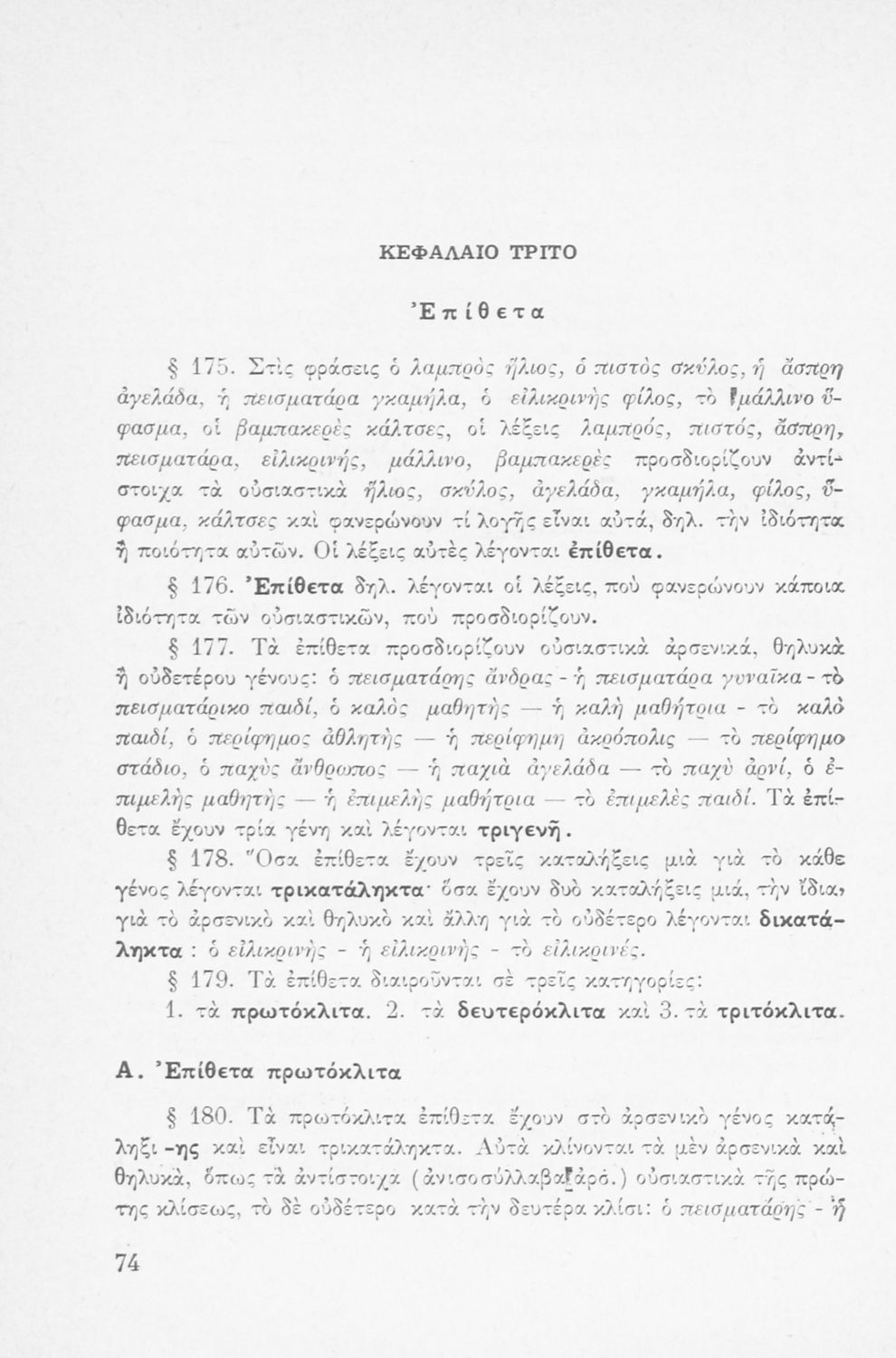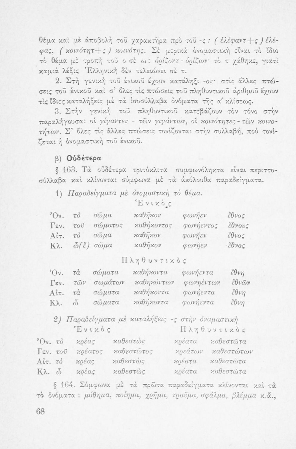 Σχολικό εγχειρίδιο Αρχαίων Ελληνικών Γυμνασίου που περιέχει τους κανόνες γραμματικής και είναι χωρισμένο σε φθογγολογικό, τυπολογικό και ετυμολογικό μέρος. Περιέχει και κατάλογο ανωμάλων ρημάτων.