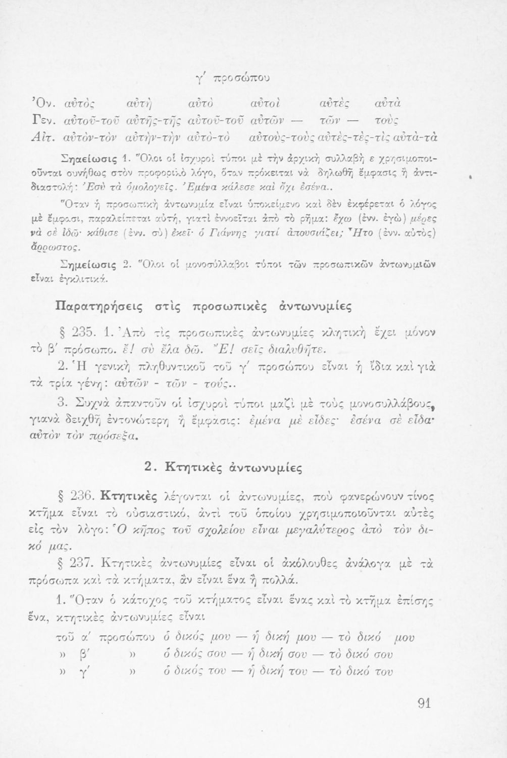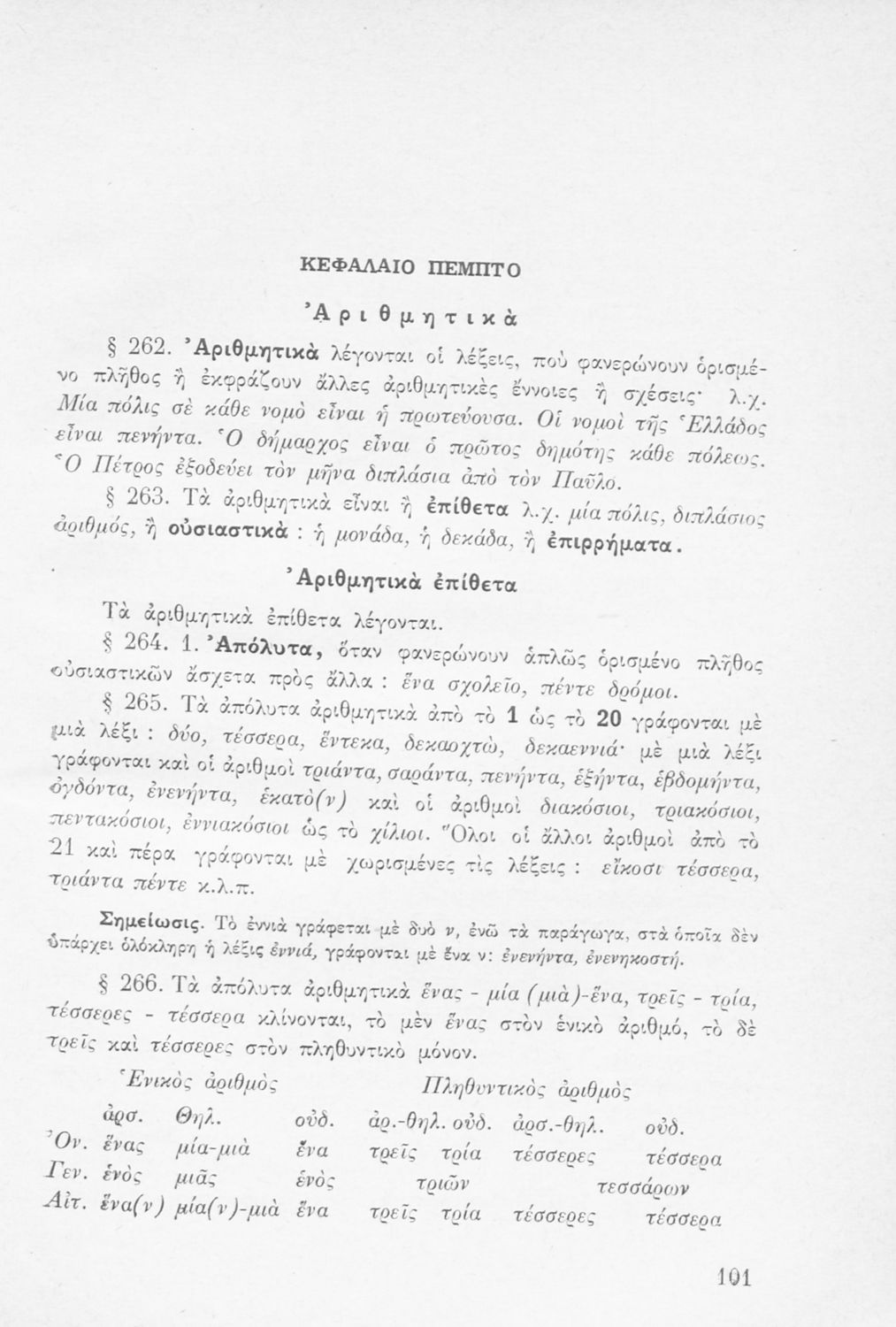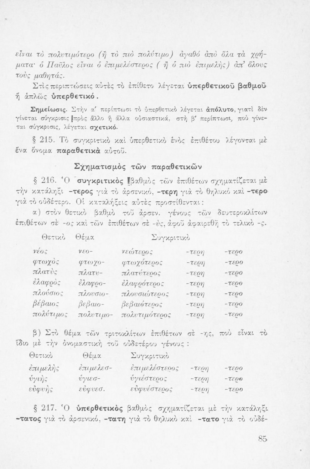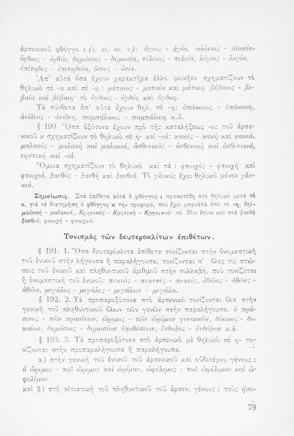 Σχολικό εγχειρίδιο Αρχαίων Ελληνικών Γυμνασίου που περιέχει τους κανόνες γραμματικής και είναι χωρισμένο σε φθογγολογικό, τυπολογικό και ετυμολογικό μέρος. Περιέχει και κατάλογο ανωμάλων ρημάτων.