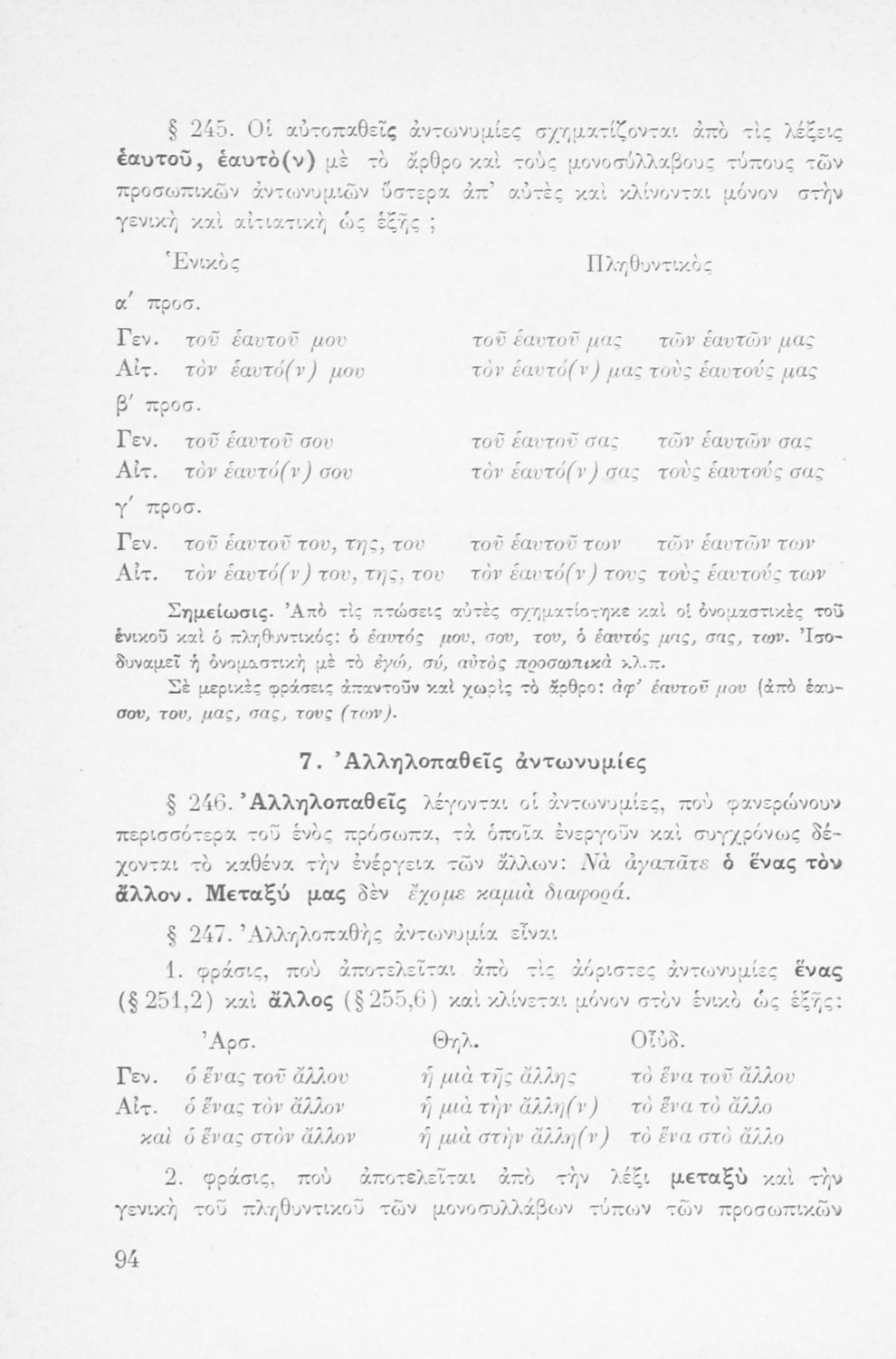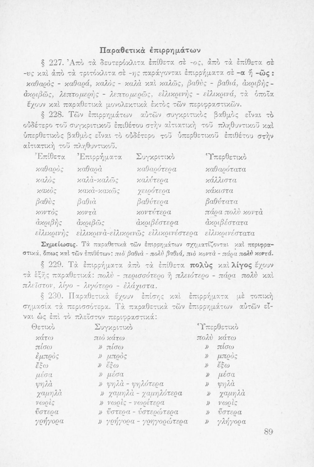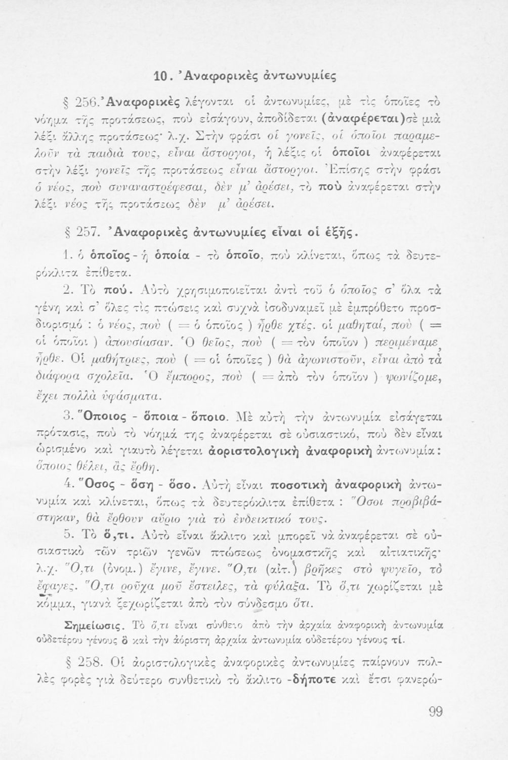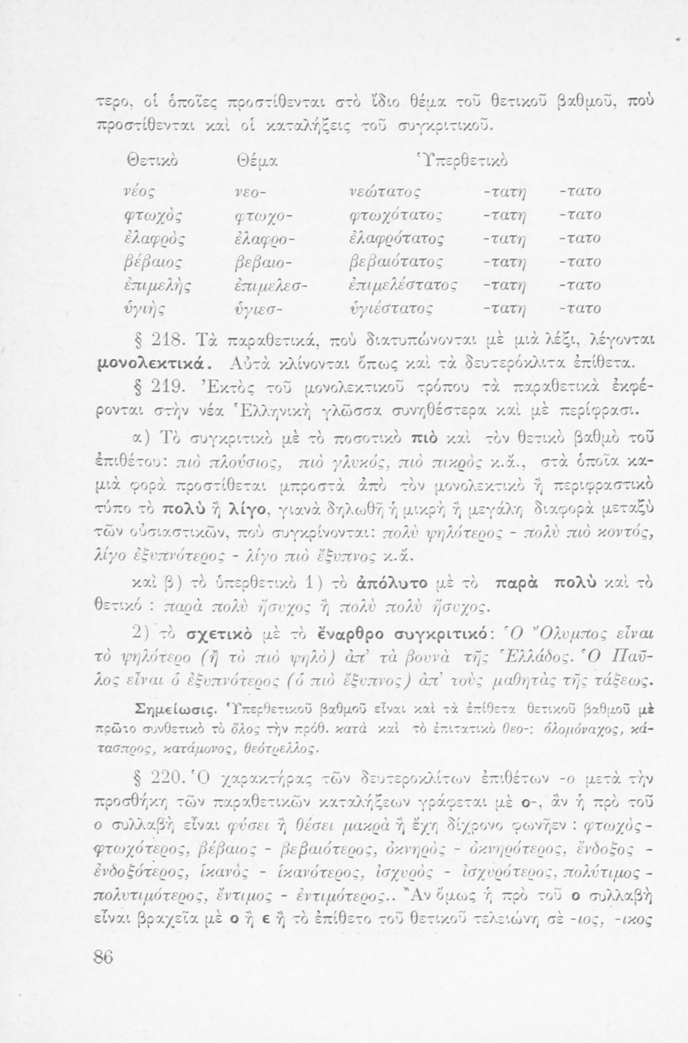 Σχολικό εγχειρίδιο Αρχαίων Ελληνικών Γυμνασίου που περιέχει τους κανόνες γραμματικής και είναι χωρισμένο σε φθογγολογικό, τυπολογικό και ετυμολογικό μέρος. Περιέχει και κατάλογο ανωμάλων ρημάτων.