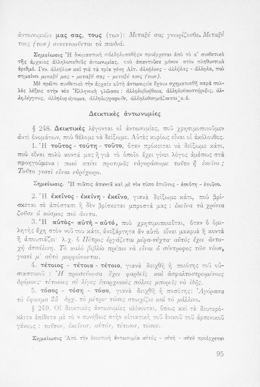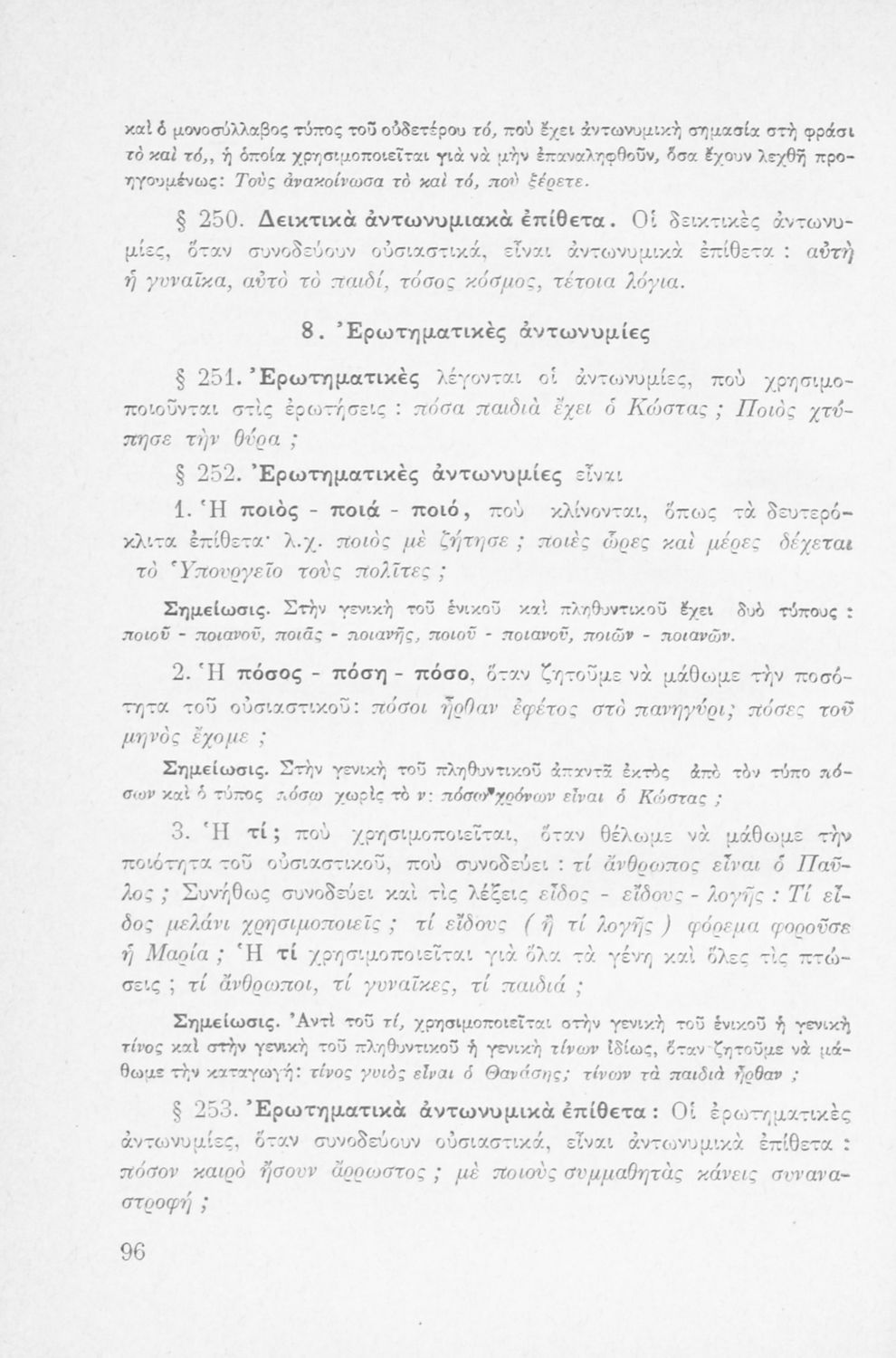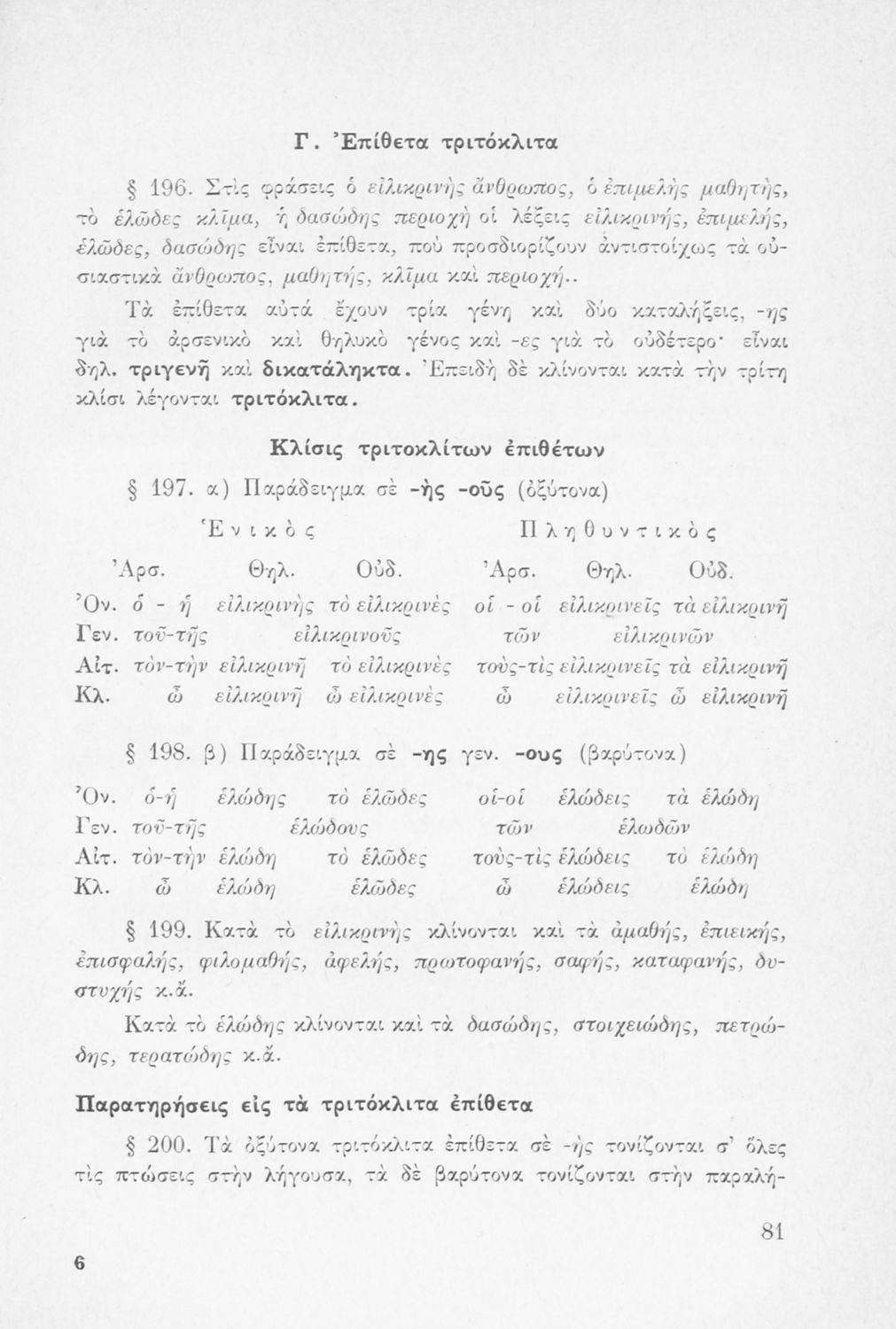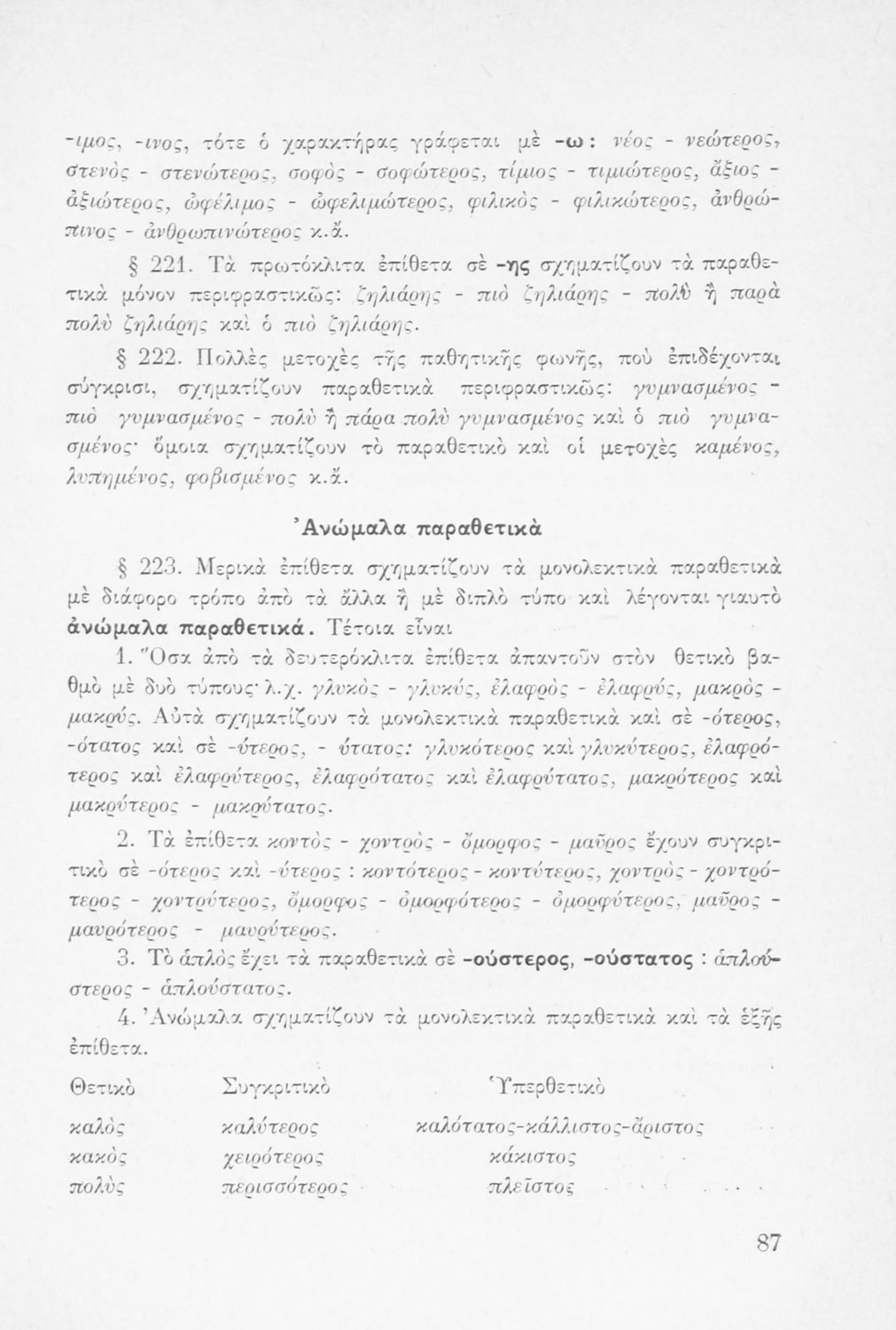 Σχολικό εγχειρίδιο Αρχαίων Ελληνικών Γυμνασίου που περιέχει τους κανόνες γραμματικής και είναι χωρισμένο σε φθογγολογικό, τυπολογικό και ετυμολογικό μέρος. Περιέχει και κατάλογο ανωμάλων ρημάτων.