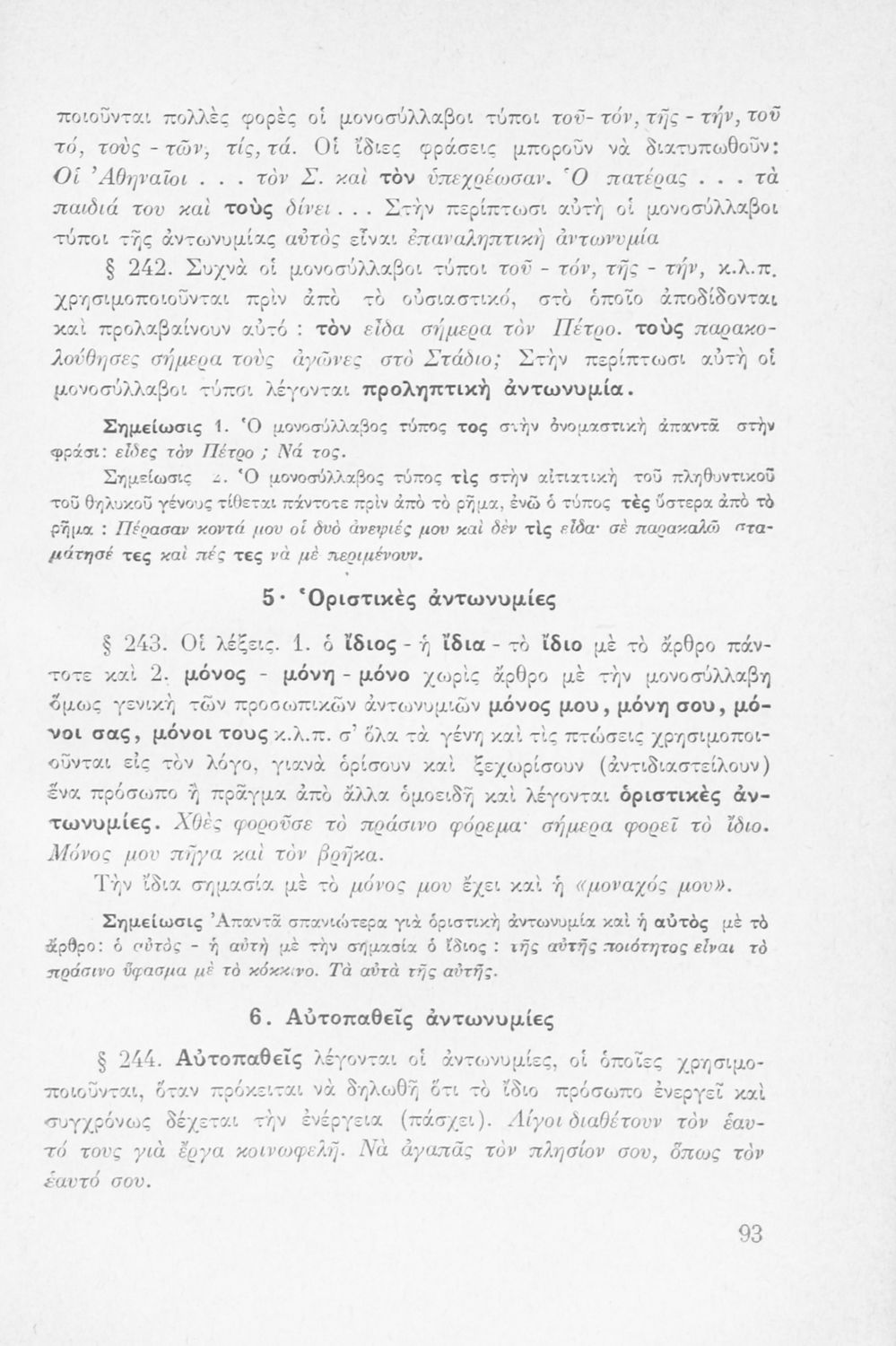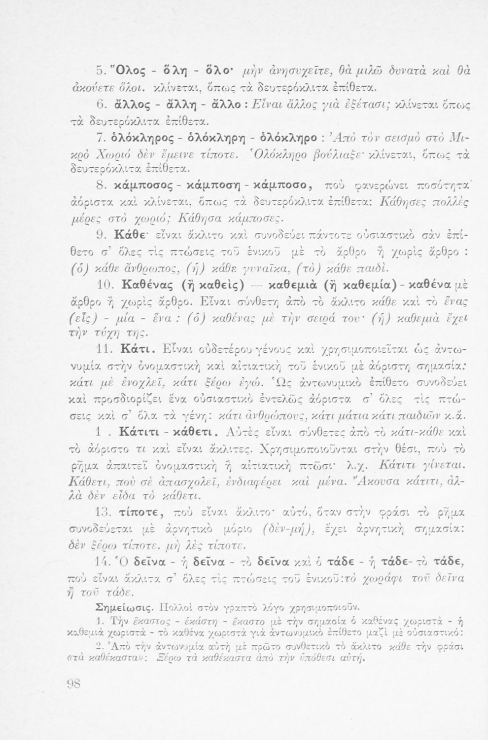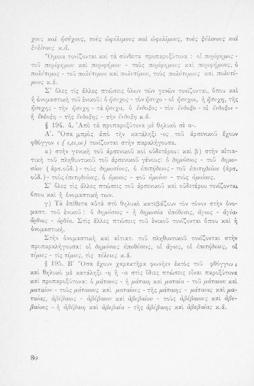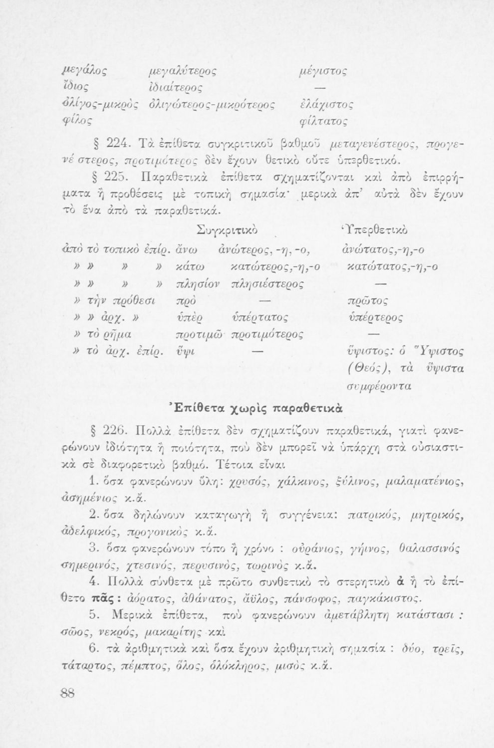 Σχολικό εγχειρίδιο Αρχαίων Ελληνικών Γυμνασίου που περιέχει τους κανόνες γραμματικής και είναι χωρισμένο σε φθογγολογικό, τυπολογικό και ετυμολογικό μέρος. Περιέχει και κατάλογο ανωμάλων ρημάτων.