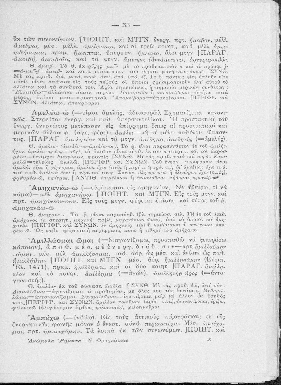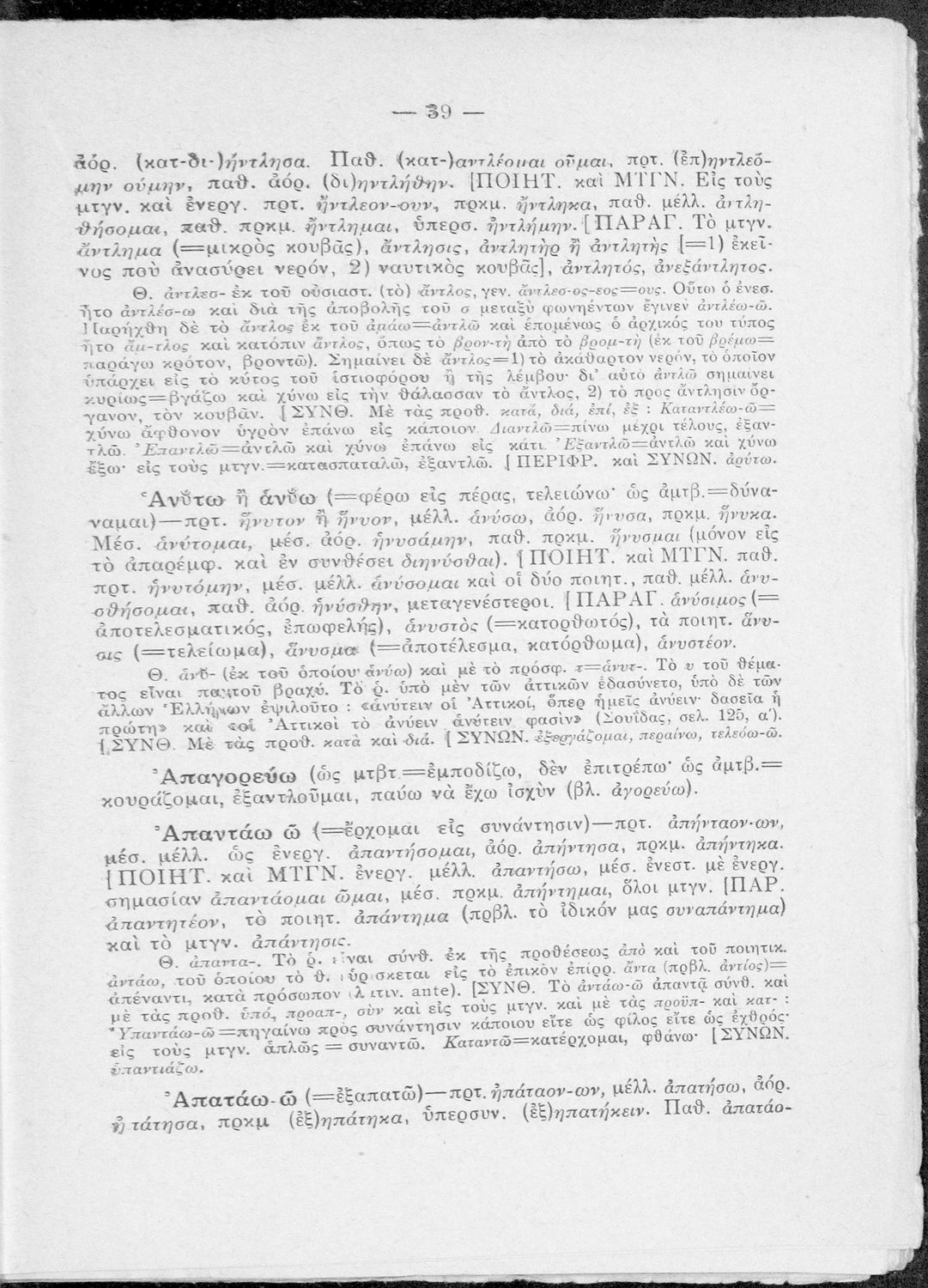 Μαθητικό βοήθημα Αρχαίων Ελληνικών για τις Α΄, Β΄, Γ' Ελληνικού Σχολείου και Παρθεναγωγείου για το μάθημα των Αρχαίων που περιλαμβάνει λεξικό ανωμάλων ρημάτων και γραμματικές σημειώσεις