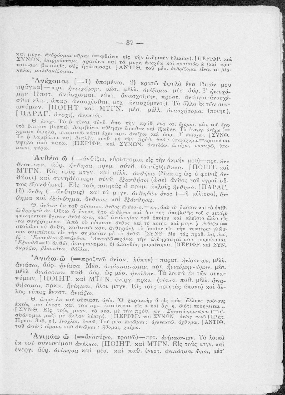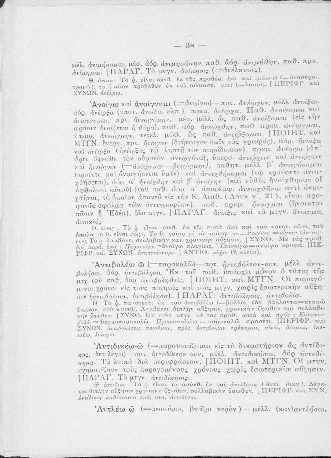 Μαθητικό βοήθημα Αρχαίων Ελληνικών Γυμνασίου που αποτελεί λεξικό ανωμάλων ρημάτων της Αττικής διαλέκτου. Περιέχει και γραμματικές σημειώσεις.