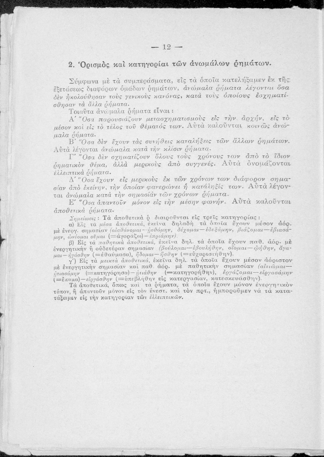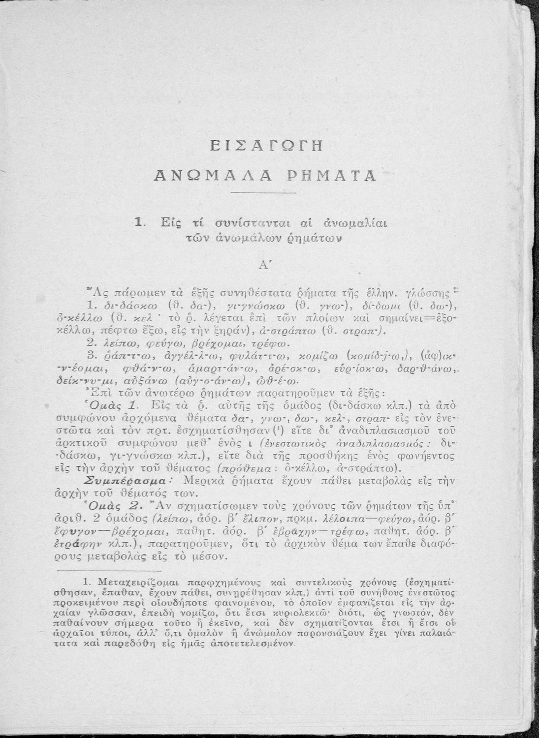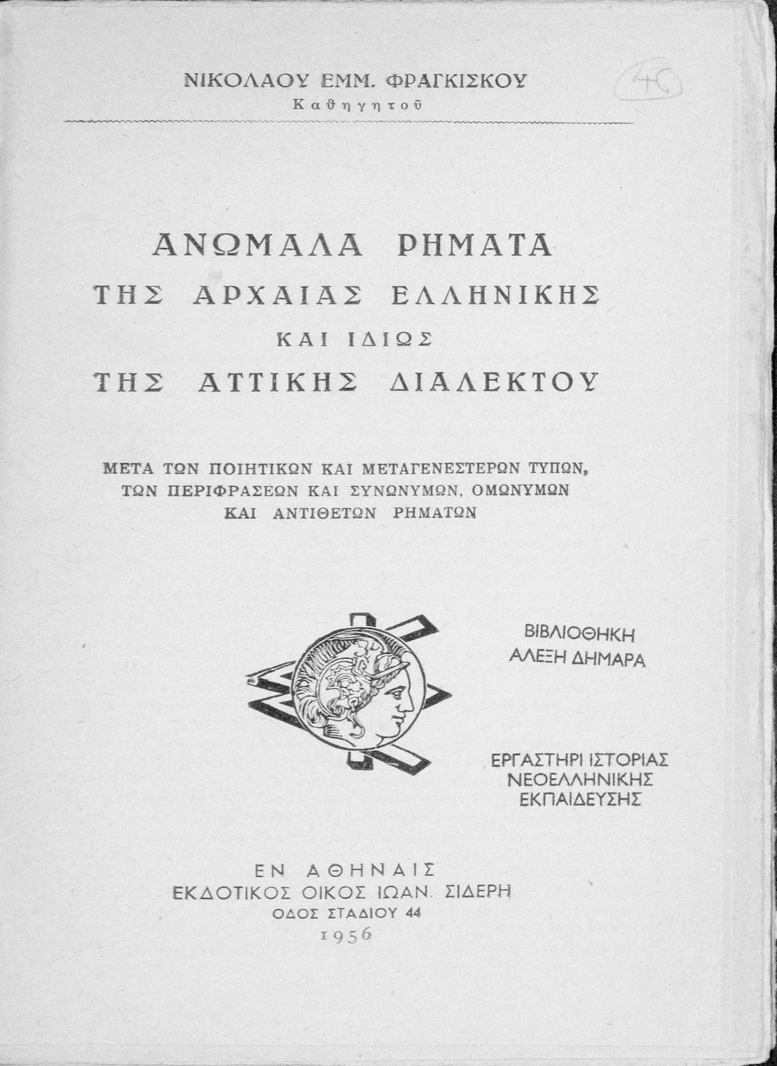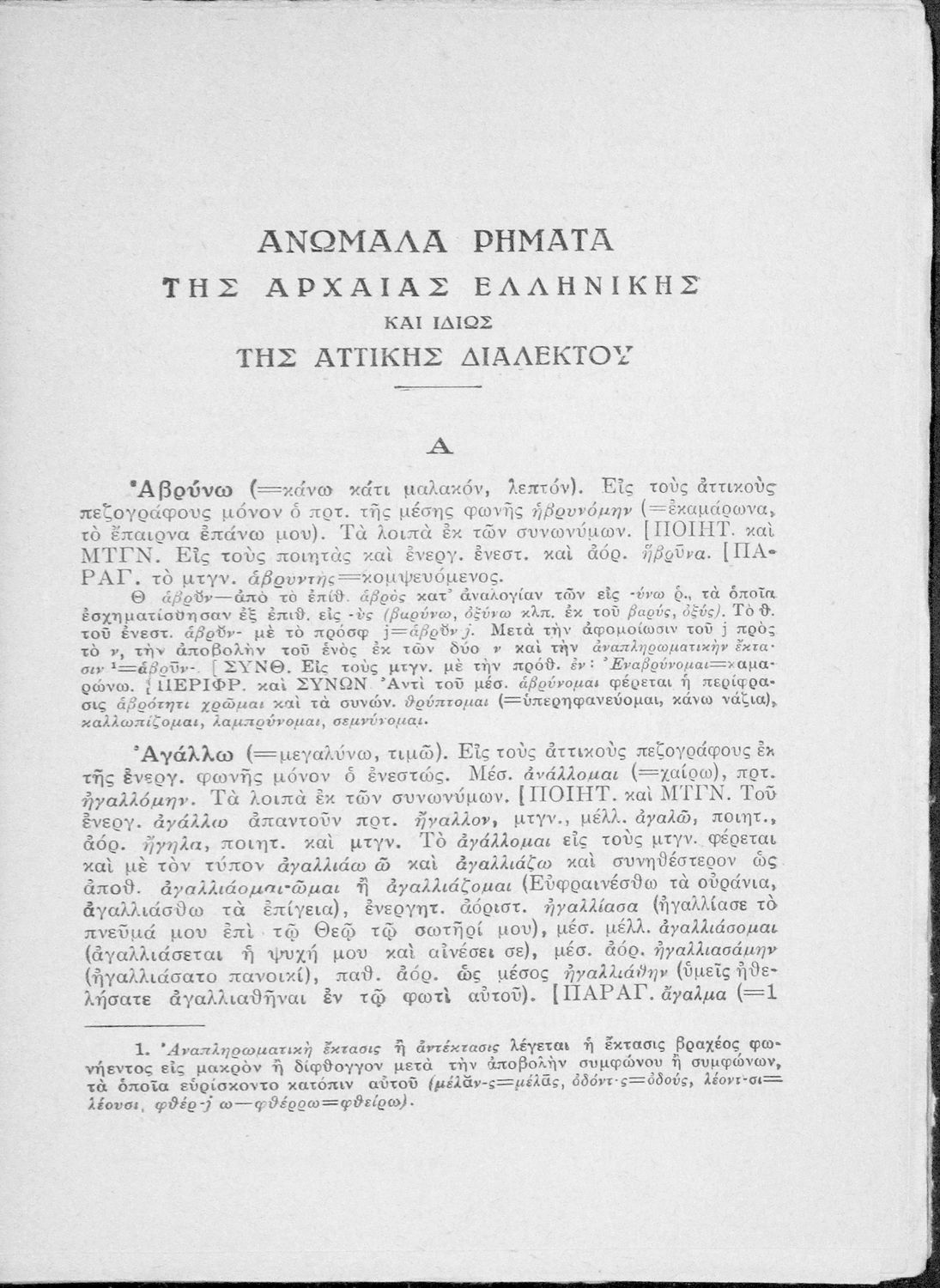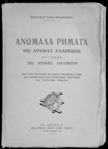 Μαθητικό βοήθημα Αρχαίων Ελληνικών για τα Γυμνάσια, Παρθεναγωγεία και Ελληνικά σχολεία το οποίο περιέχει κατάλογο ανωμάλων ρημάτων της Αττικής διαλέκτου.