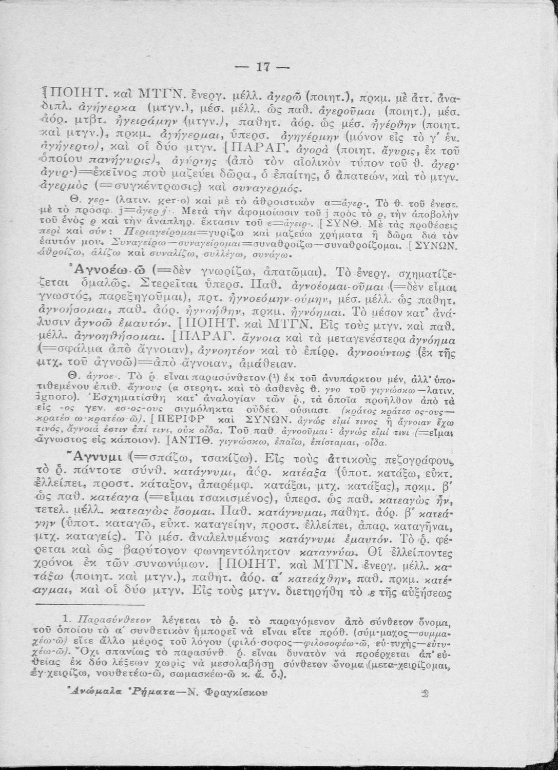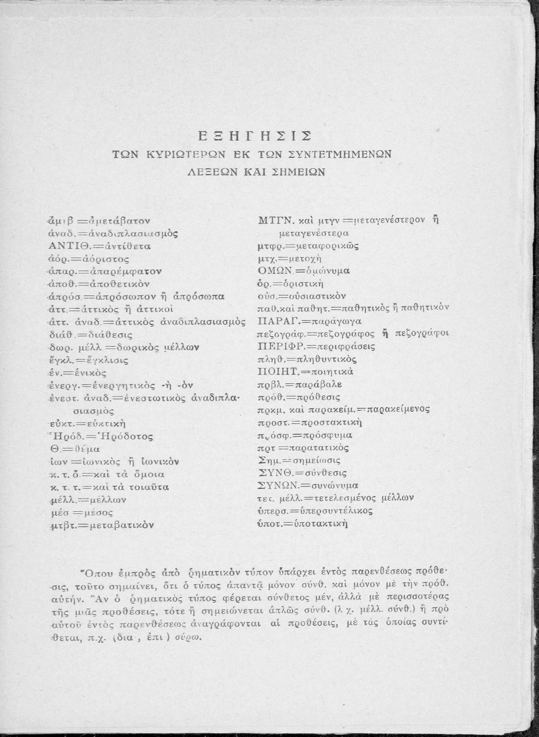 Μαθητικό βοήθημα Αρχαίων Ελληνικών για τις Α΄, Β΄, Γ' Ελληνικού Σχολείου και Παρθεναγωγείου για το μάθημα των Αρχαίων που περιλαμβάνει λεξικό ανωμάλων ρημάτων και γραμματικές σημειώσεις