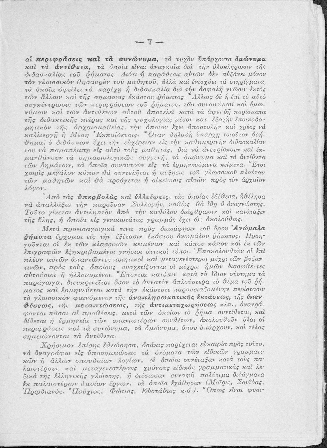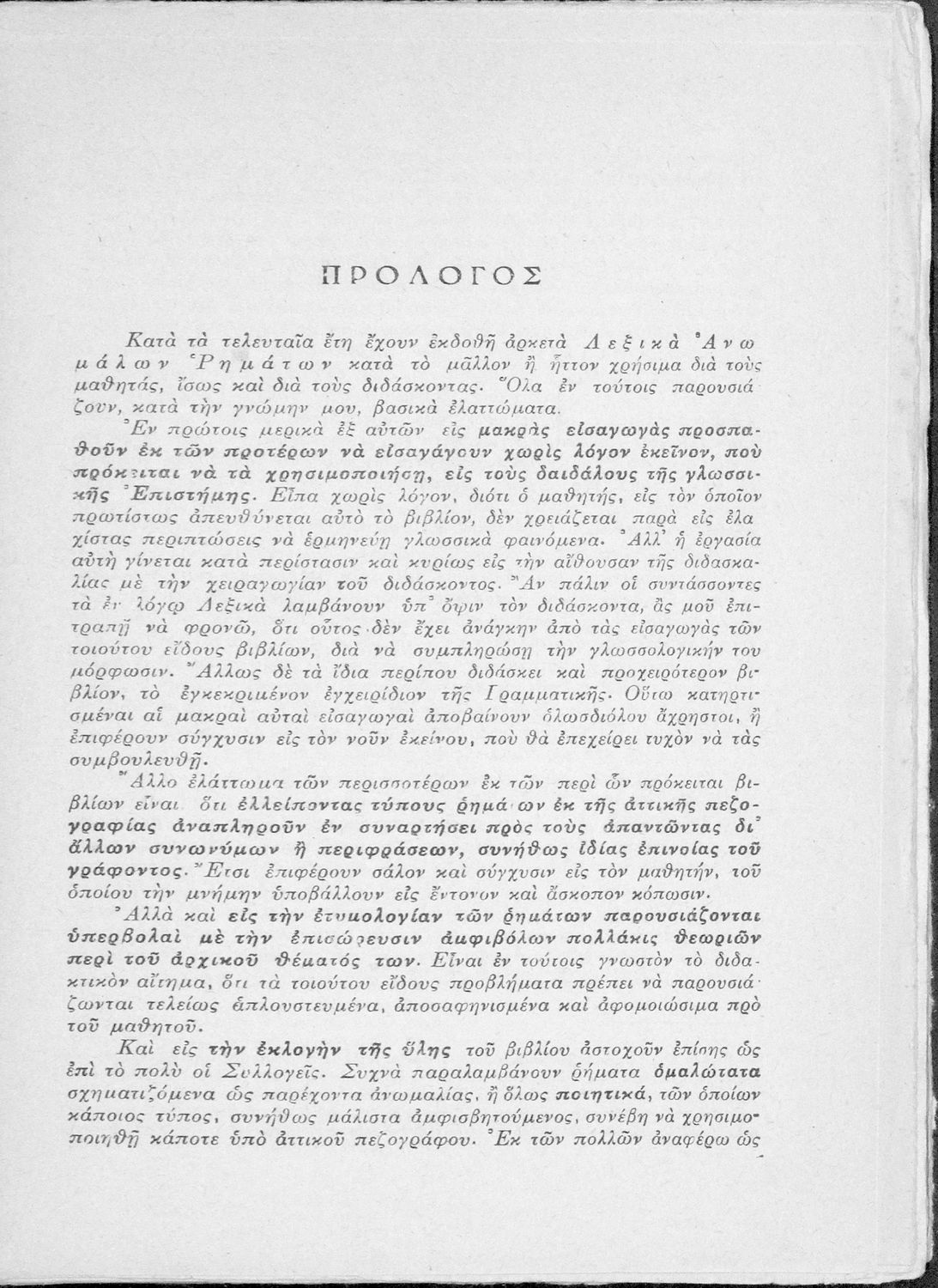 Μαθητικό βοήθημα Αρχαίων Ελληνικών για τα Ελληνικά Σχολεία, Παρθεναγωγεία και Γυμνάσια που περιλαμβάνει γραμματική της αρχαίας ελληνικής και κατάλογο ανωμάλων ρημάτων.
