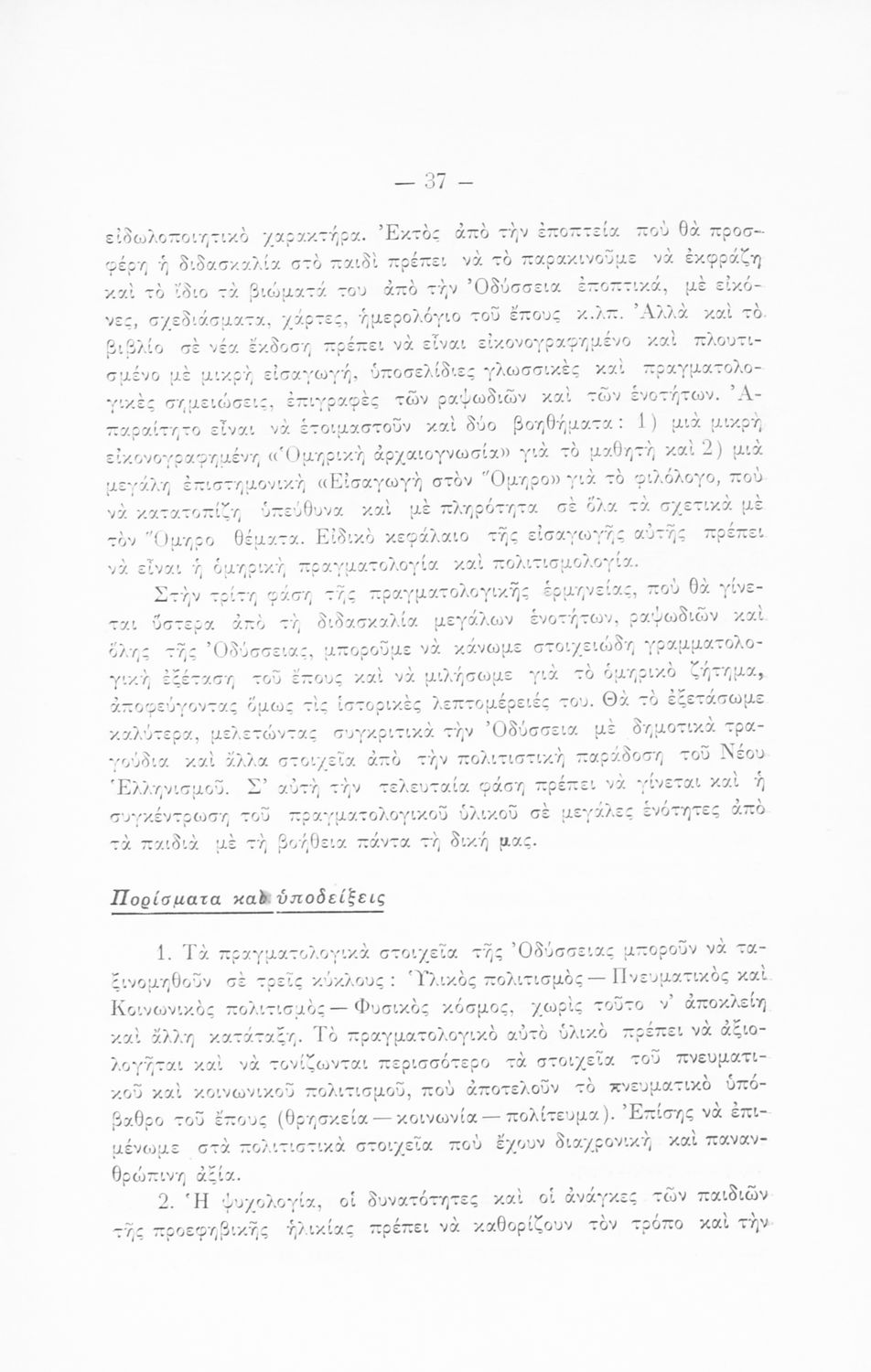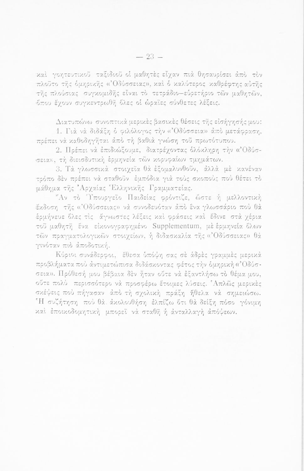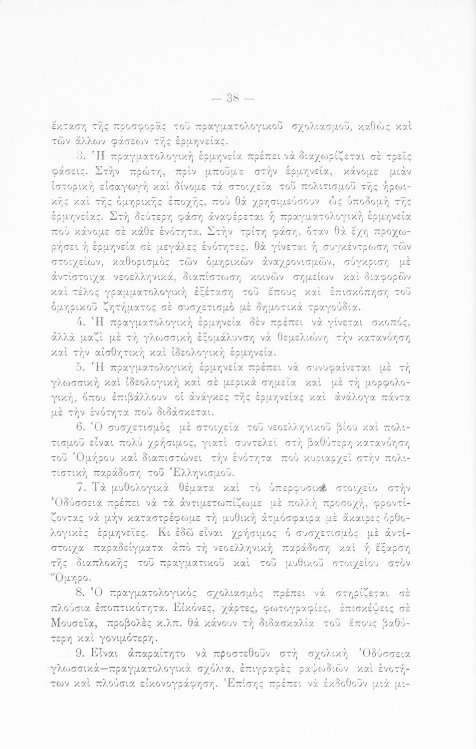 Η διδασκαλία των νέων μαθημάτων στο Γυμνάσιο. Ι. Αρχαία Ελληνική γραμματεία. Ομήρου Οδύσσεια. ΙΙ. Νέα Ελληνική γραμματεία: Γραμματική της Δημοτικής γλώσσας