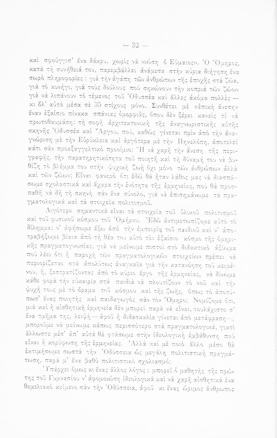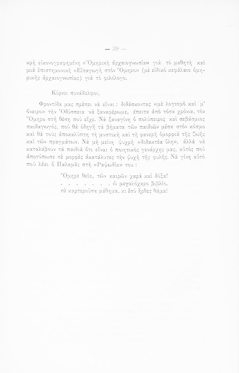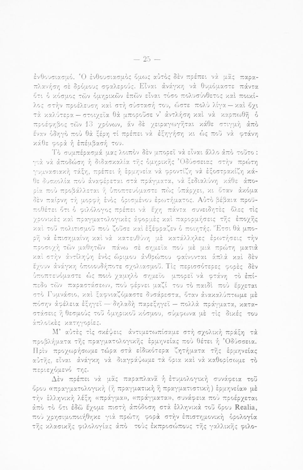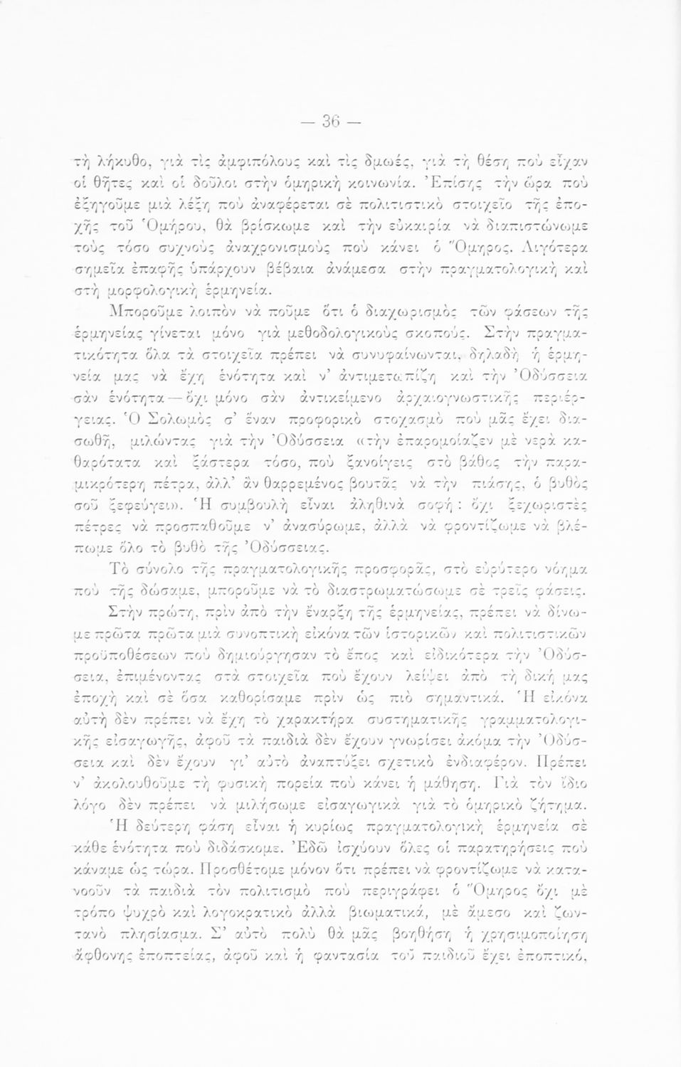 Η διδασκαλία των νέων μαθημάτων στο Γυμνάσιο. Ι. Αρχαία Ελληνική γραμματεία. Ομήρου Οδύσσεια. ΙΙ. Νέα Ελληνική γραμματεία: Γραμματική της Δημοτικής γλώσσας