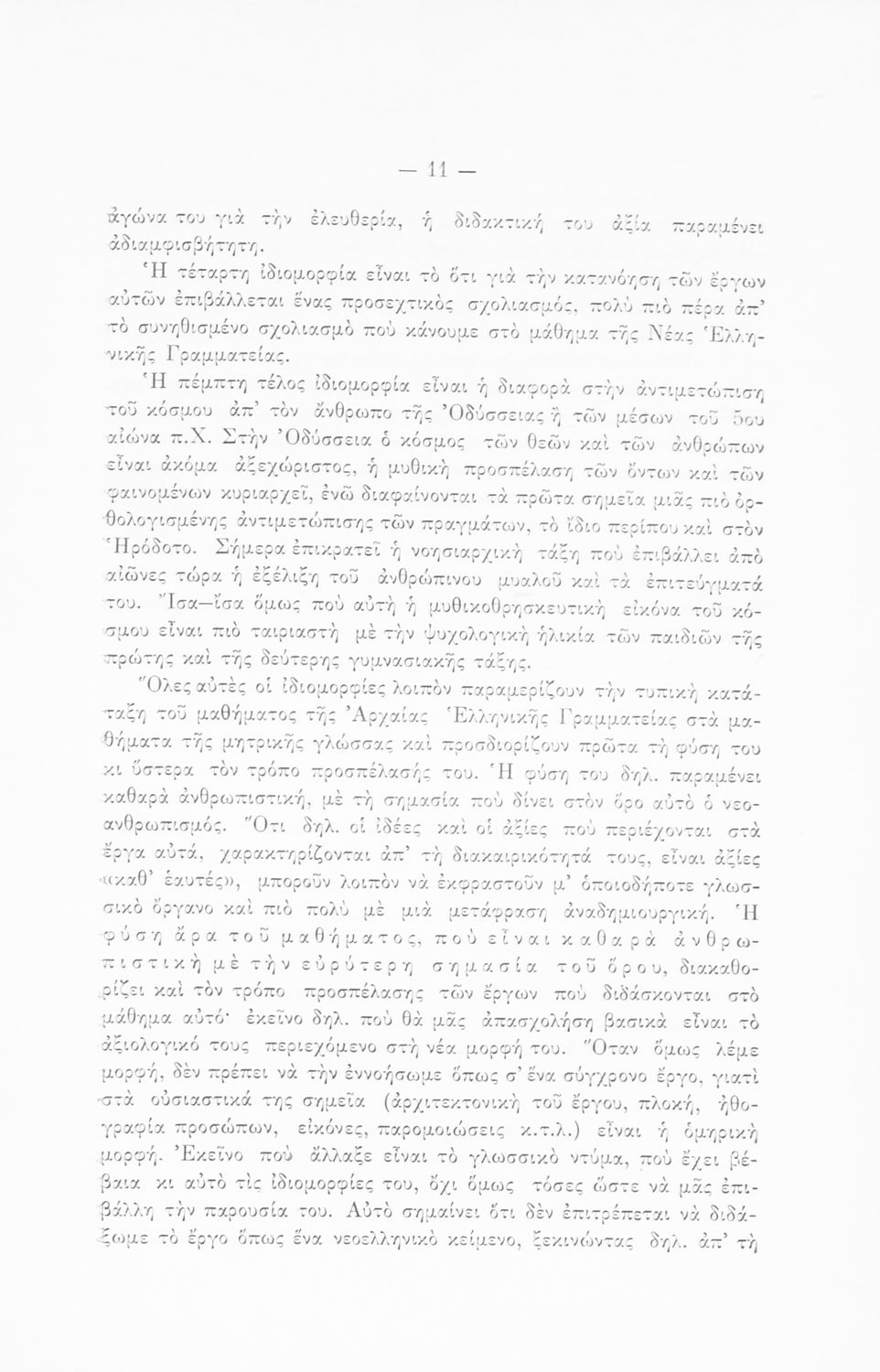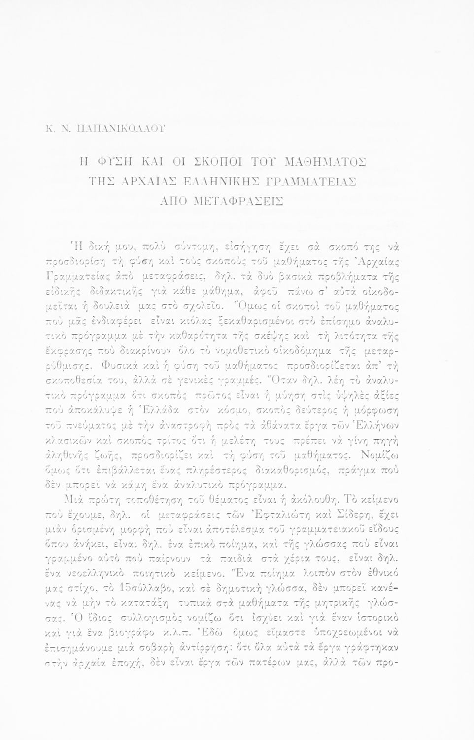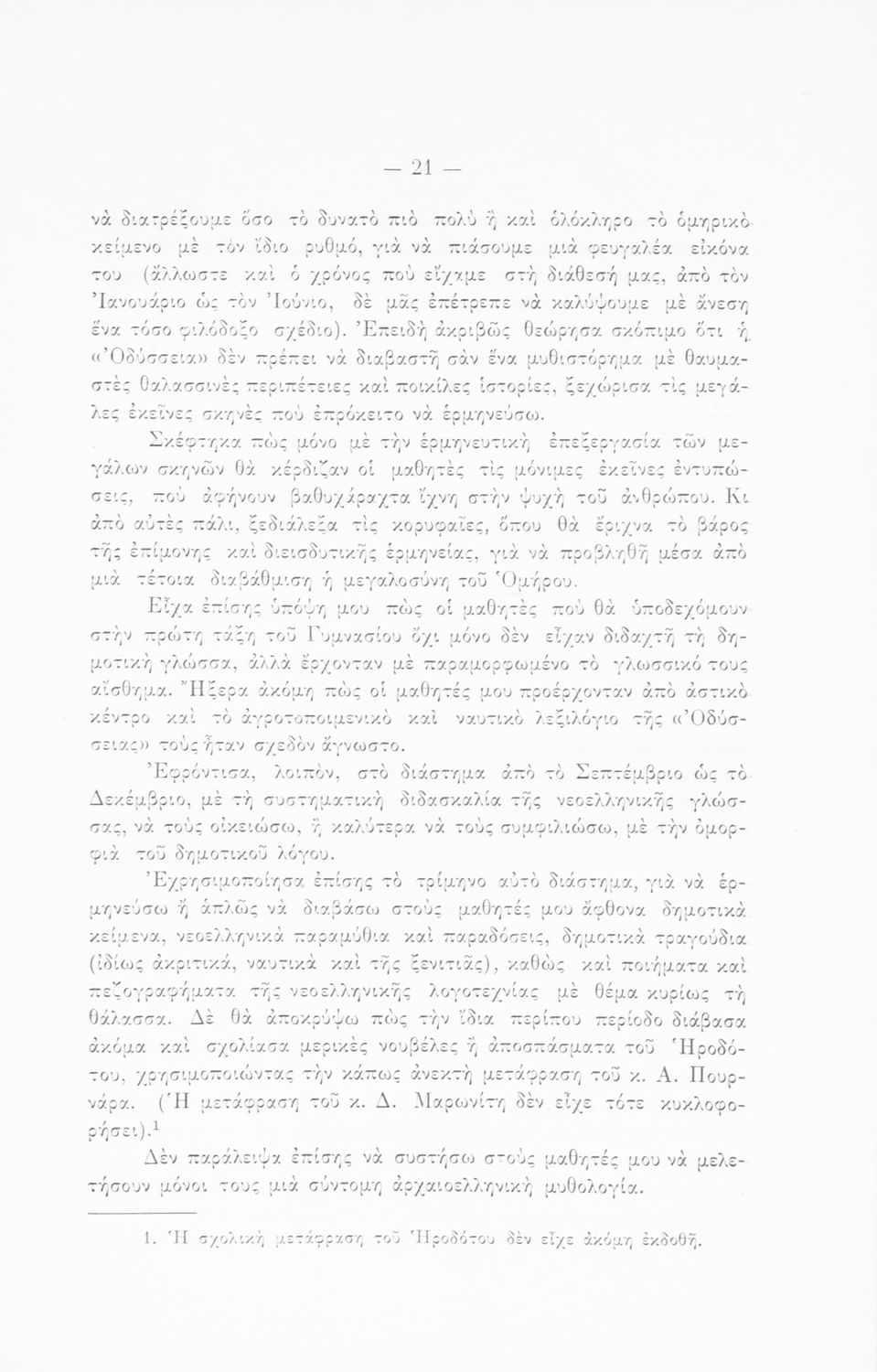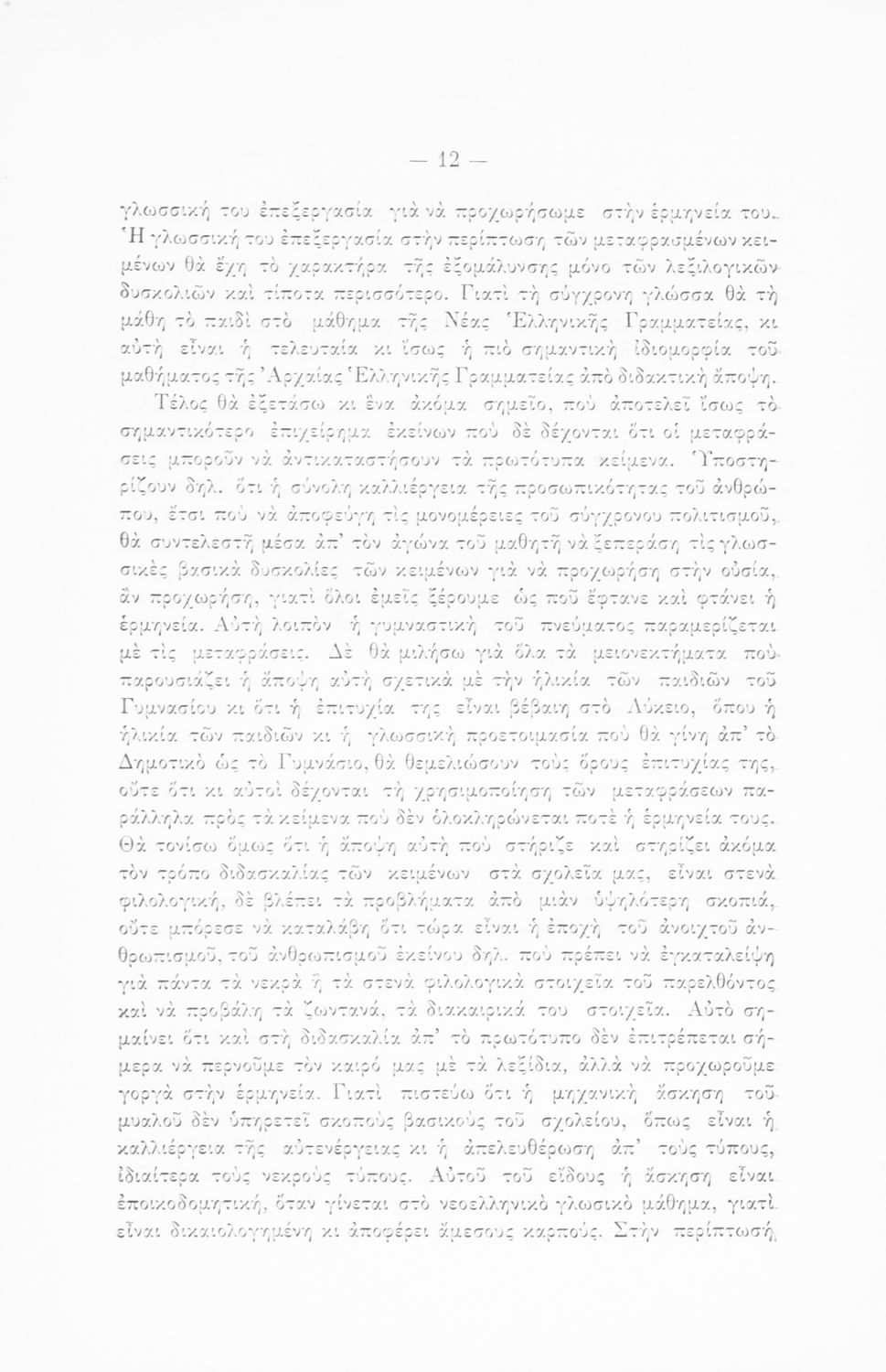 Έκδοση που περιέχει τα πρακτικά συνεδρίου που πραγματοποιήθηκε στις 19-20 Ιουνίου 1966 υπό την αιγίδα του περιοδικού Φιλόλογος. Οι εισηγήσεις εστιάζουν στους τρόπους διδασκαλίας της αρχαίας ελληνικής γραμματείας από μετάφραση και συγκεκριμένα της Οδύσσειας καθώς και την διδασκαλία της γραμματικής της δημοτικής.