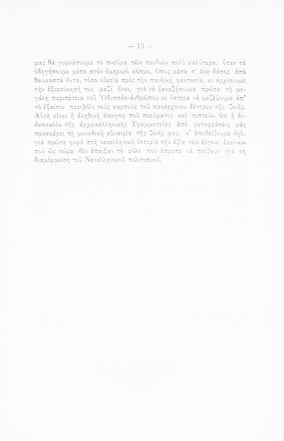 Βαθμίδα εκπαίδευσης: Δευτεροβάθμια Τάξη: Γυμνάσιο Μάθημα: Νέα Ελληνικά Γλώσσα: Δημοτική Παρουσίαση περιεχομένου: Έκδοση που περιέχει τα πρακτικά συνεδρίου που πραγματοποιήθηκε στις 19-20 Ιουνίου 1966 υπό την αιγίδα του περιοδικού Φιλόλογος. Οι εισηγήσεις εστιάζουν στους τρόπους διδασκαλίας της αρχαίας ελληνικής γραμματείας από μετάφραση και συγκεκριμένα της Οδύσσειας καθώς και την διδασκαλία της γραμματικής της δημοτικής. |