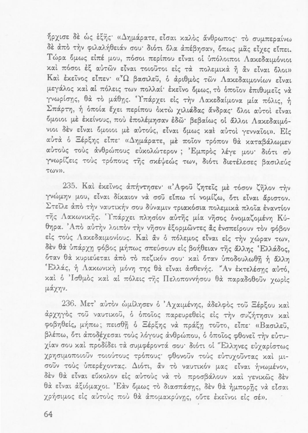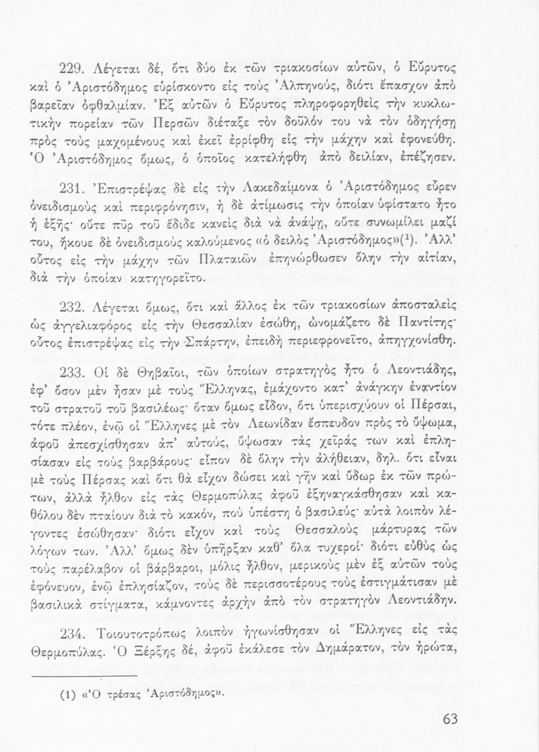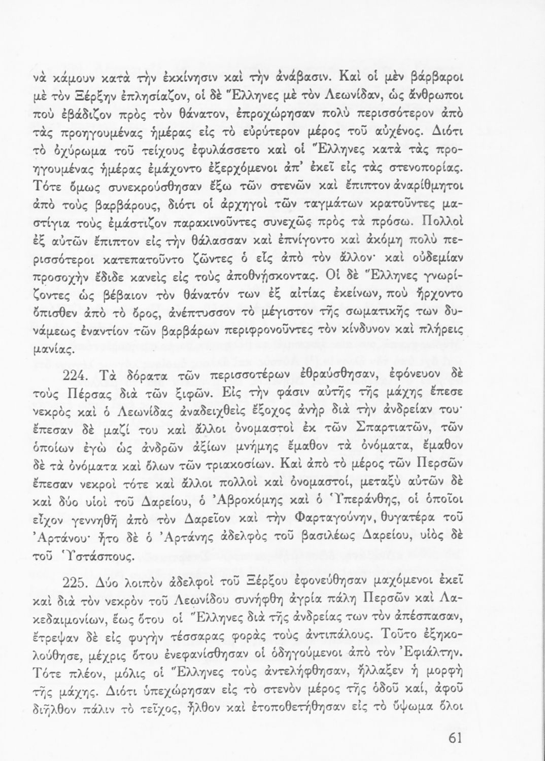 Σχολικό εγχειρίδιο Αρχαίων Ελληνικών Α΄ Γυμνασίου που περιλαμβάνει εισαγωγή στη ζωή και το έργο του Ηρόδοτου, και αποσπάσματα από τα 9 βιβλία της Ιστορίας του σε μετάφραση. Φέρει το σύμβολο της δικτατορίας.