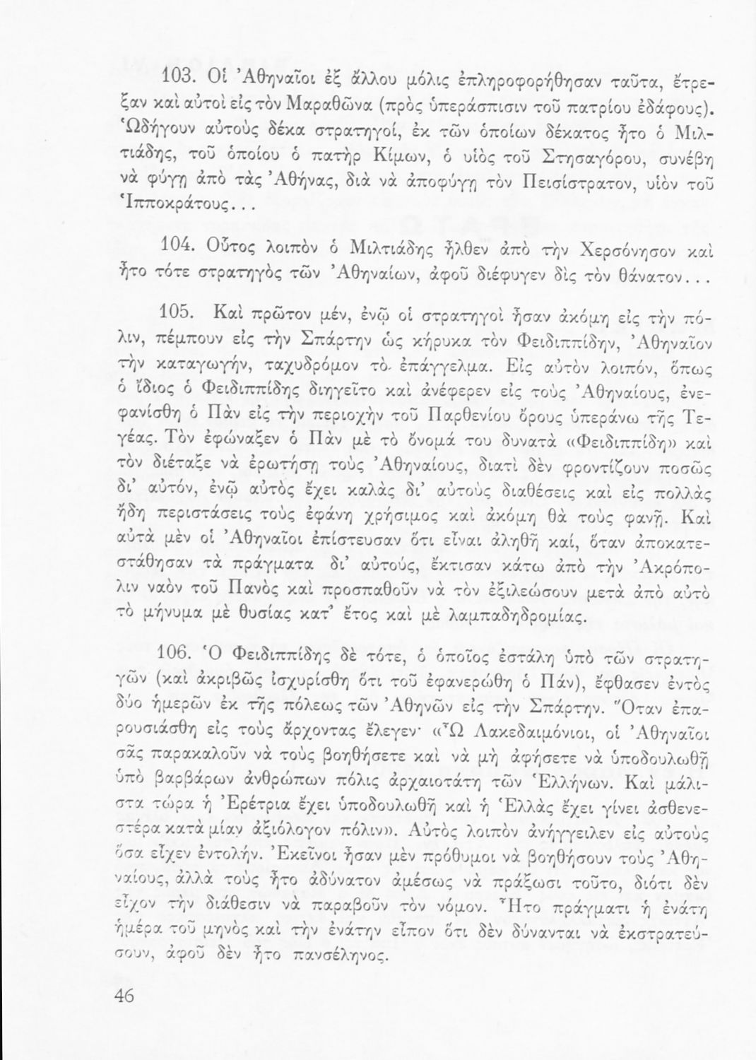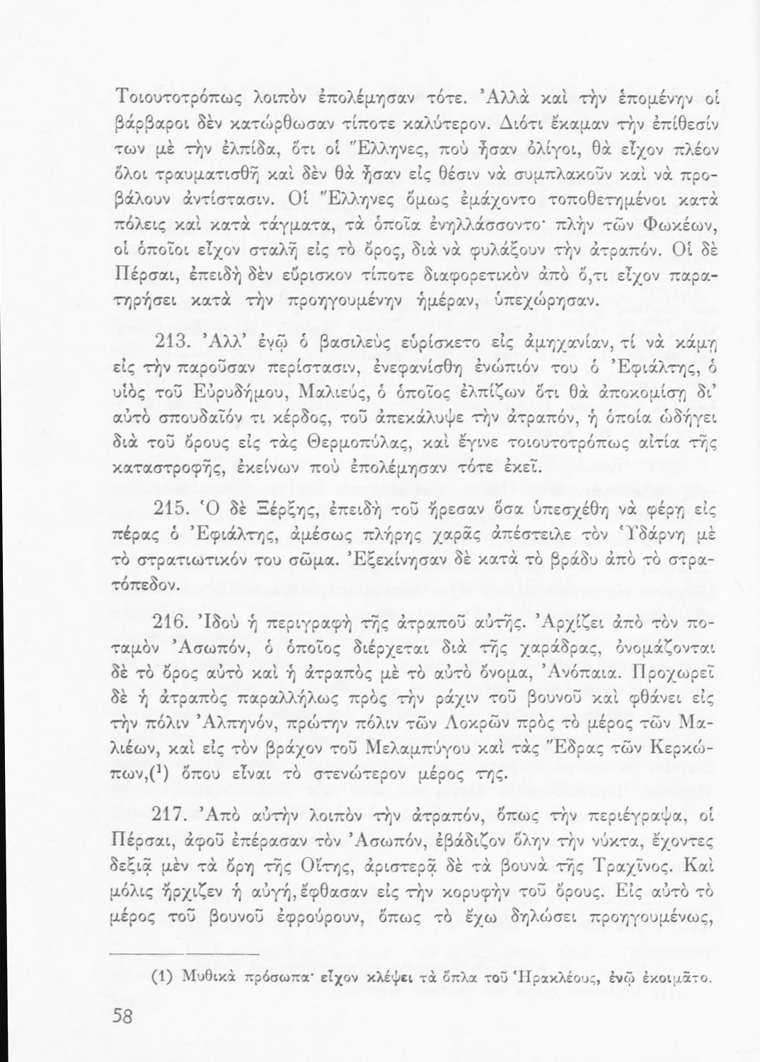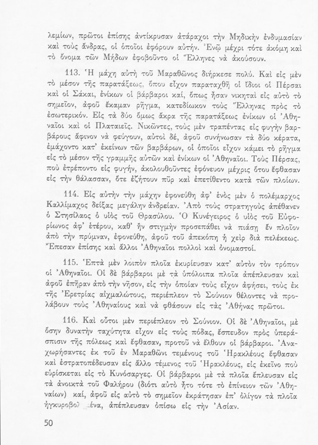 Σχολικό εγχειρίδιο Αρχαίων Ελληνικών Α΄ Γυμνασίου που περιλαμβάνει εισαγωγή στη ζωή και το έργο του Ηρόδοτου, και αποσπάσματα από τα 9 βιβλία της Ιστορίας του σε μετάφραση. Φέρει το σύμβολο της δικτατορίας.