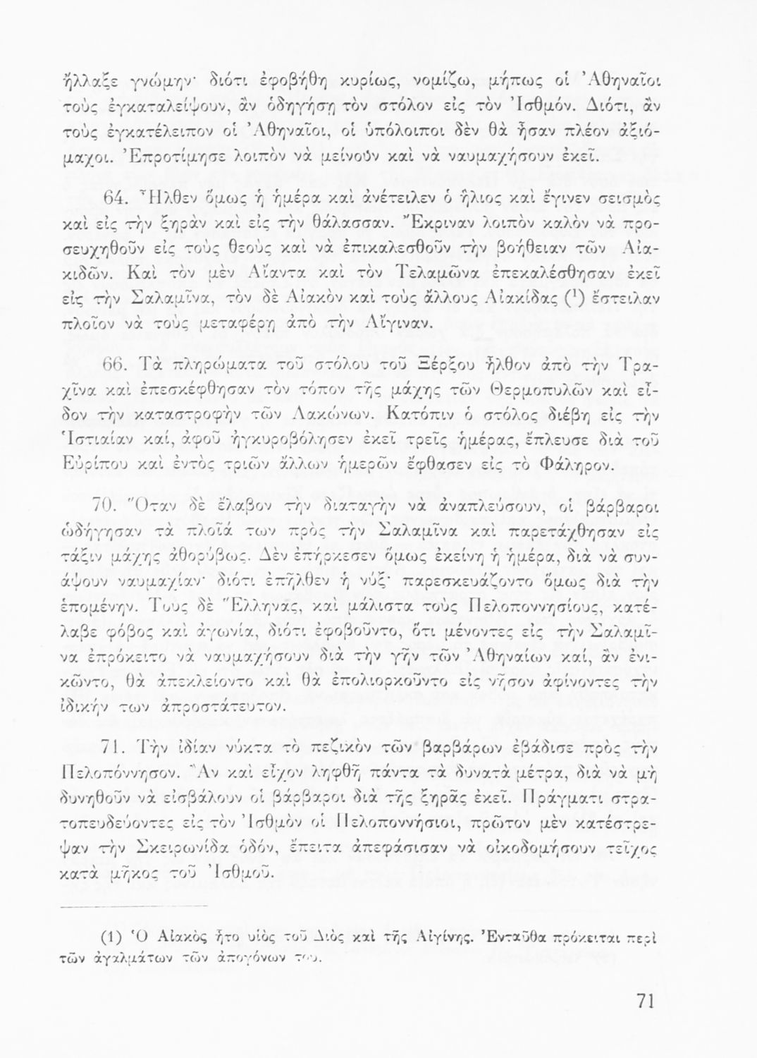 Σχολικό εγχειρίδιο Αρχαίων Ελληνικών Α΄ Γυμνασίου που περιλαμβάνει εισαγωγή στη ζωή και το έργο του Ηρόδοτου, και αποσπάσματα από τα 9 βιβλία της Ιστορίας του σε μετάφραση. Φέρει το σύμβολο της δικτατορίας.