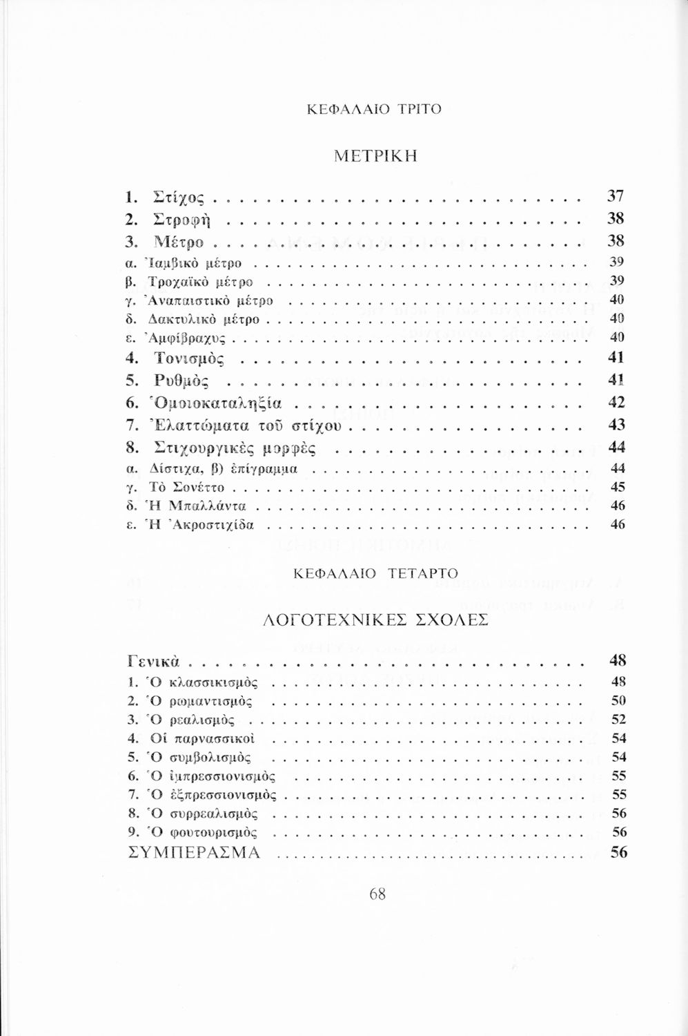 Μαθητικό βοήθημα Νέων Ελληνικών που περιλαμβάνει τα είδη, ρεύματα και τεχνοτροπίες της νεοελληνικής λογοτεχνίας. Περιέχει και στοιχεία μετρικής.