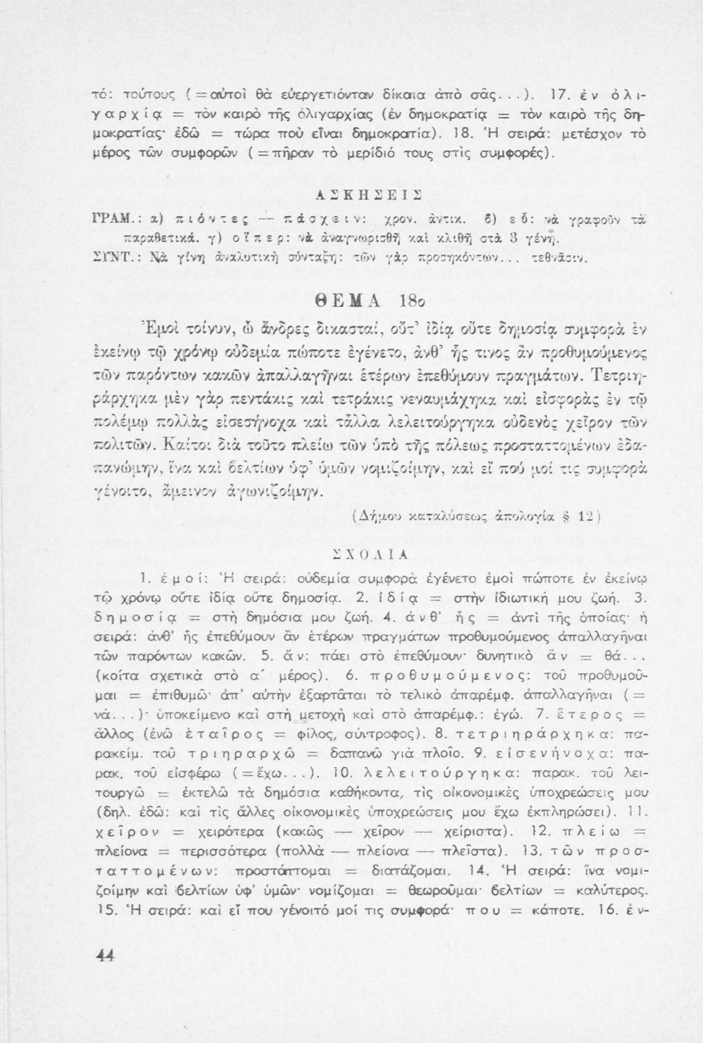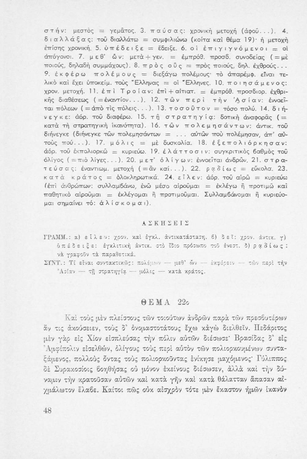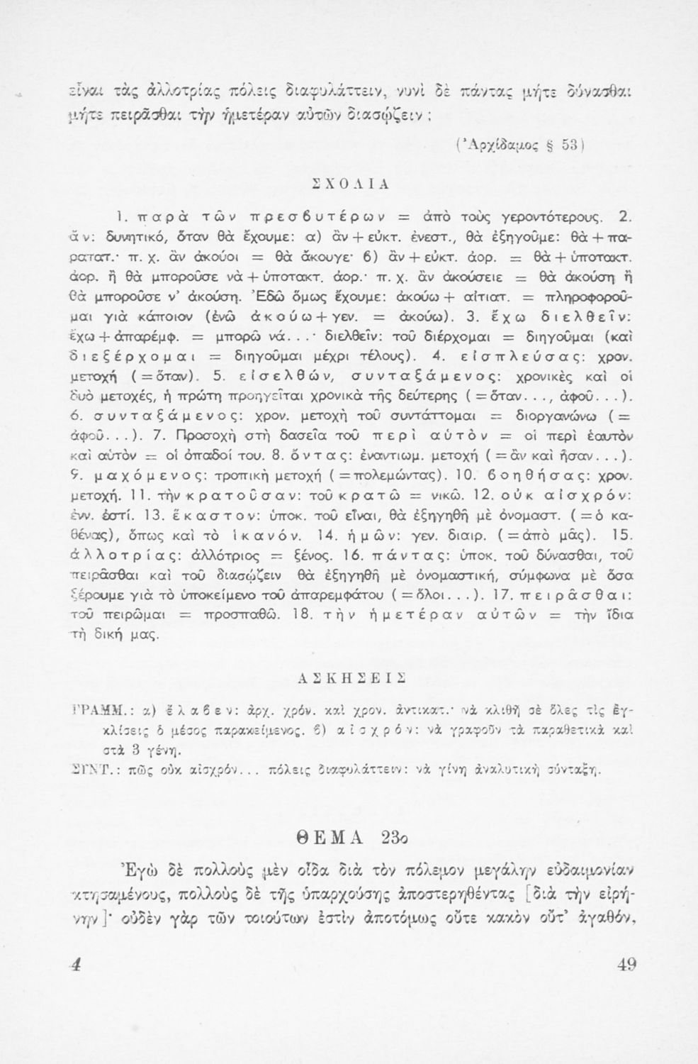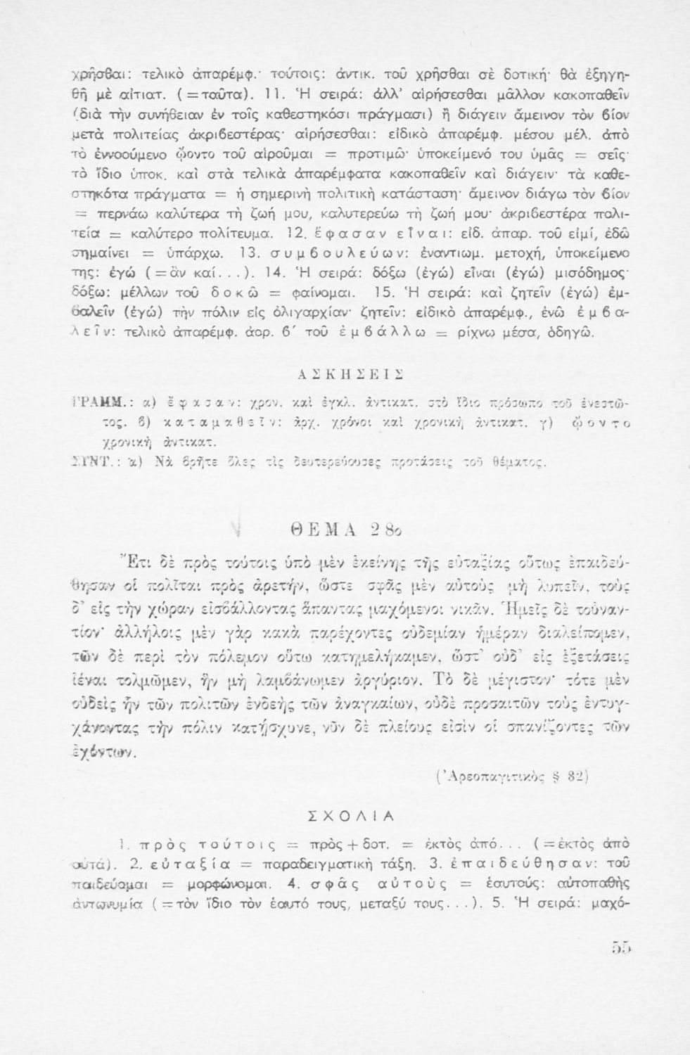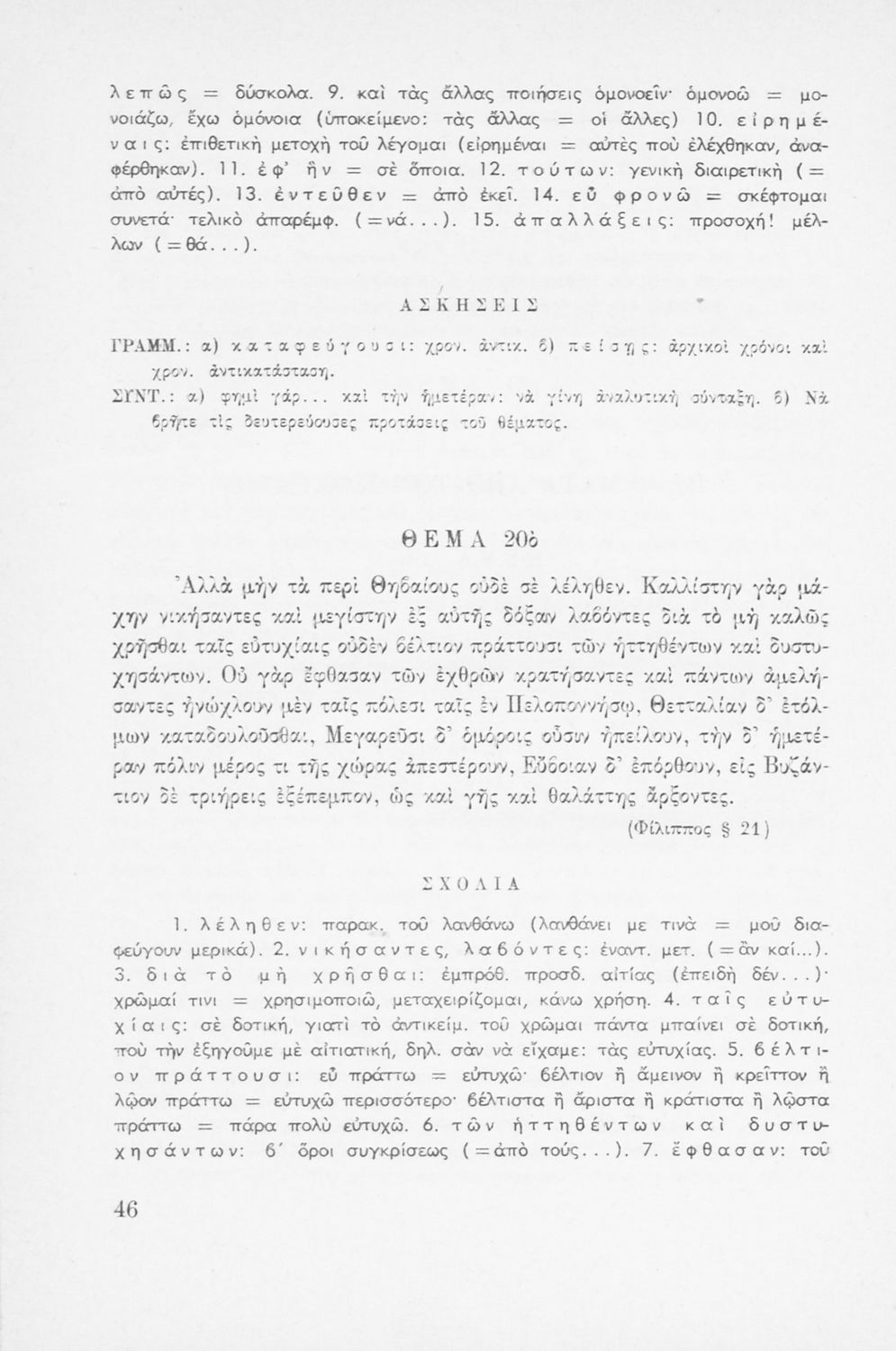 Αρχαία θέματα. Γενικές γραμματικές, συντακτικές και ερμηνευτικές οδηγίες - θέματα - σχόλια - ασκήσεις - μετάφραση - λύση ασκήσεων. Για τις εισαγωγικές εξετάσεις στο Λύκειο