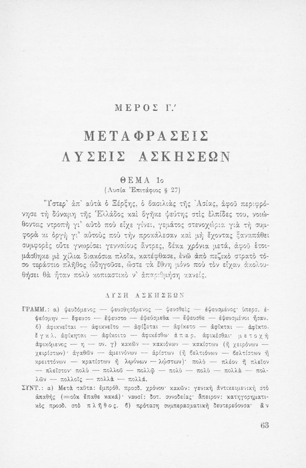 Μαθητικό βοήθημα Αρχαίων Ελληνικών που περιέχει την γραμματική και το συντακτικό της αρχαίας ελληνικής μέσα από παραδείγματα, θεωρία και ασκήσεις. Περιλαμβάνει και τεχνικές μετάφρασης.