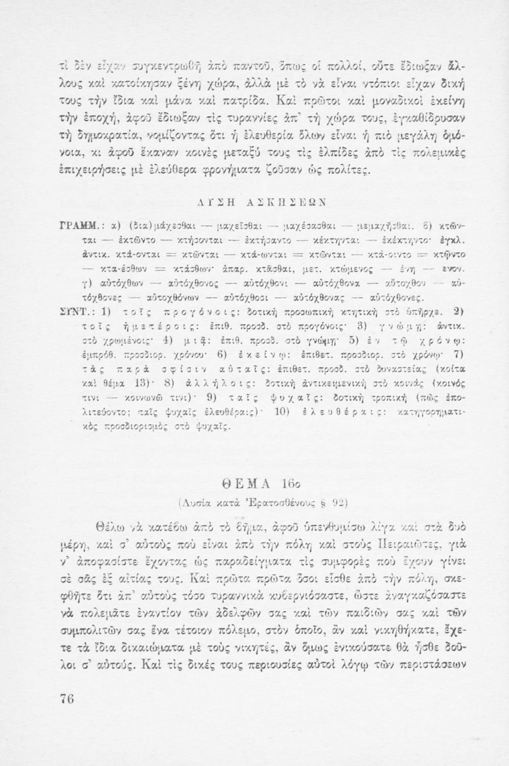 LDR 01294 2200181 4500 035 ## _a05-00051 040 ## _aΕργαστήρι Ιστορίας Ν.Ε. Εκπαίδευσης, Πανεπιστήμιο Ιωαννίνων 041 ## _ael 100 ## _aΧρίστος Χριστίδης 110 ## _a051 245 0# _aΑρχαία θέματα. Γενικές γραμματικές, συντακτικές και ερμηνευτικές οδηγίες - θέματα - σχόλια - ασκήσεις - μετάφραση - λύση ασκήσεων. Για τις εισαγωγικές εξετάσεις στο Λύκειο 260 ## _aΑθήνα _bΓρηγόρης _c1966 300 ## _a95 520 ## _aΜαθητικό βοήθημα Αρχαίων Ελληνικών που περιέχει την γραμματική και το συντακτικό της αρχαίας ελληνικής μέσα από παραδείγματα, θεωρία και ασκήσεις. Περιλαμβάνει και τεχνικές μετάφρασης. 522 ## _aΕλλάδα 546 ## _aΔημοτική με στοιχεία καθαρεύουσας 563 ## _aΜαλακό Εξώφυλλο 650 #4 _aΓραμματική _aΕρμηνευτικά σχόλια _aΜετάφραση _aΣυντακτικό