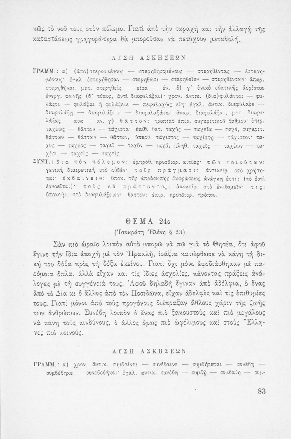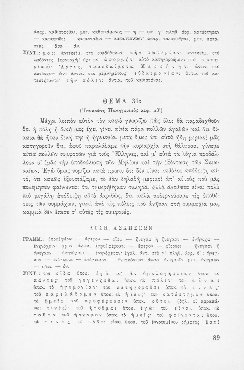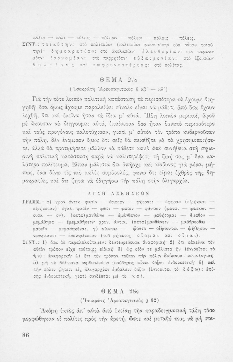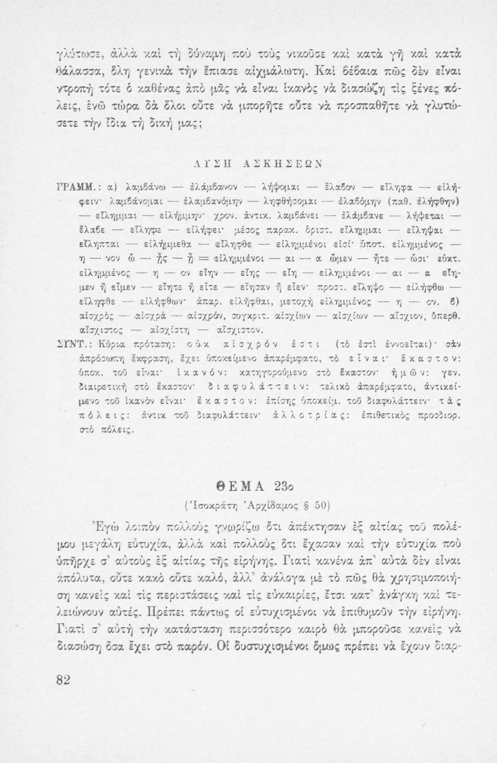 Μαθητικό βοήθημα Αρχαίων Ελληνικών που περιέχει την γραμματική και το συντακτικό της αρχαίας ελληνικής μέσα από παραδείγματα, θεωρία και ασκήσεις. Περιλαμβάνει και τεχνικές μετάφρασης.