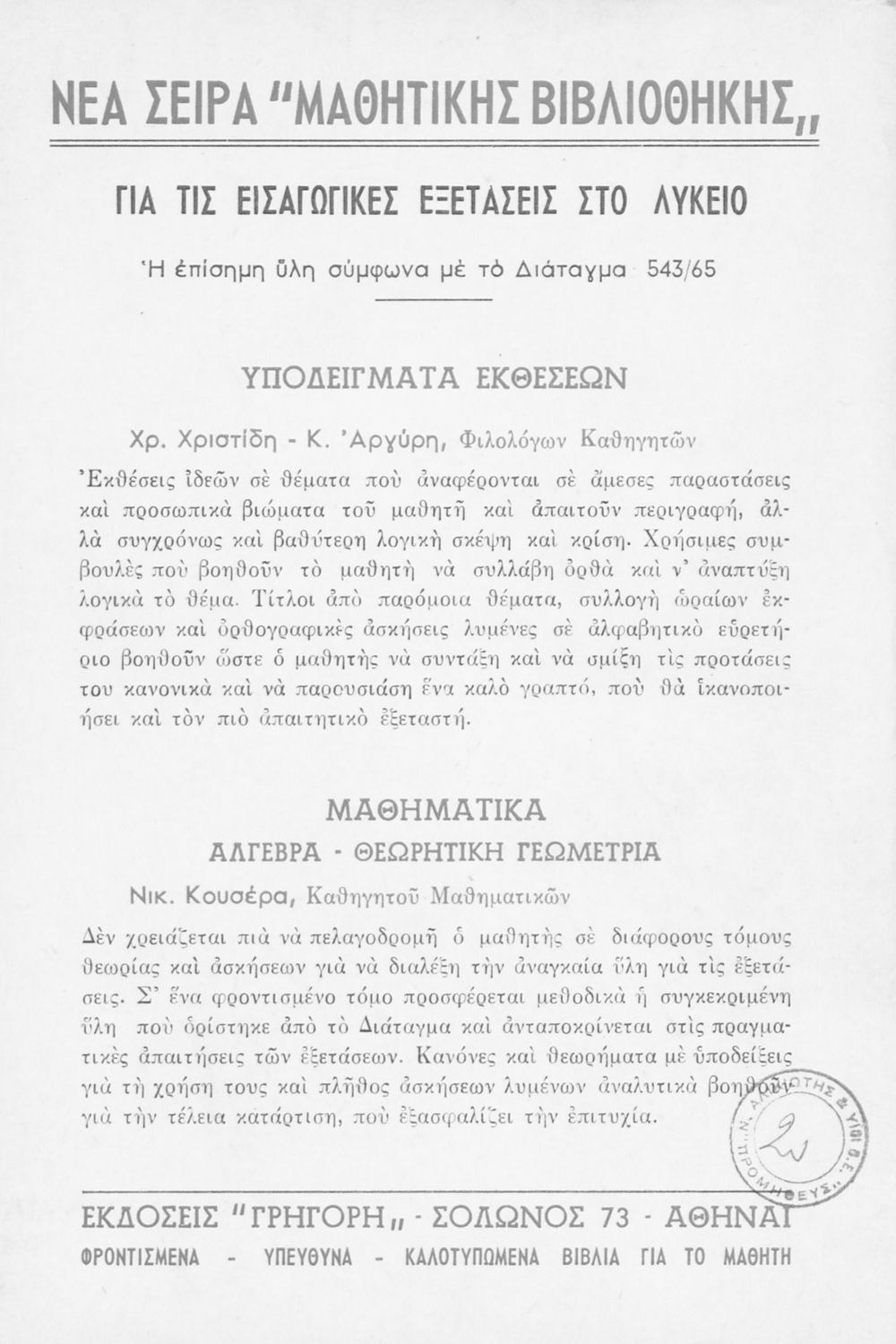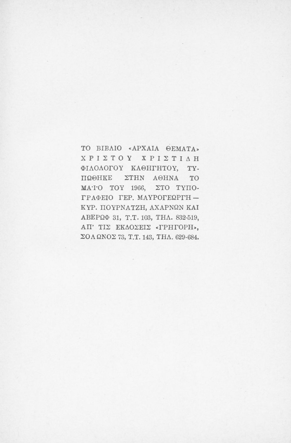 Εκδότης: Γρηγόρης Έτος έκδοσης: 1966 Τόπος έκδοσης: Αθήνα |