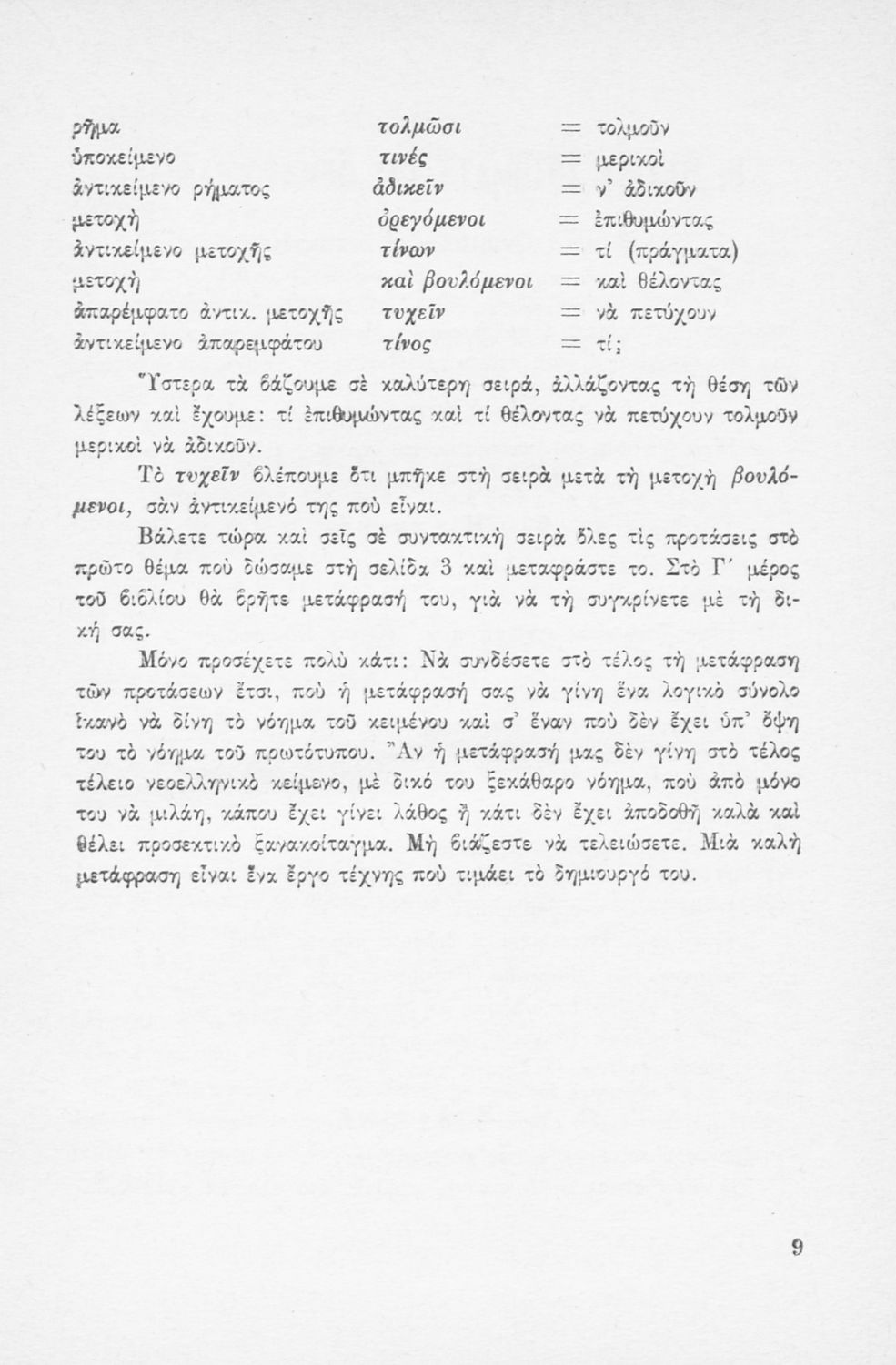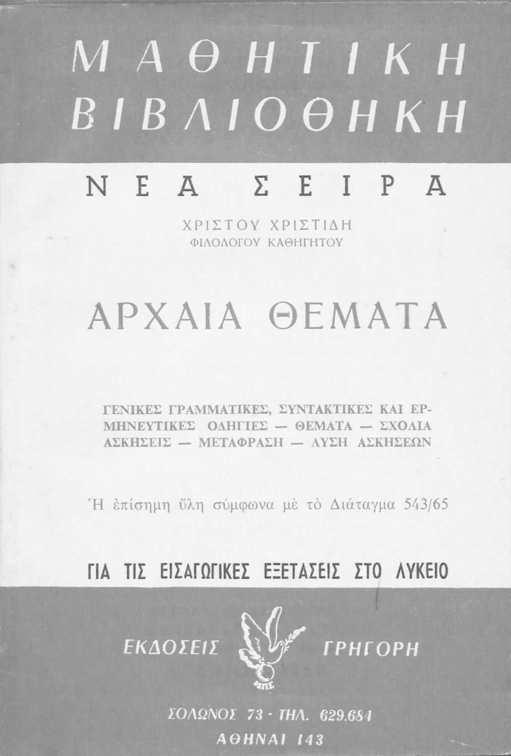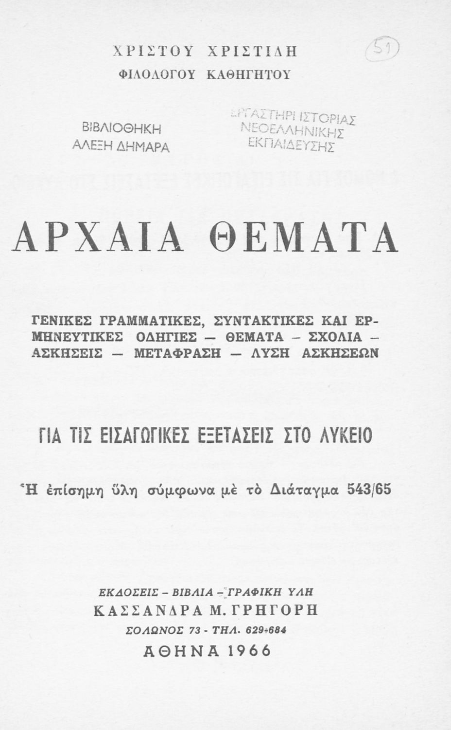 Μαθητικό βοήθημα Αρχαίων Ελληνικών που περιέχει την γραμματική και το συντακτικό της αρχαίας ελληνικής μέσα από παραδείγματα, θεωρία και ασκήσεις. Περιλαμβάνει και τεχνικές μετάφρασης.