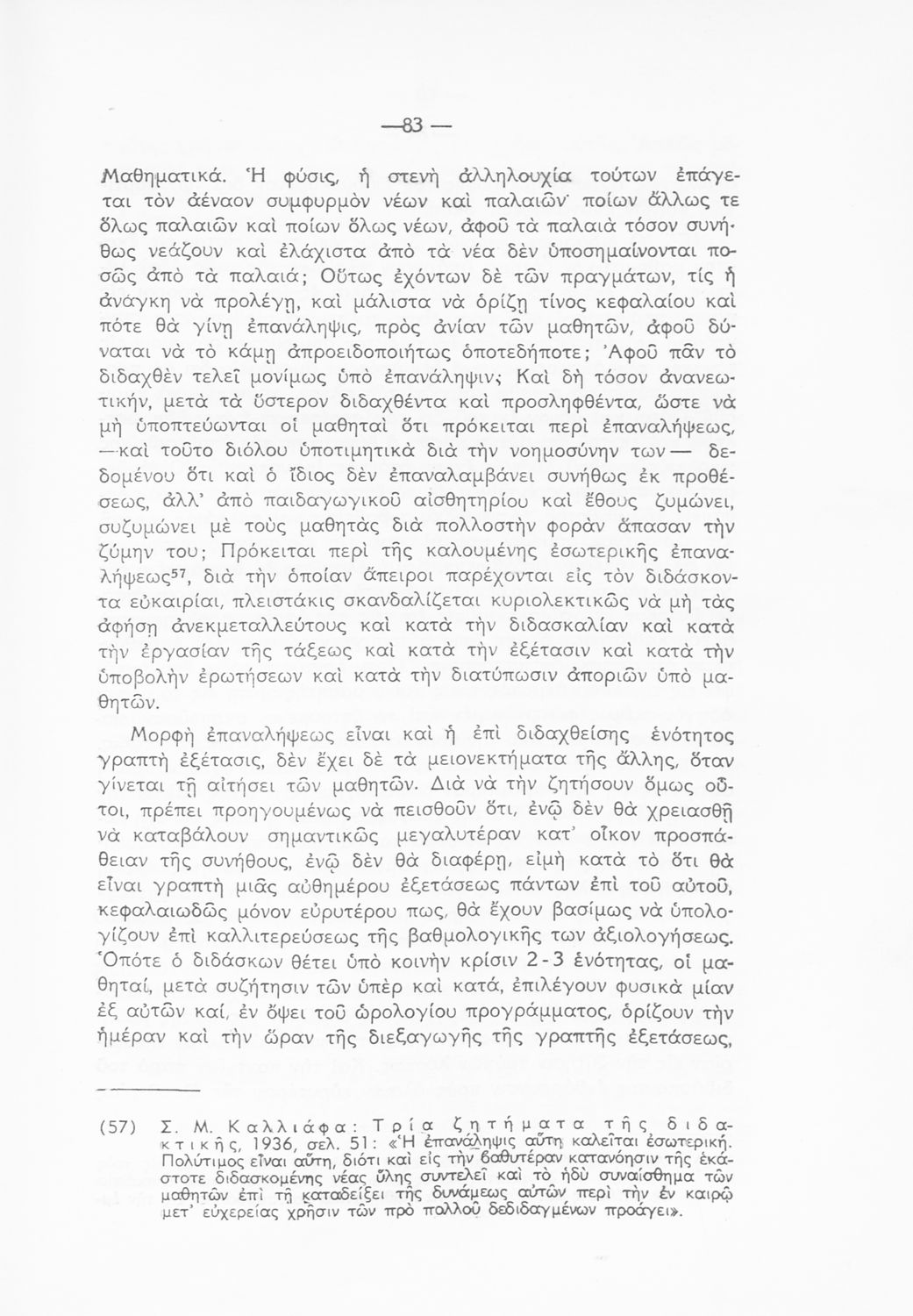 Παιδαγωγικό βοήθημα Μαθηματικών για τα Γυμνάσια και Λύκεια που παρουσιάζει αναλυτικά τους σκοπούς και μεθόδους διδασκαλίας, τις διάφορες θεωρητικές προσεγγίσεις περί διδακτικής και την παιδαγωγική αξία του μαθήματος.