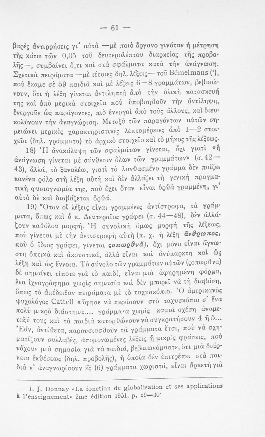 Παρουσίαση περιεχομένου: Παιδαγωγικό βοήθημα που παρέχει πληροφορίες για τους σκοπούς, μεθόδους, στάδια και εφαρμογή της διδασκαλίας της ανάγνωσης σε παιδιά Δημοτικού. Περιέχει και παράρτημα με παραδείγματα γραφής μαθητών της Α΄ τάξης κατά το σχολικό έτος 1956-1957.