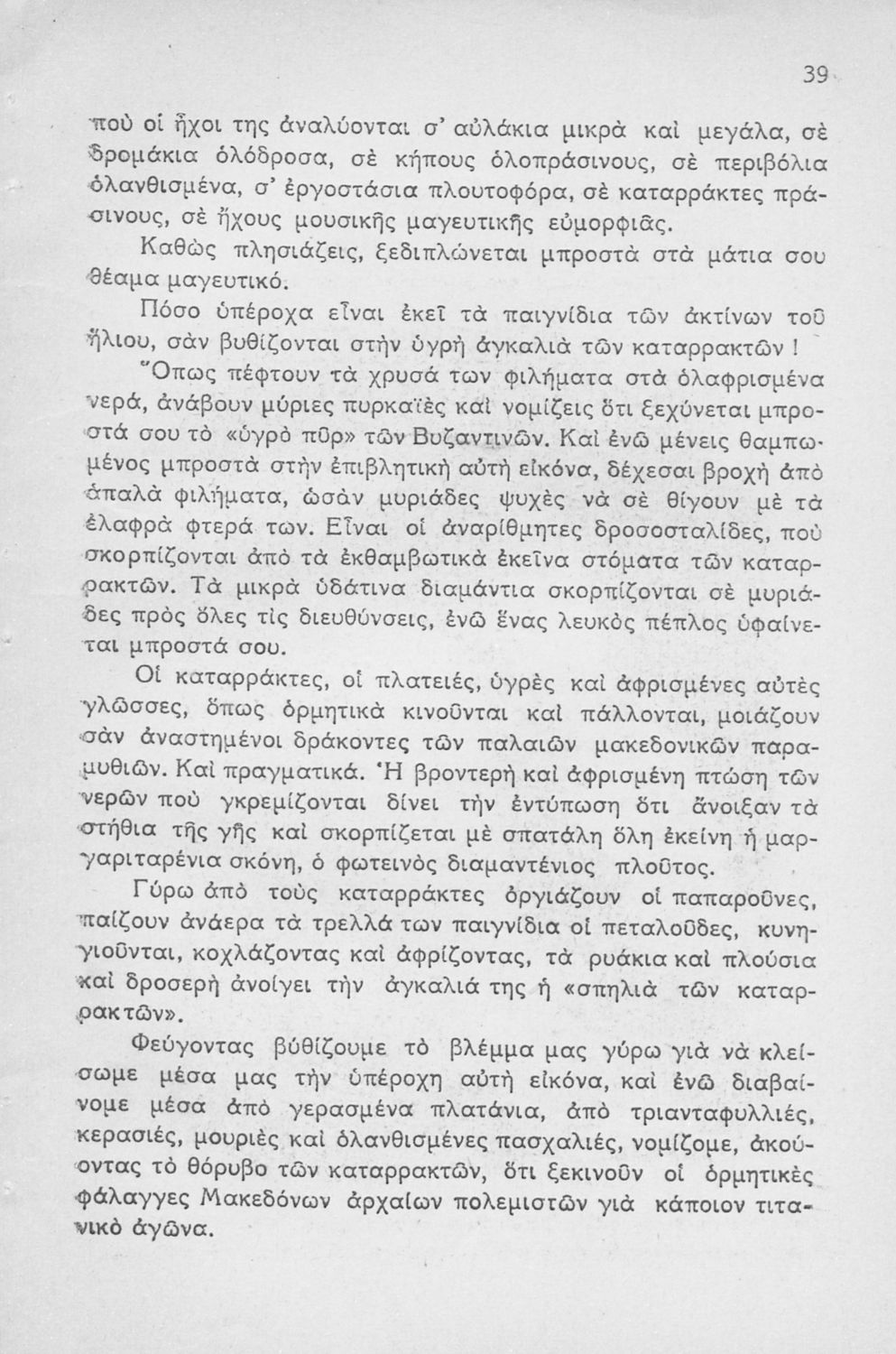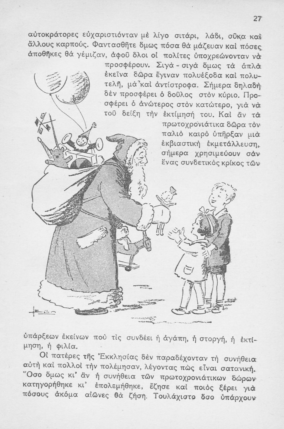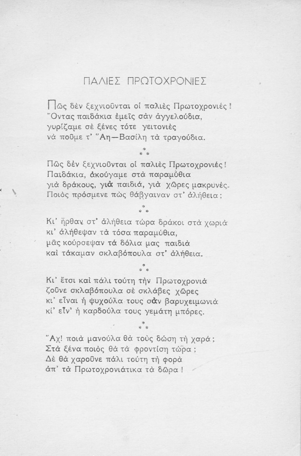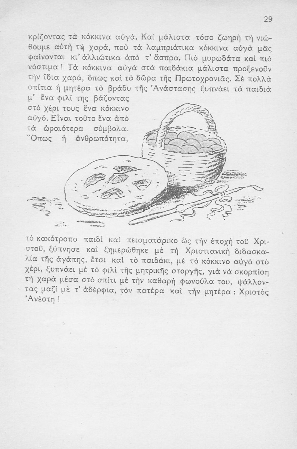 Αναγνωστικό που περιλαμβάνει πεζογραφήματα και ποιήματα εμπνευσμένα από την οικογενειακή και κοινωνική ζωή των παιδιών και των οικογενειών τους, την ελληνική ύπαιθρο, τις ελληνικές γιορτές και τις 4 εποχές του χρόνου. Διαφοροποιείται αισθητά από τα βιβλία της επόμενης αλλά και της προηγούμενης περιόδου που εμμένουν αρκετά στο ιδεολογικό τρίπτυχο "Πατρίς-θρησκεία-οικογένεια".
