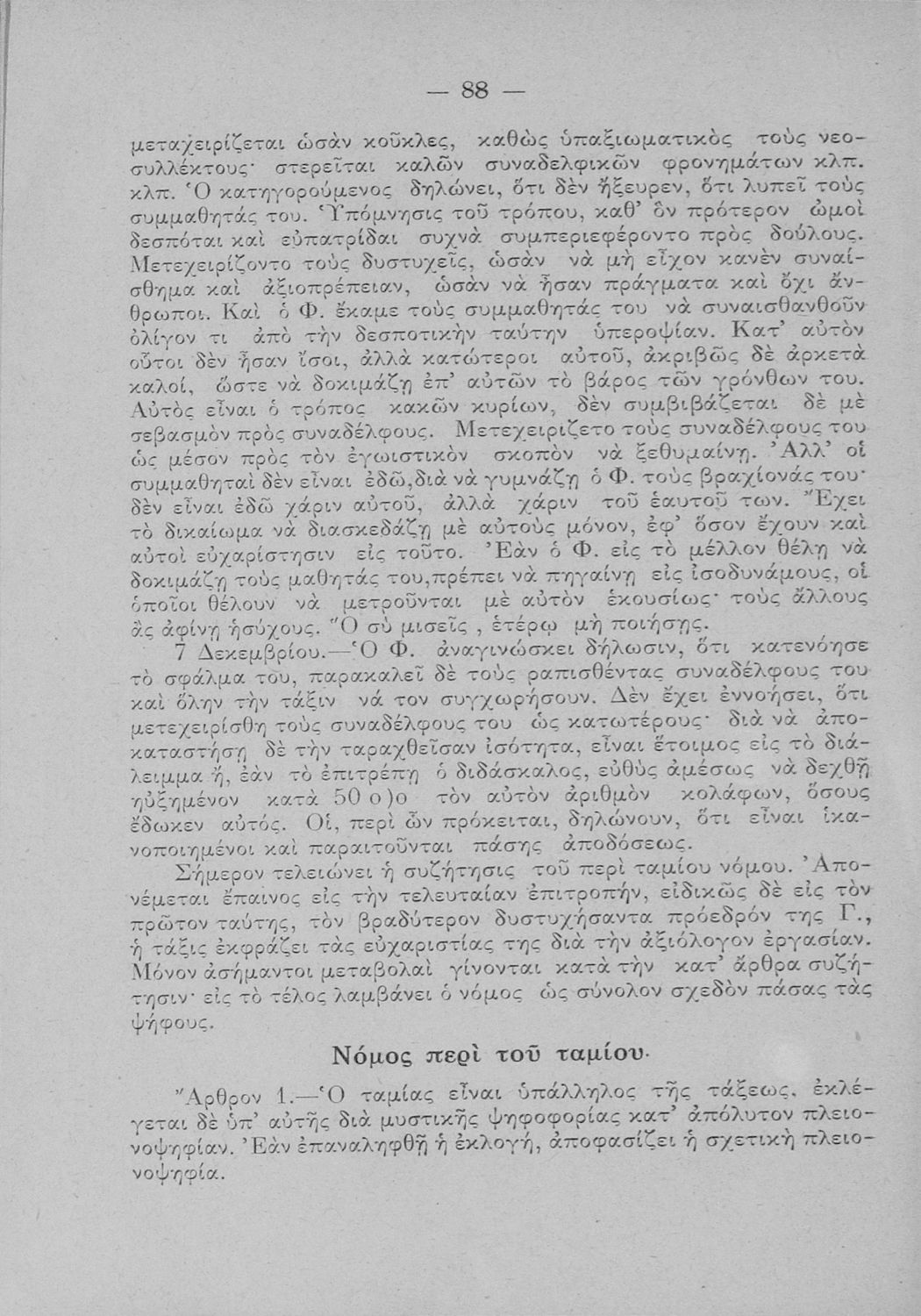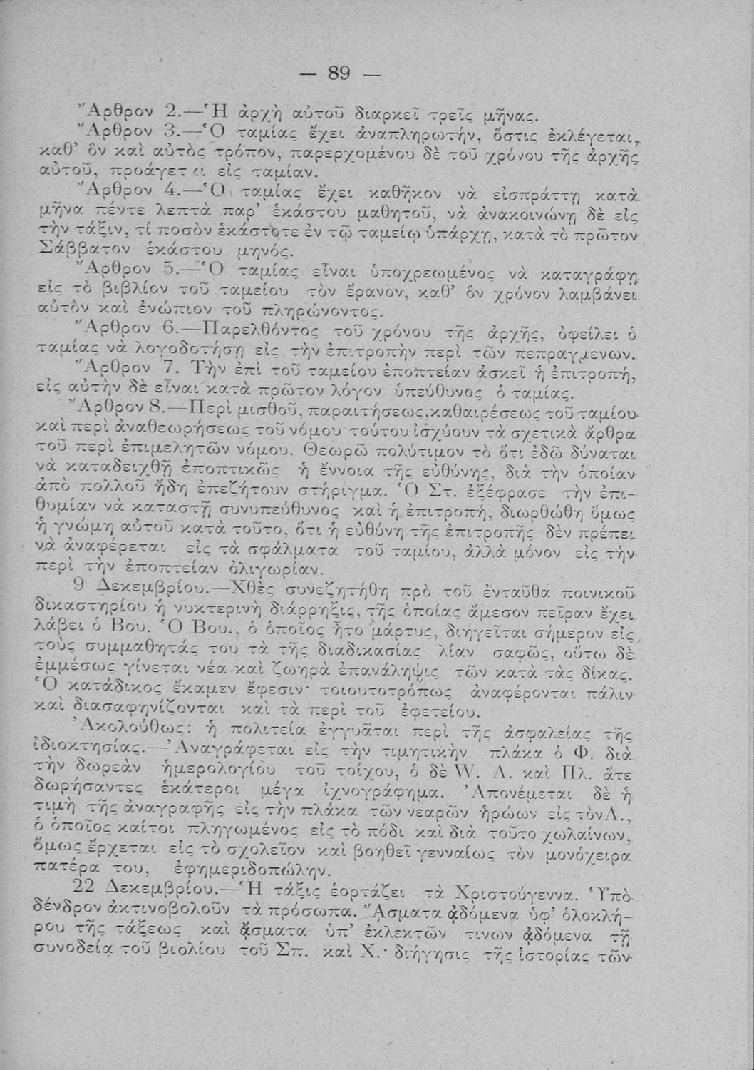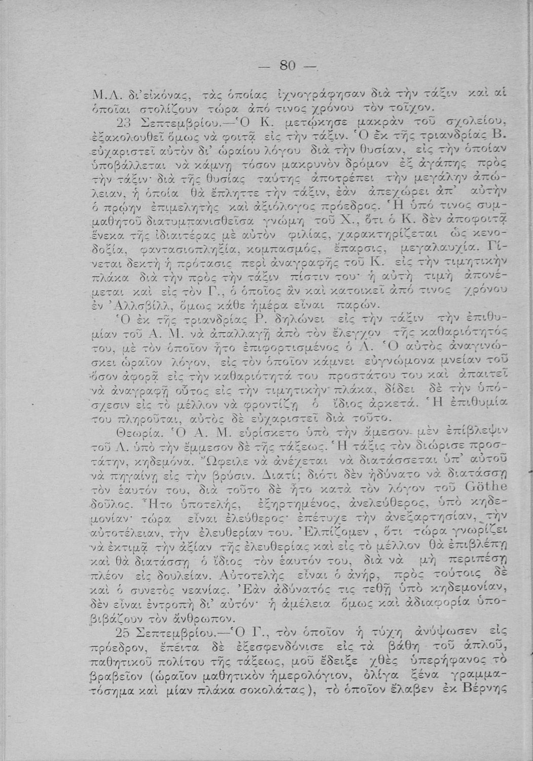 520 ## _aΠαιδαγωγικό βοήθημα που απευθύνεται στους δασκάλους και πραγματεύεται το ζήτημα της αυτοδιοίκησης των μαθητικών κοινοτήτων. Σύμφωνα με το μεταφραστή και συντηρητικό παιδαγωγό της εποχής, η οργάνωση των μαθητικών κοινοτήτων πρέπει να εμφυσήει το κοινωνικό φρόνημα και να καταπολεμά τον εγωισμό και την νοσηρή φιλοδοξία.