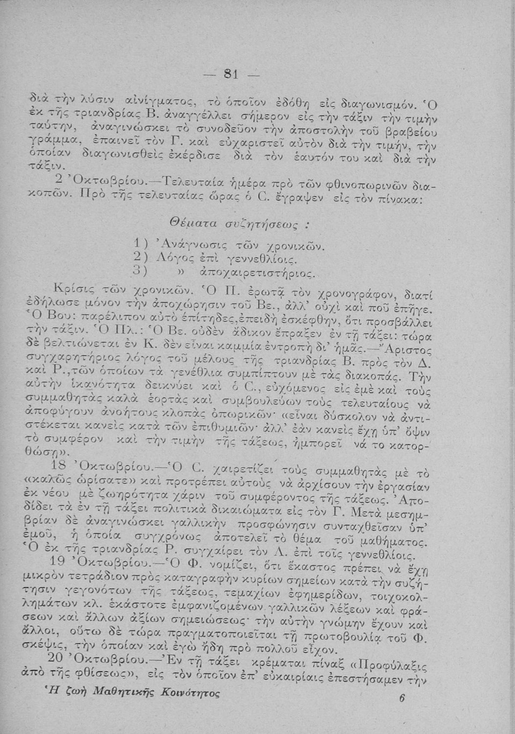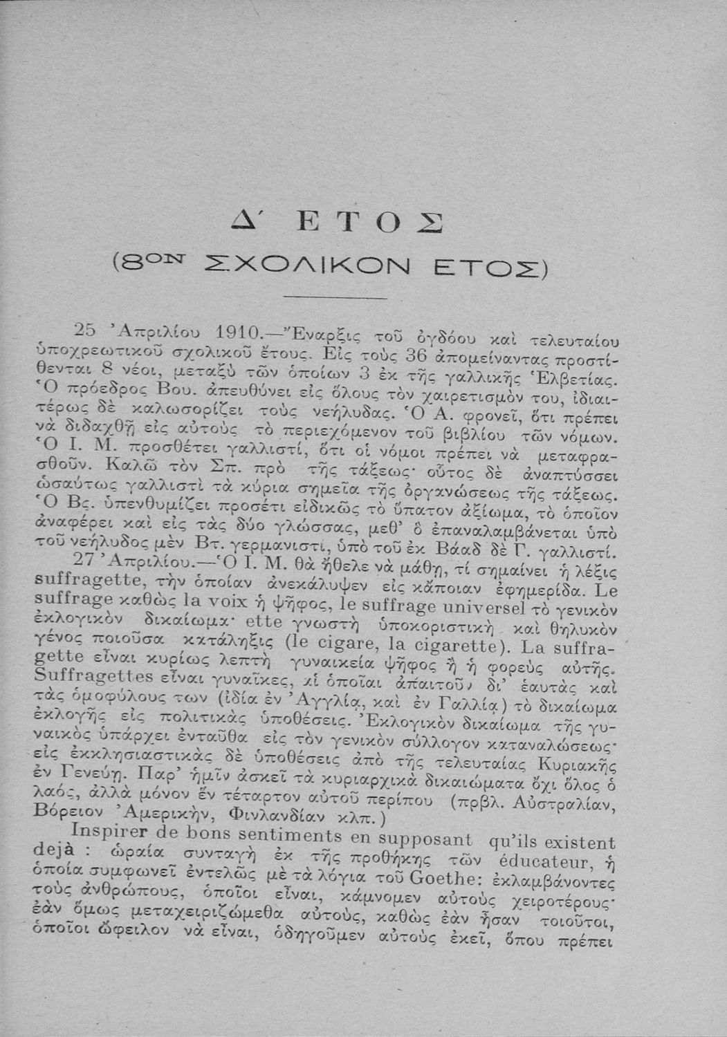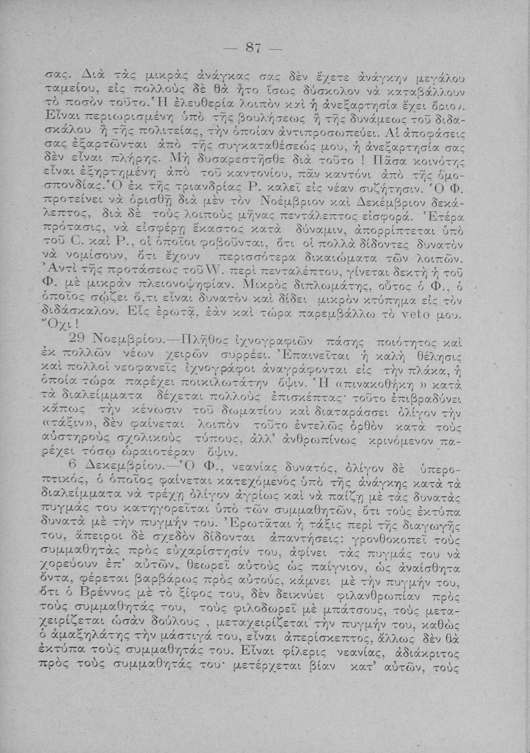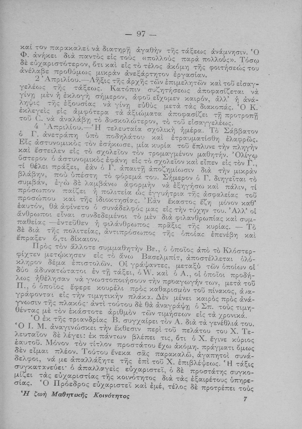 520 ## _aΠαιδαγωγικό βοήθημα που απευθύνεται στους δασκάλους και πραγματεύεται το ζήτημα της αυτοδιοίκησης των μαθητικών κοινοτήτων. Σύμφωνα με το μεταφραστή και συντηρητικό παιδαγωγό της εποχής, η οργάνωση των μαθητικών κοινοτήτων πρέπει να εμφυσήει το κοινωνικό φρόνημα και να καταπολεμά τον εγωισμό και την νοσηρή φιλοδοξία.
