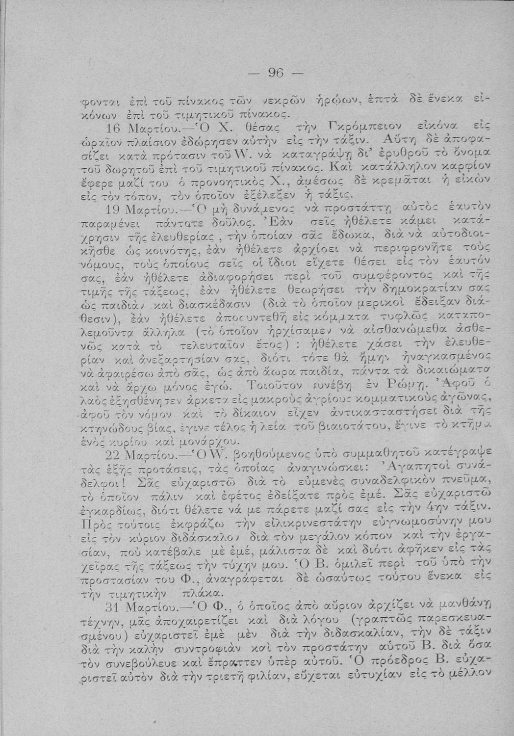 Βαθμίδα εκπαίδευσης: Πρωτοβάθμια Γλώσσα: Καθαρεύουσα Παρουσίαση περιεχομένου: Παιδαγωγικό βοήθημα που απευθύνεται στους δασκάλους και πραγματεύεται το ζήτημα της αυτοδιοίκησης των μαθητικών κοινοτήτων. Σύμφωνα με το μεταφραστή και συντηρητικό παιδαγωγό της εποχής, η οργάνωση των μαθητικών κοινοτήτων πρέπει να εμφυσήει το κοινωνικό φρόνημα και να καταπολεμά τον εγωισμό και την νοσηρή φιλοδοξία. |
