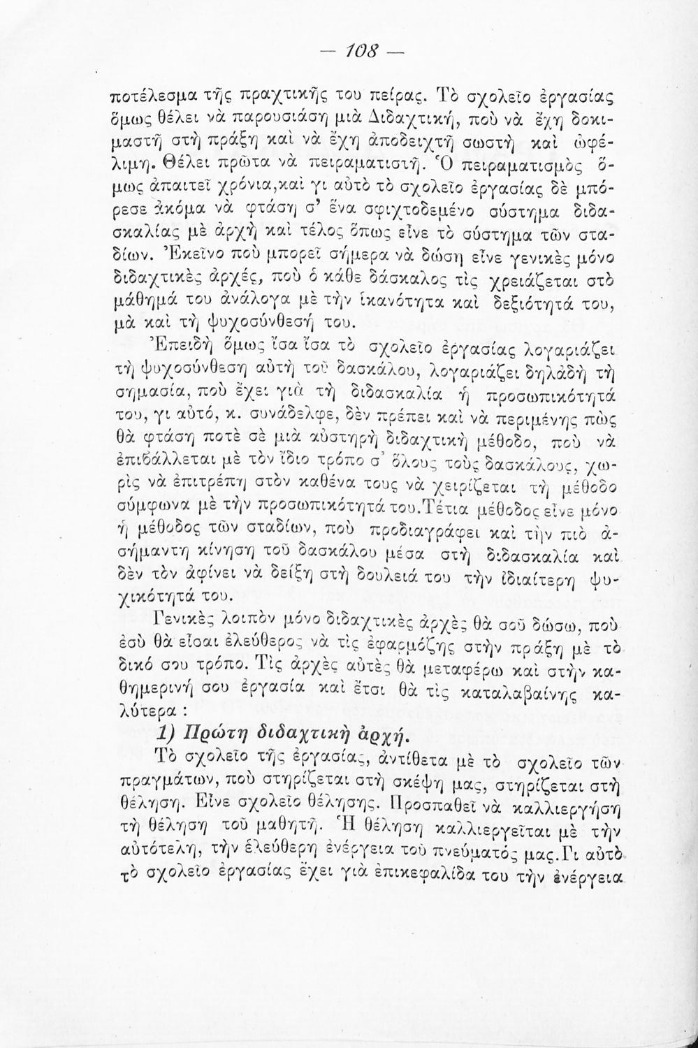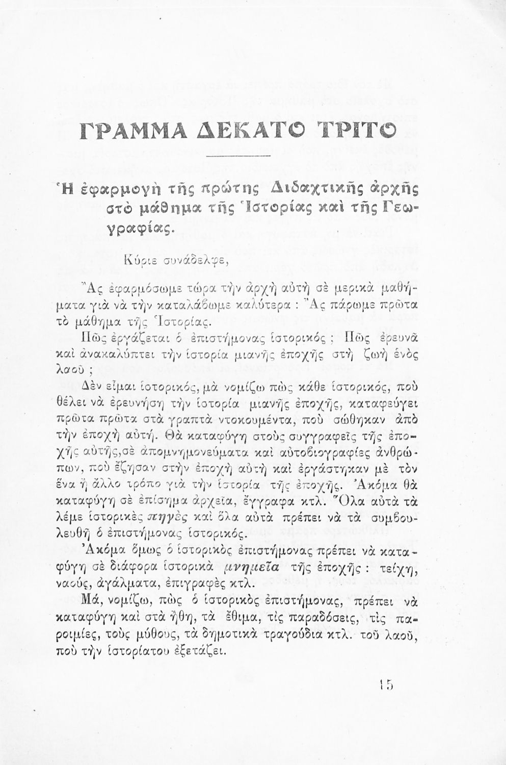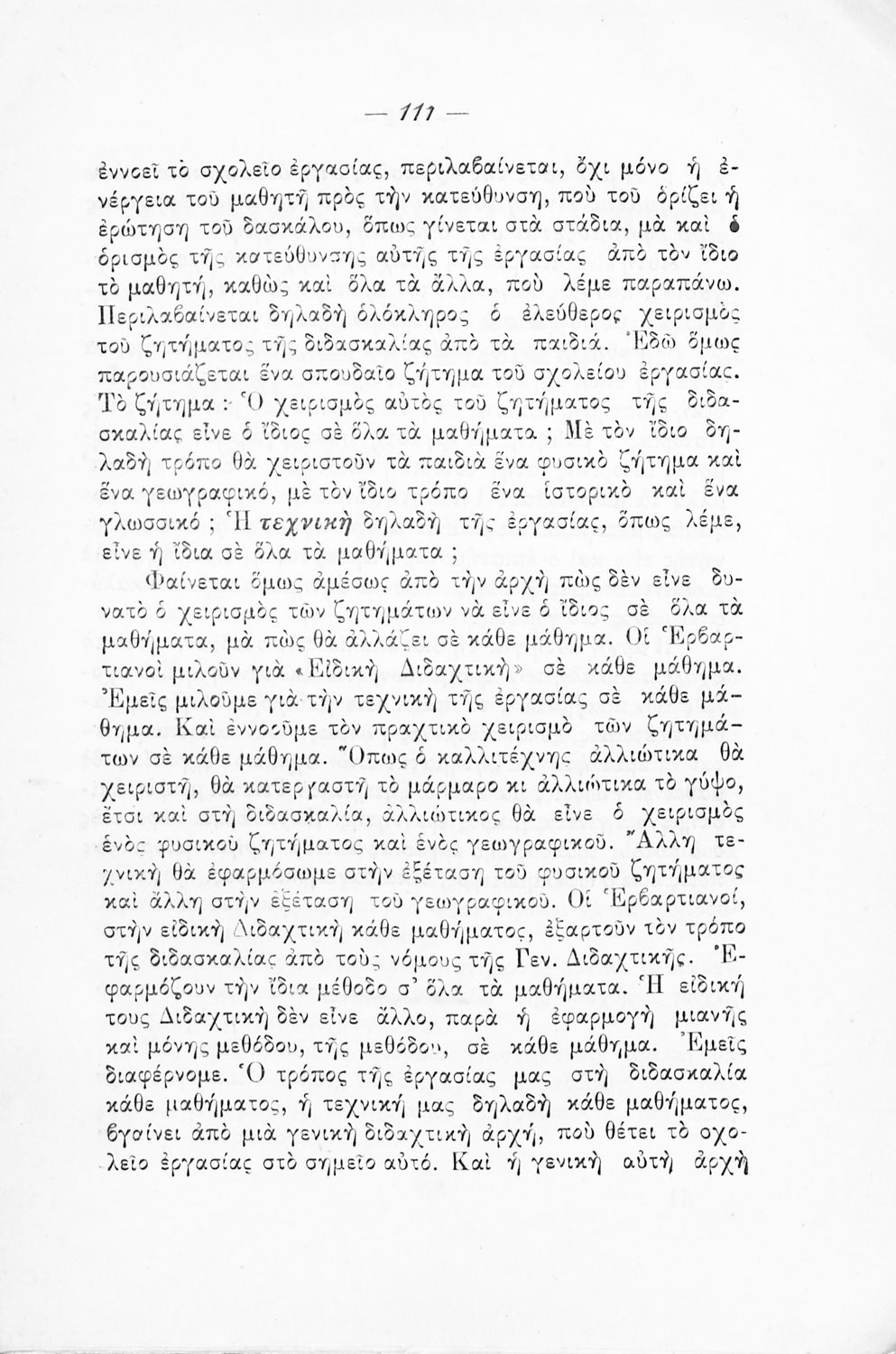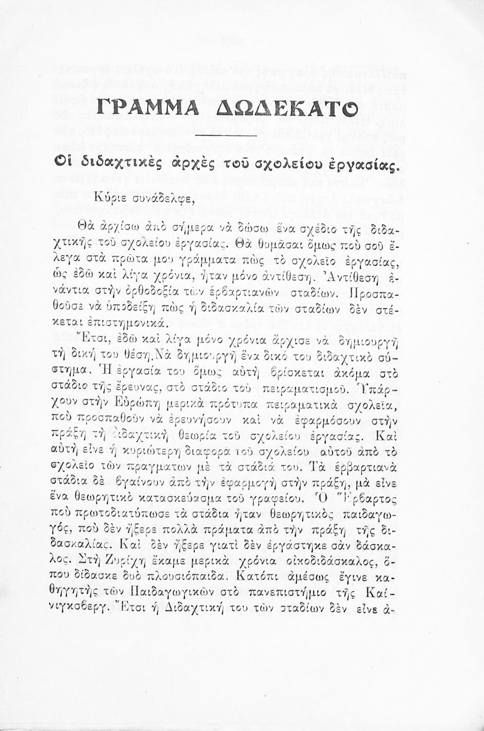 Παρουσίαση περιεχομένου: Παιδαγωγικό βοήθημα που περιλαμβάνει σε μορφή γραμμάτων απόψεις περί της ερβαρτιανής προσέγγισης, περί της παιδαγωγικής θεώρησης του Σχολείου Εργασίας, της διαδικασίας της διδασκαλίας και άλλων παιδαγωγικών αρχών.