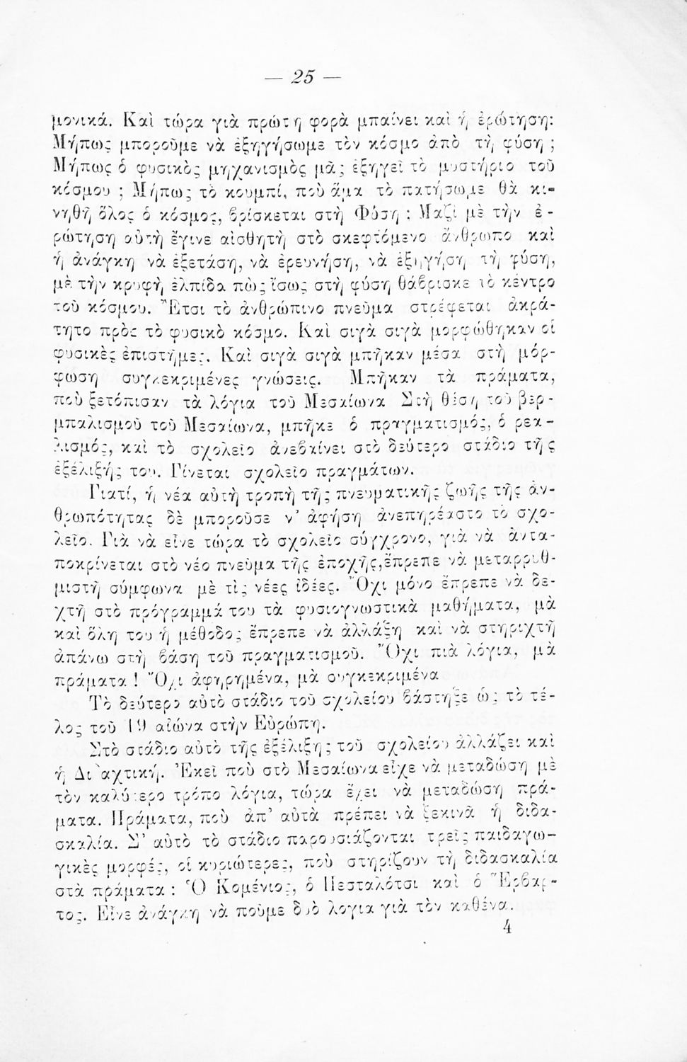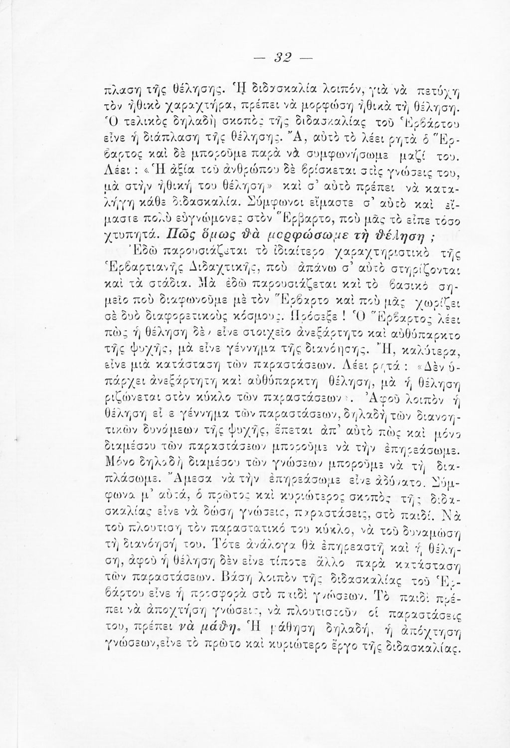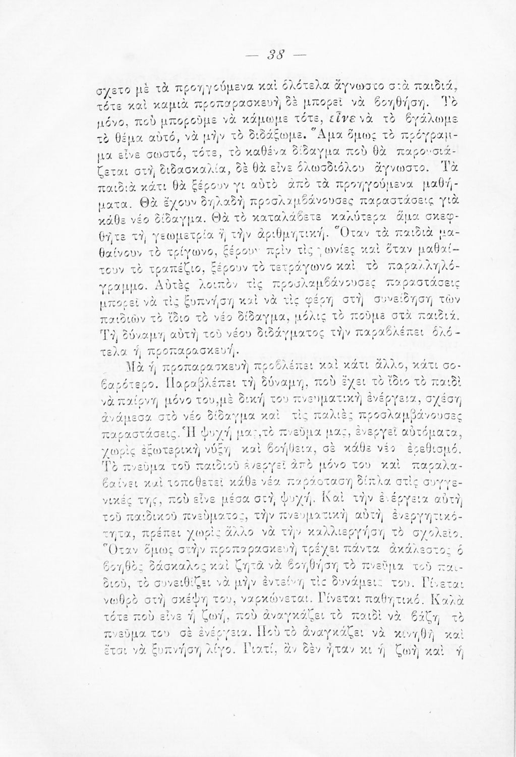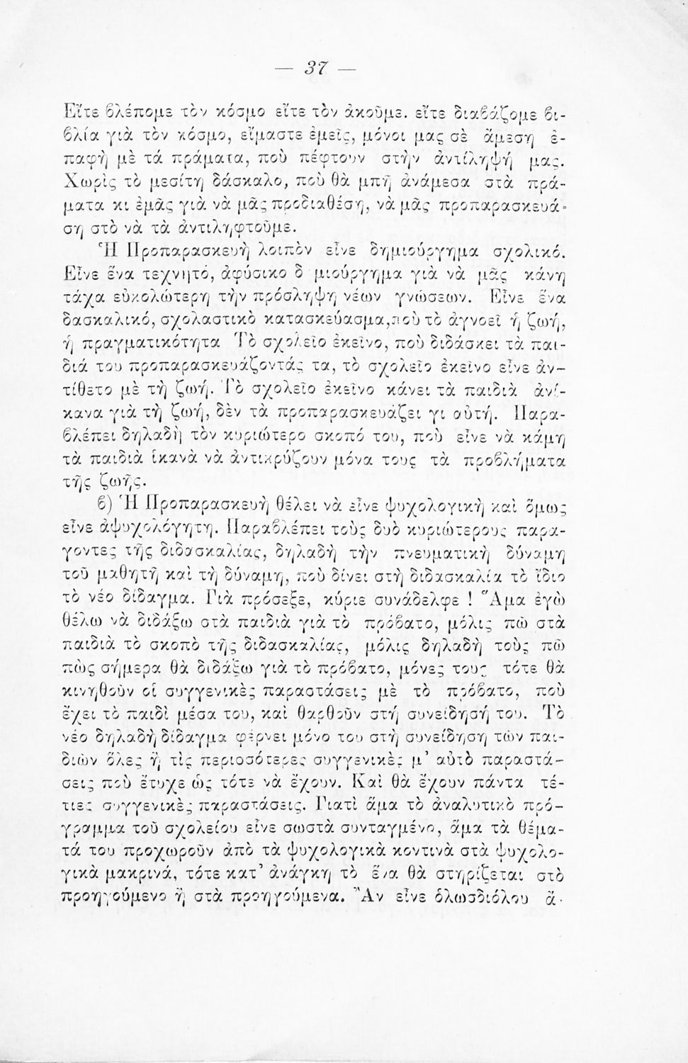 Παρουσίαση περιεχομένου: Παιδαγωγικό βοήθημα που περιλαμβάνει σε μορφή γραμμάτων απόψεις περί της ερβαρτιανής προσέγγισης, περί της παιδαγωγικής θεώρησης του Σχολείου Εργασίας, της διαδικασίας της διδασκαλίας και άλλων παιδαγωγικών αρχών.