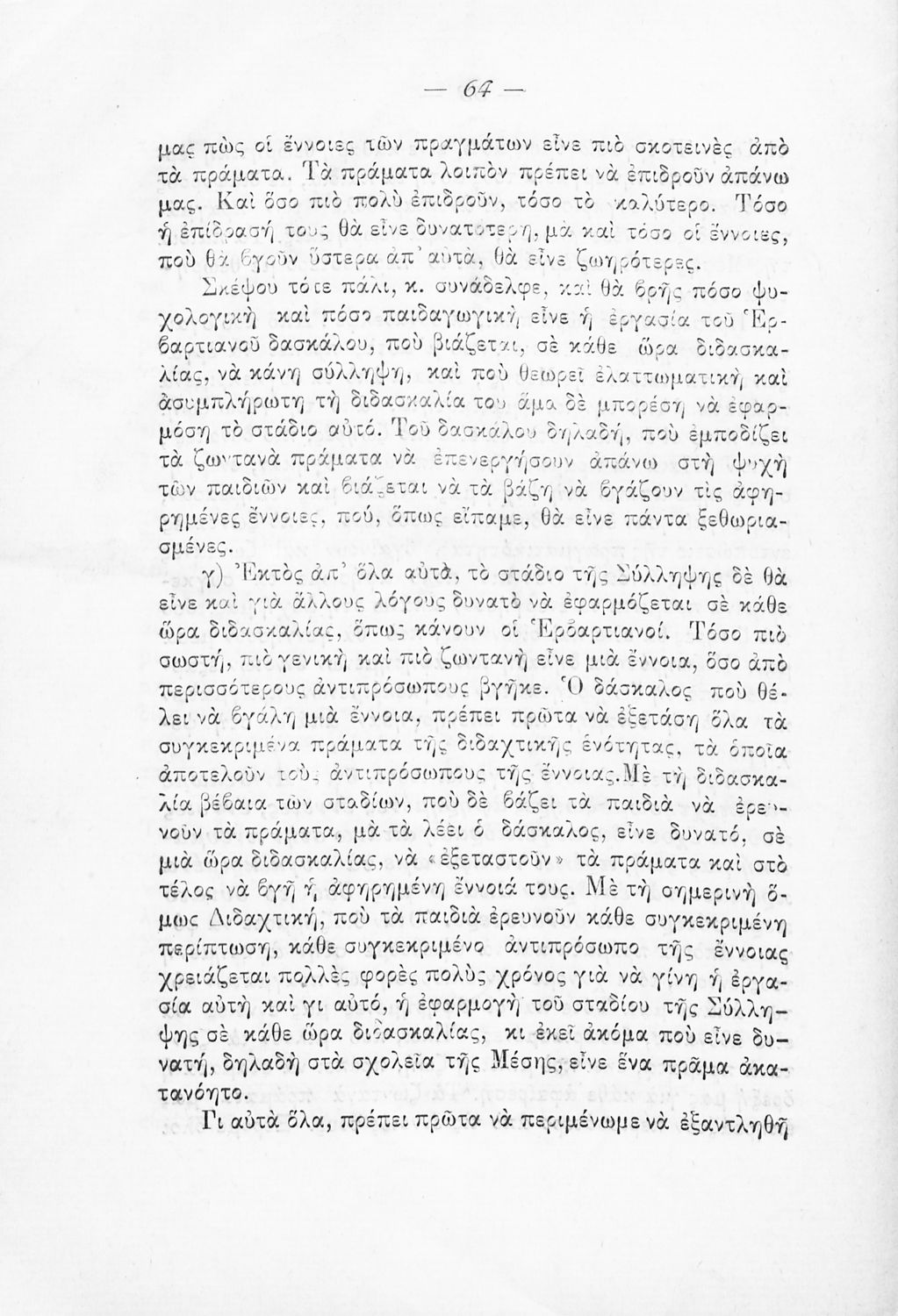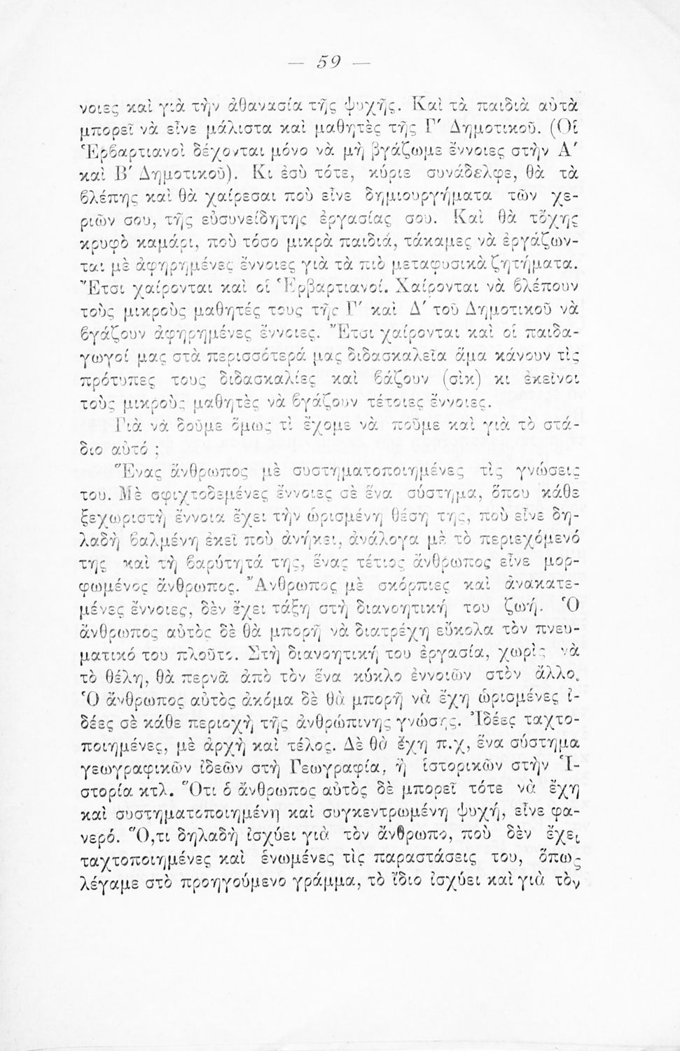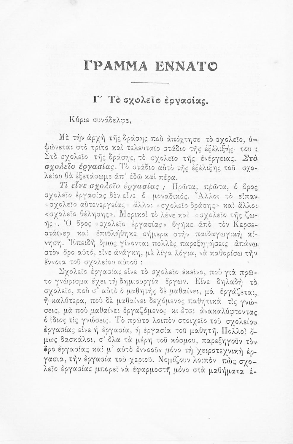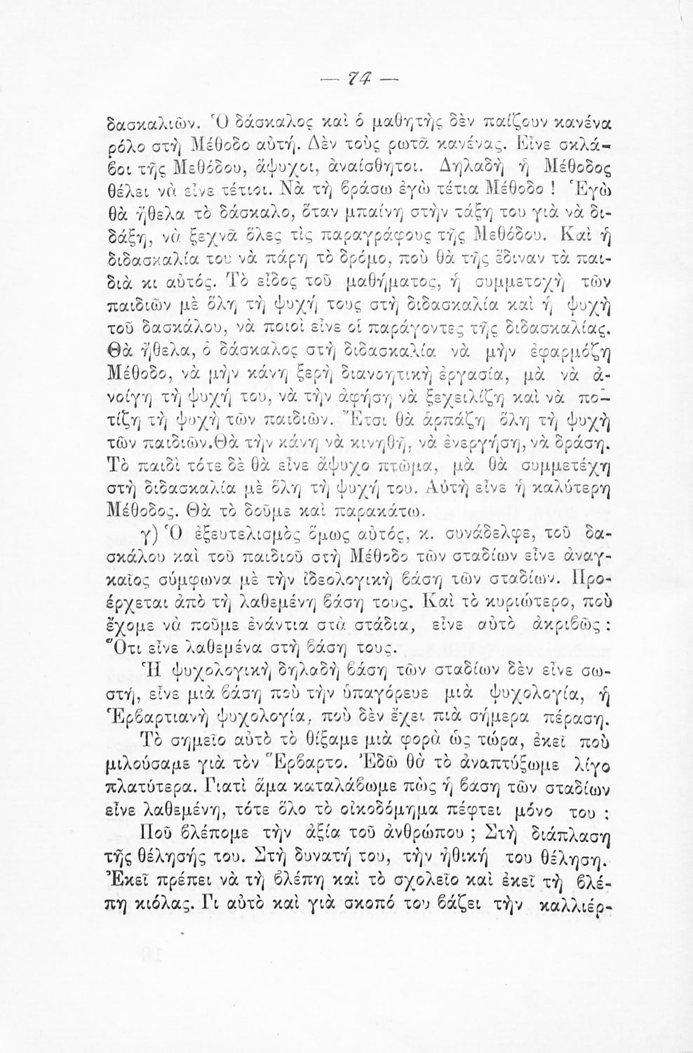 Παιδαγωγικό βοήθημα που περιλαμβάνει σε μορφή γραμμάτων απόψεις περί της ερβαρτιανής προσέγγισης, περί της παιδαγωγικής θεώρησης του Σχολείου Εργασίας, της διαδικασίας της διδασκαλίας και άλλων παιδαγωγικών αρχών.