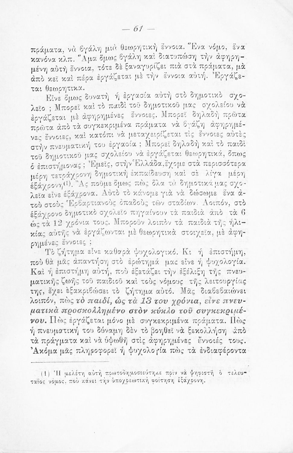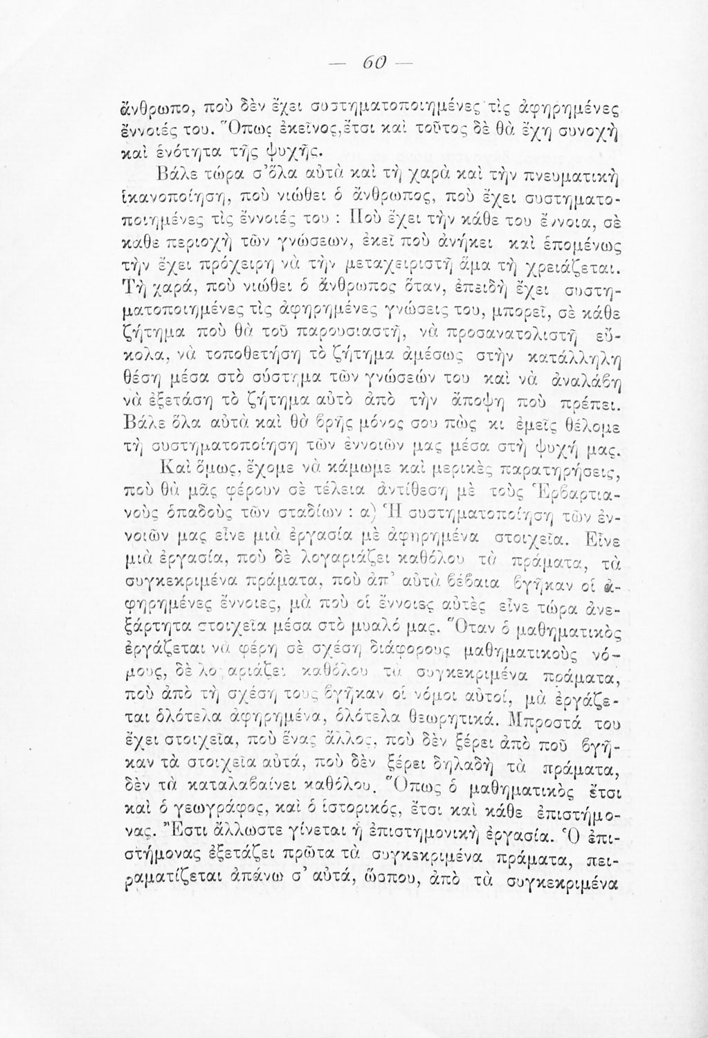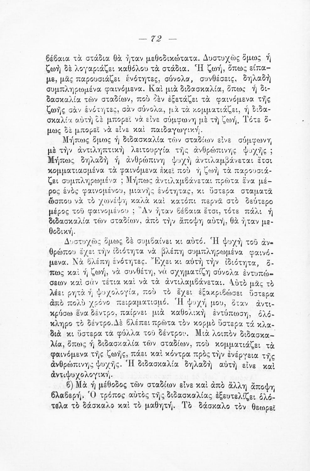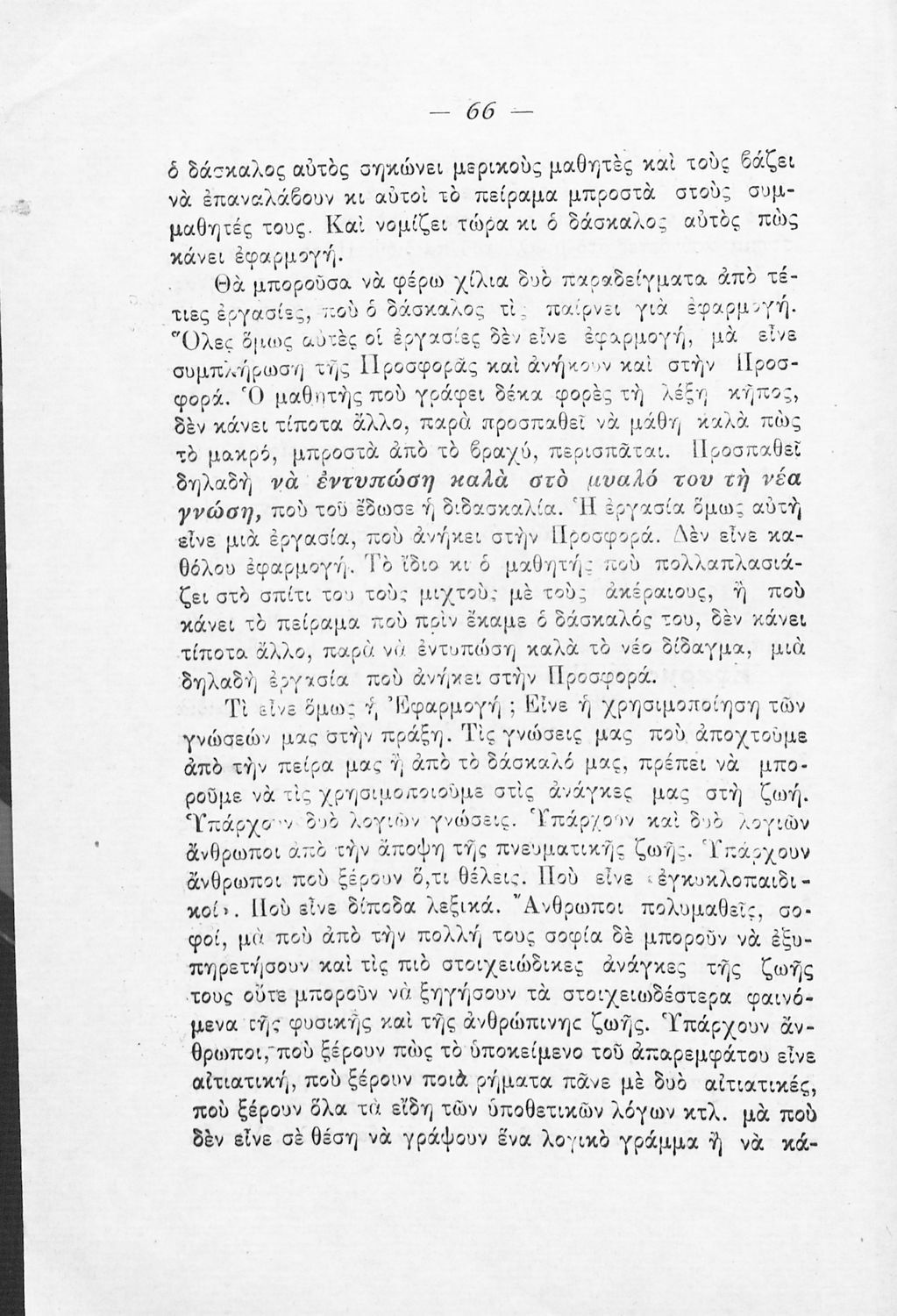 Παιδαγωγικό βοήθημα που περιλαμβάνει σε μορφή γραμμάτων απόψεις περί της ερβαρτιανής προσέγγισης, περί της παιδαγωγικής θεώρησης του Σχολείου Εργασίας, της διαδικασίας της διδασκαλίας και άλλων παιδαγωγικών αρχών.