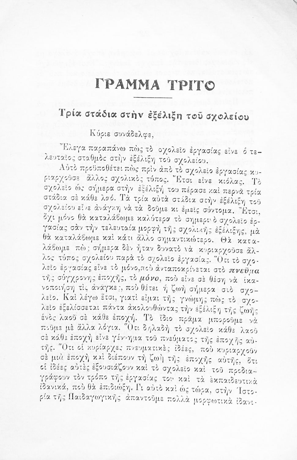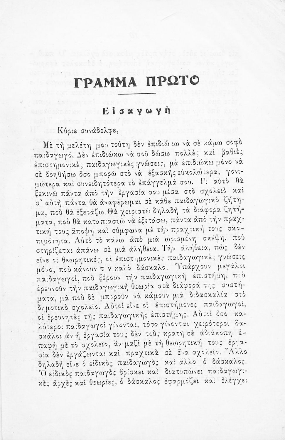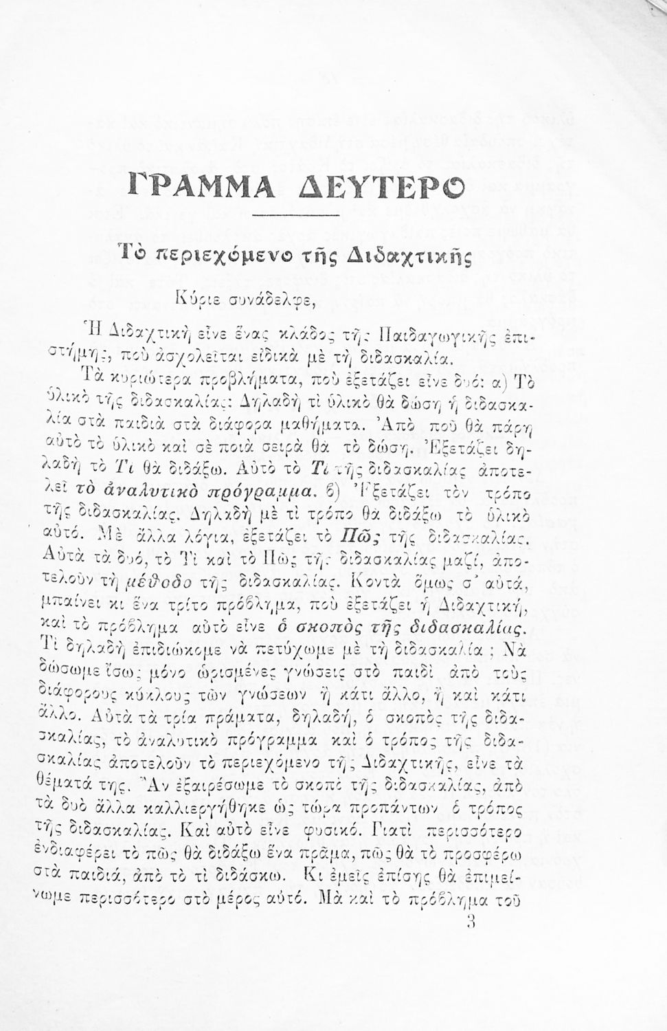 Παιδαγωγικό βοήθημα που περιλαμβάνει σε μορφή γραμμάτων απόψεις περί της ερβαρτιανής προσέγγισης, περί της παιδαγωγικής θεώρησης του Σχολείου Εργασίας, της διαδικασίας της διδασκαλίας και άλλων παιδαγωγικών αρχών.