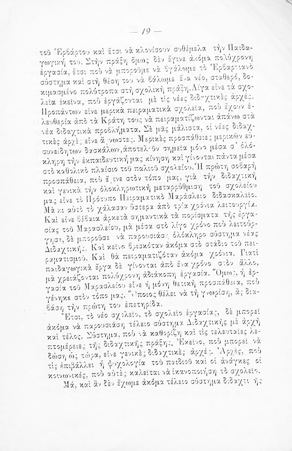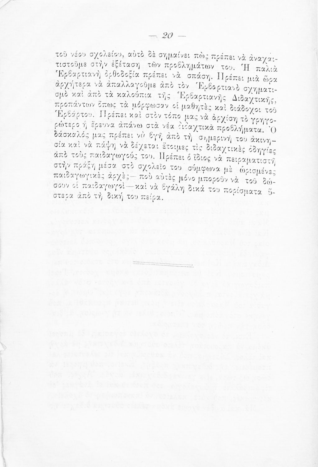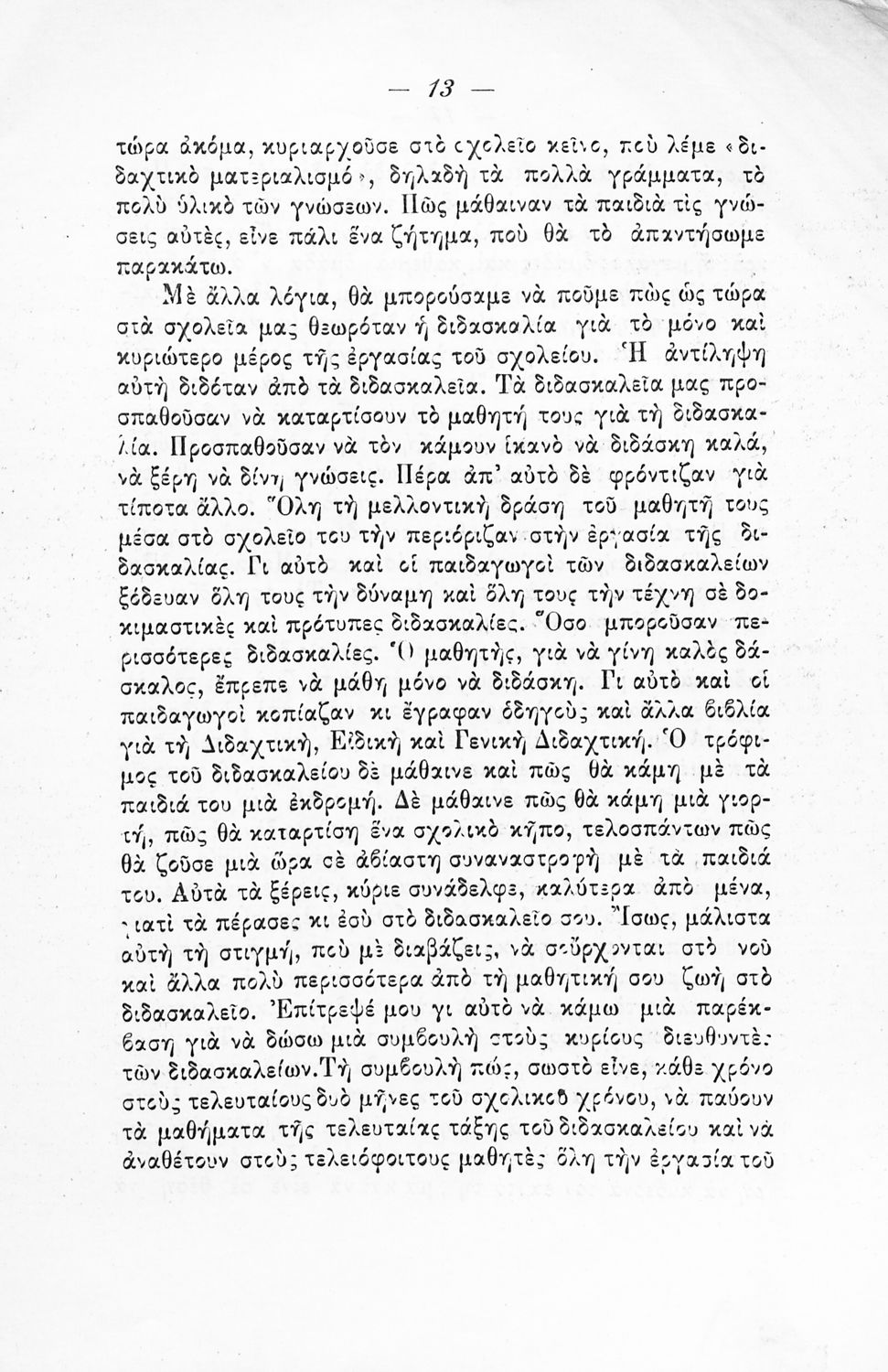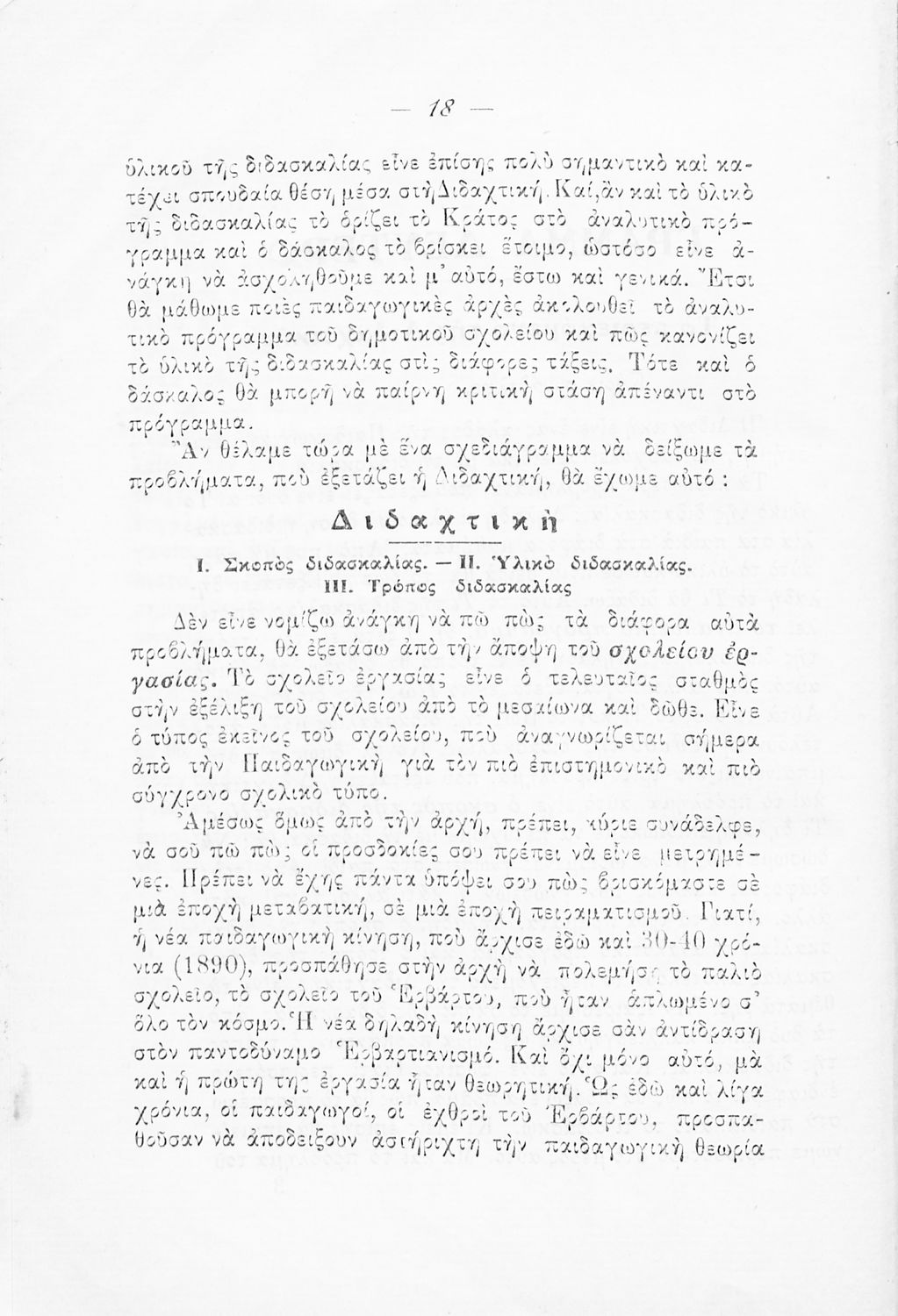 Παιδαγωγικό βοήθημα που περιλαμβάνει σε μορφή γραμμάτων απόψεις περί της ερβαρτιανής προσέγγισης, περί της παιδαγωγικής θεώρησης του Σχολείου Εργασίας, της διαδικασίας της διδασκαλίας και άλλων παιδαγωγικών αρχών.