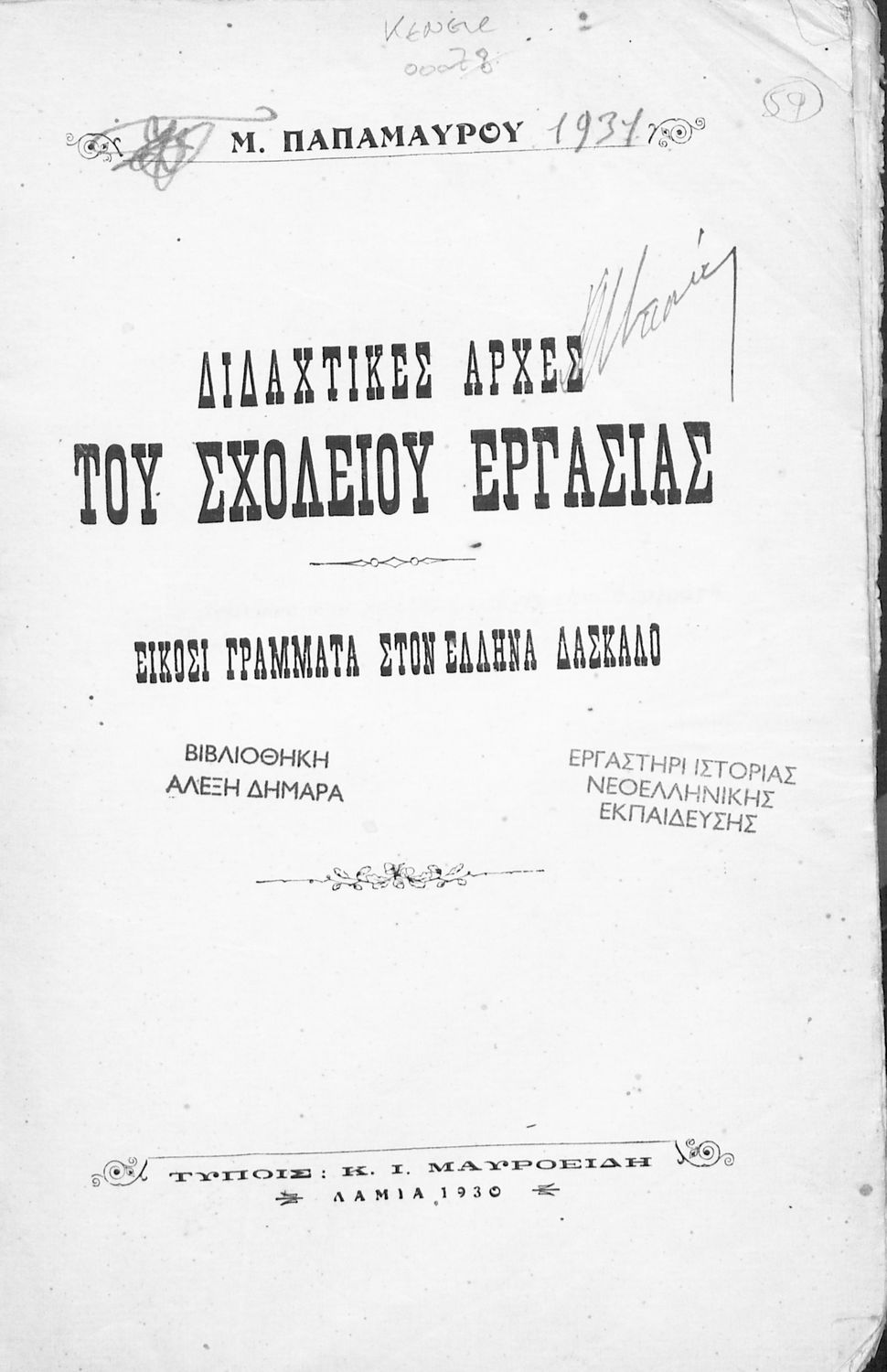 Εκδότης: Κ. Ι. Μαυροειδής Έτος έκδοσης: 1930 Τόπος έκδοσης: Λαμία |