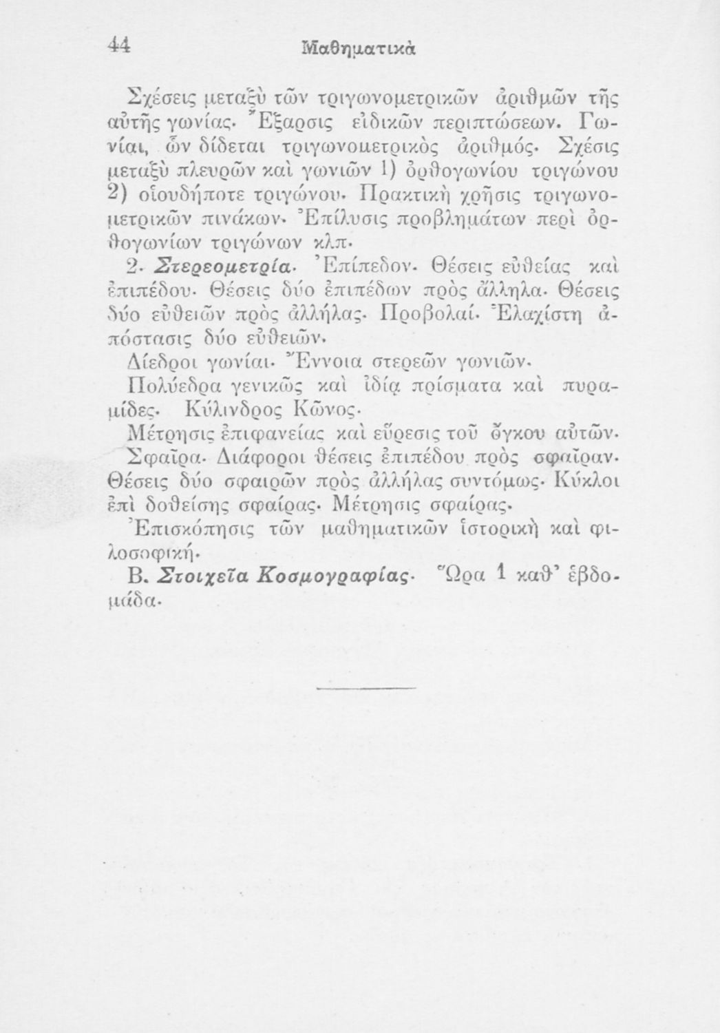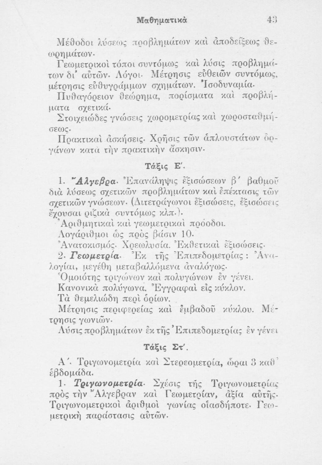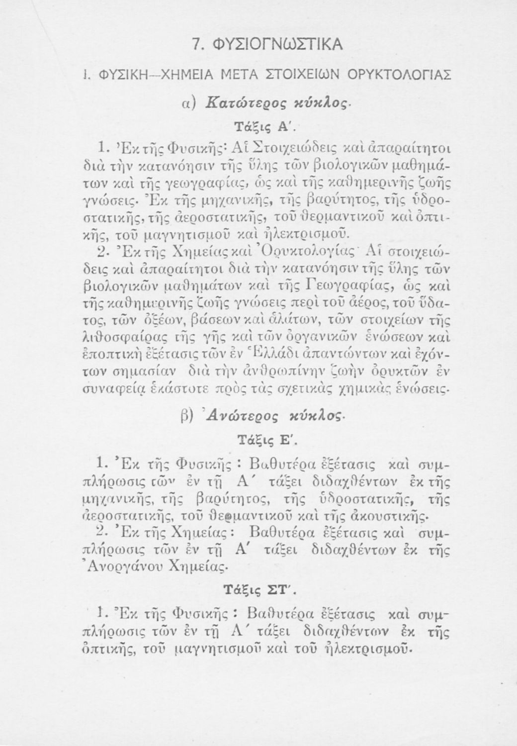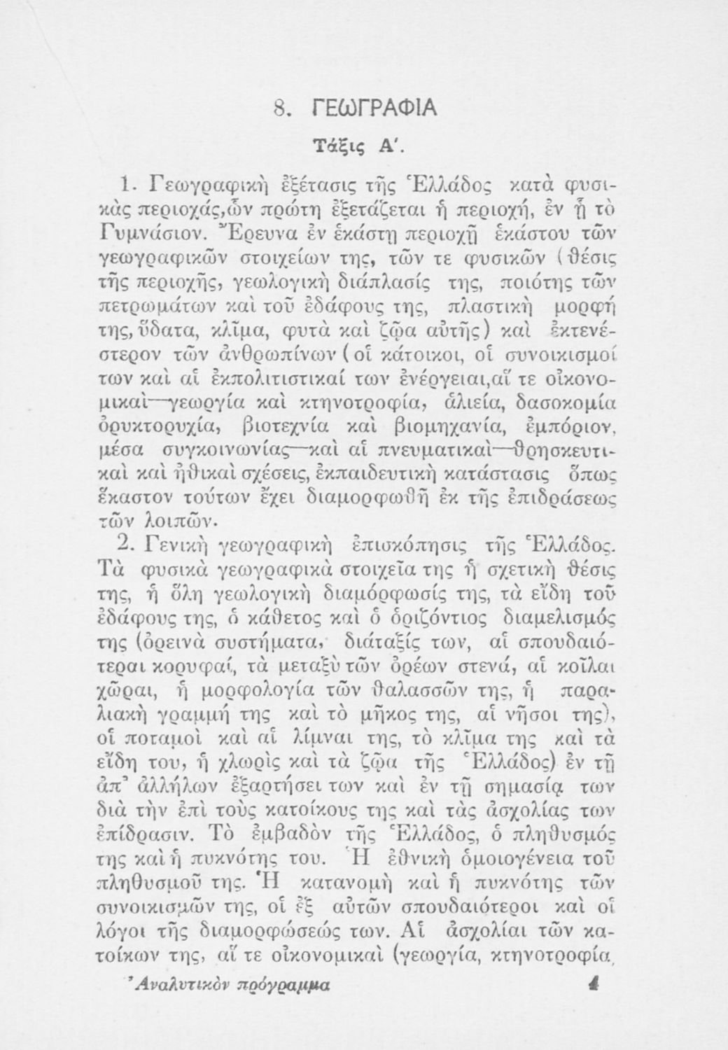 Αναλυτικόν πρόγραμμα των μαθημάτων του Γυμνασίου. Τεύχος Α΄